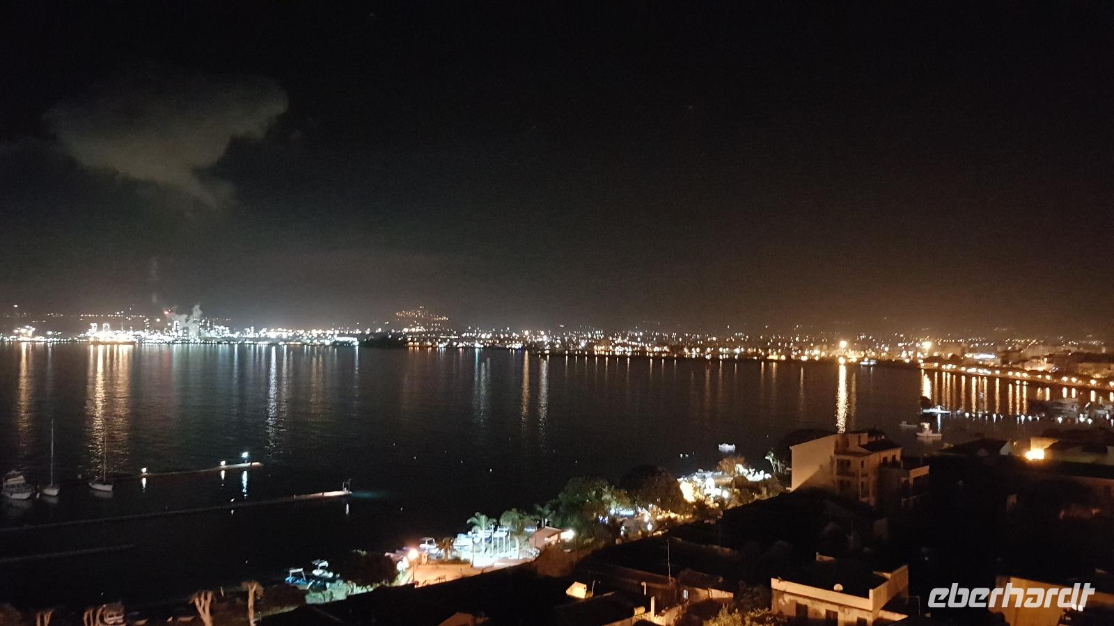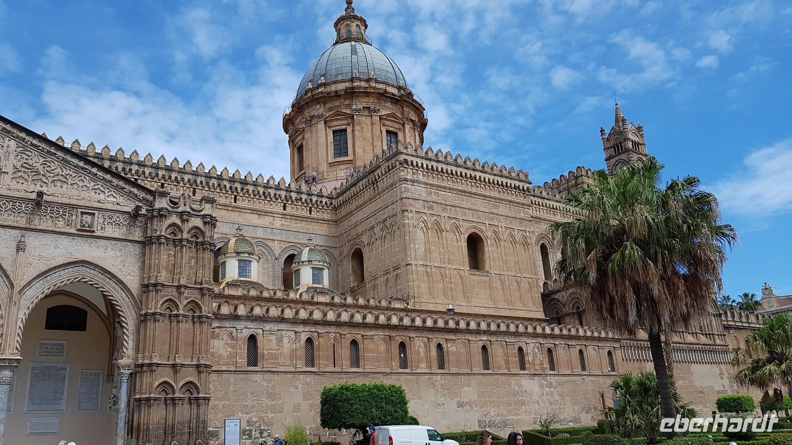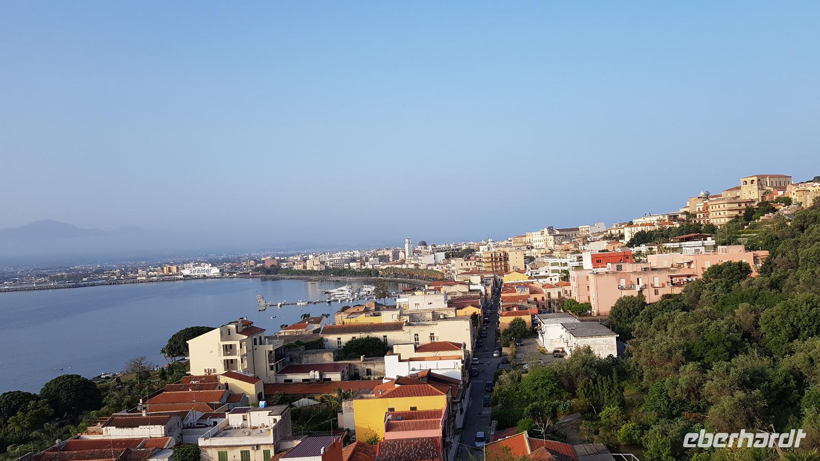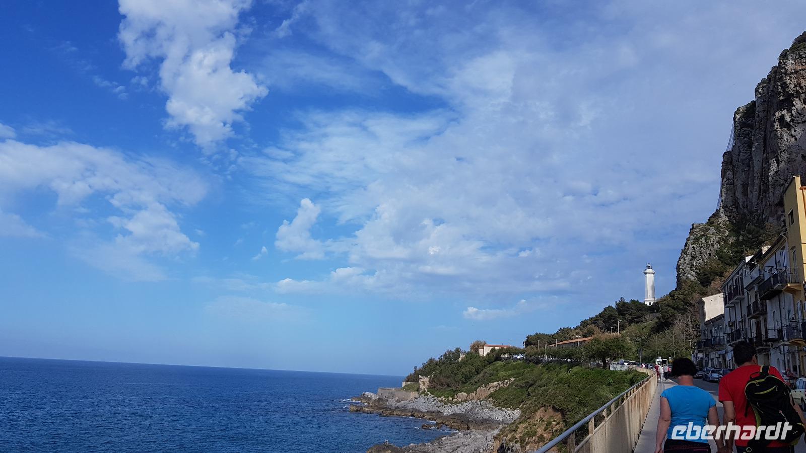 Heute heißt es wieder zeitig losfahren. Um 8 Uhr sind die Koffer verstaut und unser erstes Ziel heißt Palermo. Durch das Belice Tal geht es westwärts, wir passieren die Bucht von Mondello und Annemarie erzählt uns von der heiligen Rosalie, sie wird verehrt, weil durch sie letztendlich die schwarze Pest 1652 besiegt wurde. Dann erreichen wir Palermo, Annemarie wohnt hier und so können wir die obligatorischen Staus clever umfahren. Durch den Garibaldi Park und am Massimo Theater vorbei geht es zur Capella Palatina. Sie befindet sich im Palazzo Reale, dem königlichen Palast, in dem auch das sizilianische Parlament und die Regionalregierung ihren Sitz hat. Erfreulicherweise ist die Warteschlange am Check-Point kurz und so können wir in kürzester Zeit die Palastkapelle betreten. Was für eine Pracht! Die Decke mit Holzschnitzereien, mit Seide überzogen, die Mosaiken mit farbigen und vergoldeten Steinen, der Boden mit arabischen Mosaiken und und und. Szenen der Bibel, des alten Testamentes sind dargestellt, dazu eine kunstvolle Verknüpfung von lateinischen, griechischen und arabischen Elementen, ach wenn es doch heute auch so ein friedliches Miteinander geben könnte...Wir spazieren weiter durch Palermo zur Kathedrale, auch Normannendom genannt. Sie erfuhr mehrfach Um- und Anbauten und schließlich bekam sie im 18. Jahrhundert eine Kuppel und klassizistische Elemente. Annemarie zeigt uns den Meridian, immer 12:00 Uhr markiert die Sonne durch eine winzige Öffnung in der Decke den Punkt mit dem aktuellen Sternzeichen darauf. Dann ist Zeit für individuelle Erkundungen und wer möchte besucht die Staufergräber hier. Heinrich VI., Friedrich II und auch Königin Konstanze von Sizilien sind hier begraben. Wir treffen uns auf dem Platz vor der Kathedrale und spazieren durch die Stadt, an alten Palazzos vorbei wo die Zeit stehengeblieben zu sein scheint bis zum Rathaus und dem „Platz der Schande" mit dem Schambrunnen. Den Namen erhielt der Platz weil die Stadt kaum Geld für die Bürger hatte, sich aber diesen Brunnen leistete- welche Schande...Weiter ging es zum „Platz der 4 Ecken", dem Quattro Canti, hier kreuzen sich Corso Vittorio Emanuele und Via Maqueda, im 17. Jahrhundert entstand hier an jeder der 4 Ecken ein Palast in barocker Baukunst. Unser nächstes Ziel ist die Martorana-Kirche in unmittelbarer Nähe, auch hier begegnet uns wieder diese phantastische Mosaik-Kunst. Ein letzter gemeinsamer Spaziergang führt zum Teatro Massimo, der Oper Palermos. Ab hier kann jeder individuell die nächste Zeit verbringen und ein wenig ausruhen. Nach dem Mittag fahren wir nach Cefalu. Antonio fährt die Küstenstraße entlang, da dürfen Fotostopps natürlich nicht fehlen. Strahlender Sonnenschein, türkisblaues Wasser und eine phantastische Landschaft begleiten uns. In Cefalu angekommen halten wir am Faro - dem Leuchtturm und spazieren hinunter in die Stadt zum Strand. Von hier aus geht es die Gassen wieder hinauf, am alten Waschplatz der Stadt vorbei zur Kathedrale- und auch hier empfängt uns wieder diese wunderbare Mosaik-Kunst, die wir schon im Palermo bewundert haben. Die nächste Zeit nutzt jeder für sich, in der Stadt, am Strand oder im Eiscafe. Nach den vielen Eindrücken heute tut diese Auszeit der Seele gut. Am Leuchtturm treffen wir uns dann wieder und fahren weiter Richtung Milazzo. Kurz hinter der Stadt jedoch müssen wir schon wieder halten- ein so toller Ausblick! Und den versüßen wir uns mit Limoncello, den konnte ich in Cefalu erwerben- diese Spezialität Siziliens sollten wir unbedingt probieren- ab hier haben Fotostopps für unsere Gruppe eine ganz neue Bedeutung...Ziemlich spät erst erreichen wir unser Hotel in Milazzo, den Welcome-Drink des Hotels nehmen wir im Stehen mit während wir auf unsere Zimmerschlüssel warten und schon treffen wir uns zum Abendessen. Und sind positiv überrascht. Entgegen aller Befürchtungen sind Essen und Service große Klasse, die Zimmer und das Hotel sowieso und so klingt dieser Tag rundum positiv aus.