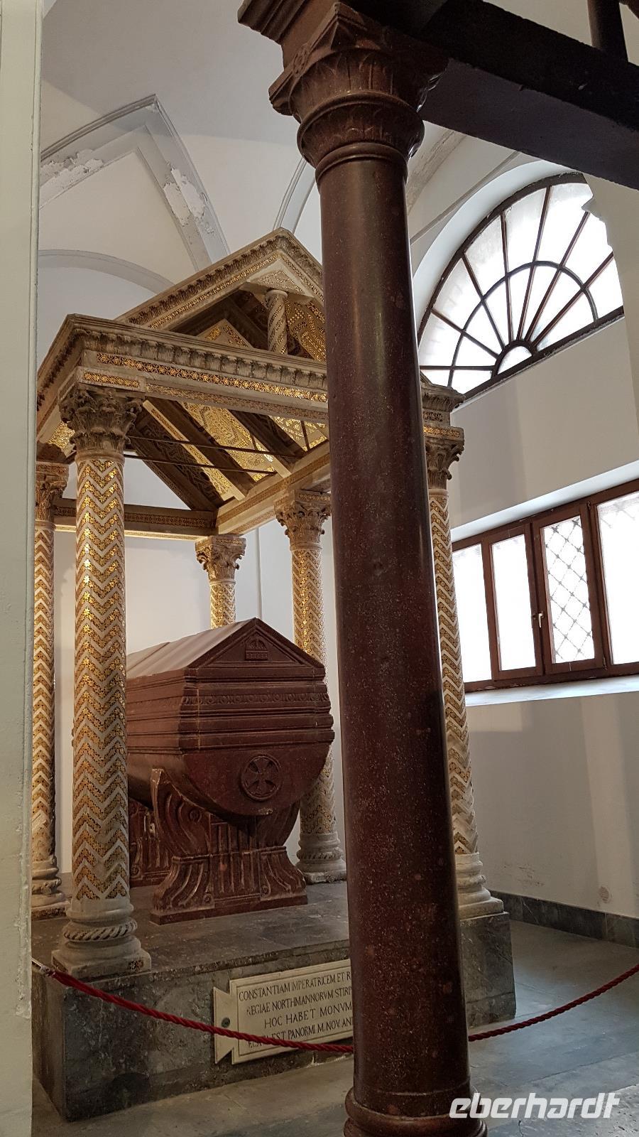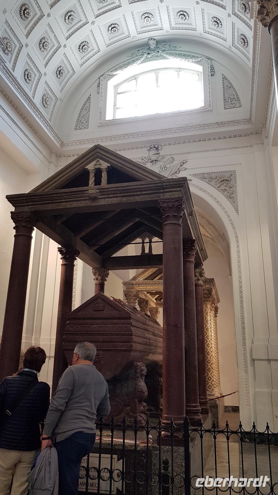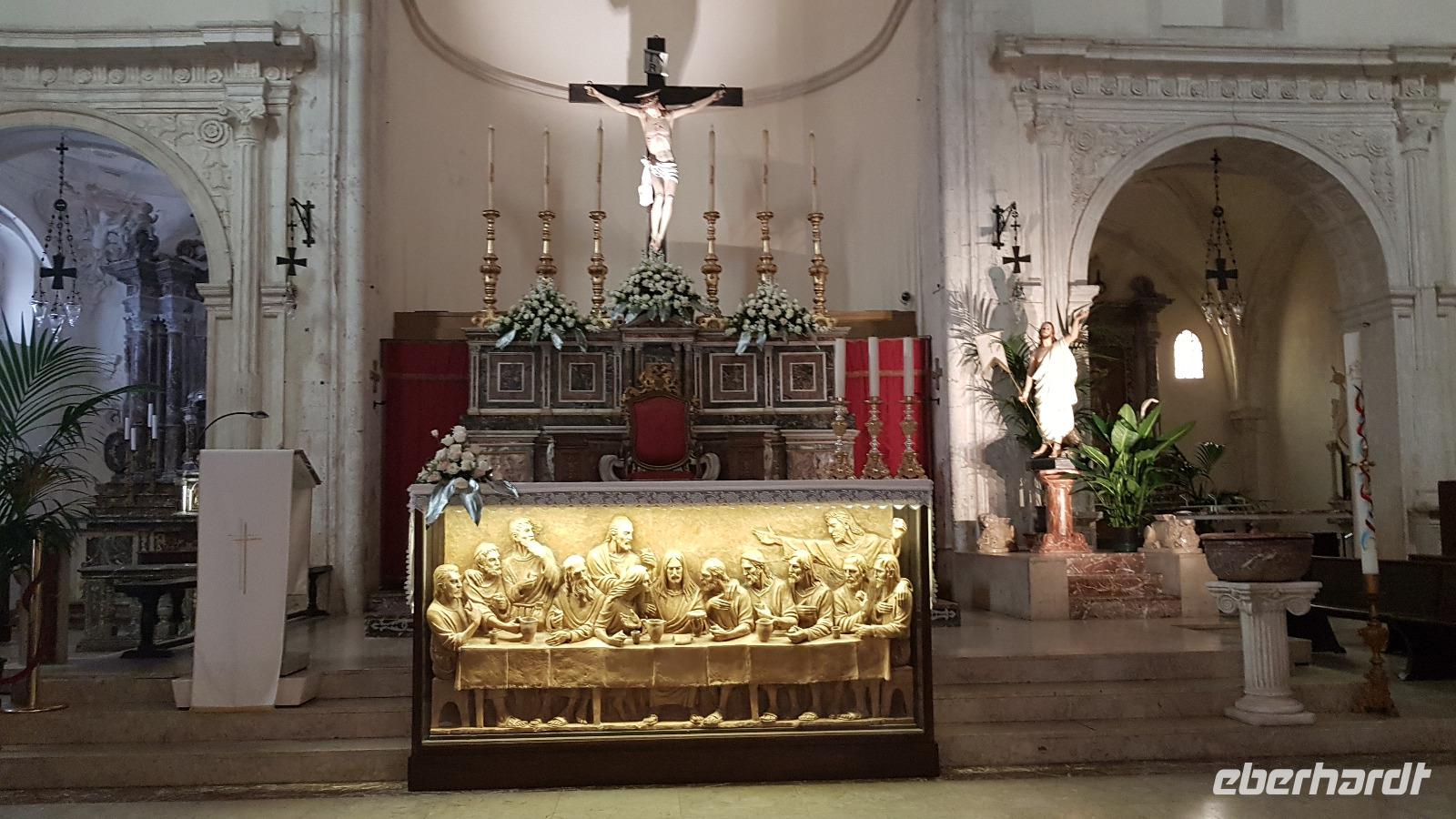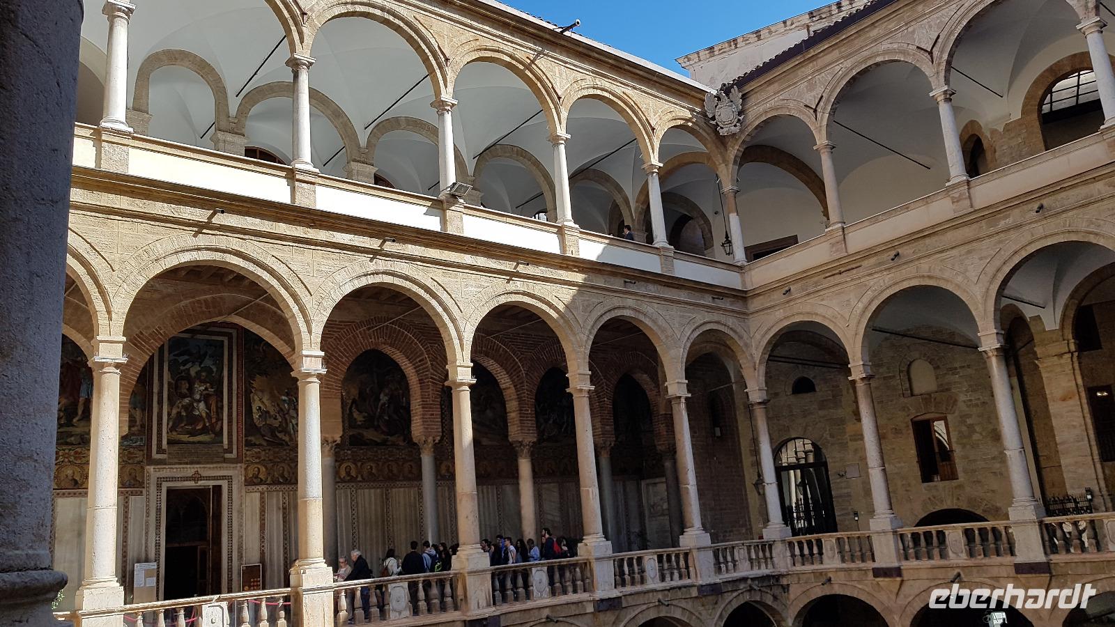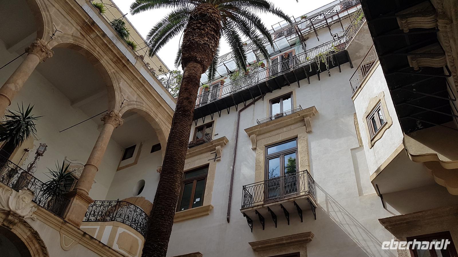 Heute heißt es wieder zeitig losfahren. Um 8 Uhr sind die Koffer verstaut und unser erstes Ziel heißt Palermo. Durch das Belice Tal geht es westwärts, wir passieren die Bucht von Mondello und Annemarie erzählt uns von der heiligen Rosalie, sie wird verehrt, weil durch sie letztendlich die schwarze Pest 1652 besiegt wurde. Dann erreichen wir Palermo, Annemarie wohnt hier und so können wir die obligatorischen Staus clever umfahren. Durch den Garibaldi Park und am Massimo Theater vorbei geht es zur Capella Palatina. Sie befindet sich im Palazzo Reale, dem königlichen Palast, in dem auch das sizilianische Parlament und die Regionalregierung ihren Sitz hat. Erfreulicherweise ist die Warteschlange am Check-Point kurz und so können wir in kürzester Zeit die Palastkapelle betreten. Was für eine Pracht! Die Decke mit Holzschnitzereien, mit Seide überzogen, die Mosaiken mit farbigen und vergoldeten Steinen, der Boden mit arabischen Mosaiken und und und. Szenen der Bibel, des alten Testamentes sind dargestellt, dazu eine kunstvolle Verknüpfung von lateinischen, griechischen und arabischen Elementen, ach wenn es doch heute auch so ein friedliches Miteinander geben könnte...Wir spazieren weiter durch Palermo zur Kathedrale, auch Normannendom genannt. Sie erfuhr mehrfach Um- und Anbauten und schließlich bekam sie im 18. Jahrhundert eine Kuppel und klassizistische Elemente. Annemarie zeigt uns den Meridian, immer 12:00 Uhr markiert die Sonne durch eine winzige Öffnung in der Decke den Punkt mit dem aktuellen Sternzeichen darauf. Dann ist Zeit für individuelle Erkundungen und wer möchte besucht die Staufergräber hier. Heinrich VI., Friedrich II und auch Königin Konstanze von Sizilien sind hier begraben. Wir treffen uns auf dem Platz vor der Kathedrale und spazieren durch die Stadt, an alten Palazzos vorbei wo die Zeit stehengeblieben zu sein scheint bis zum Rathaus und dem „Platz der Schande" mit dem Schambrunnen. Den Namen erhielt der Platz weil die Stadt kaum Geld für die Bürger hatte, sich aber diesen Brunnen leistete- welche Schande...Weiter ging es zum „Platz der 4 Ecken", dem Quattro Canti, hier kreuzen sich Corso Vittorio Emanuele und Via Maqueda, im 17. Jahrhundert entstand hier an jeder der 4 Ecken ein Palast in barocker Baukunst. Unser nächstes Ziel ist die Martorana-Kirche in unmittelbarer Nähe, auch hier begegnet uns wieder diese phantastische Mosaik-Kunst. Ein letzter gemeinsamer Spaziergang führt zum Teatro Massimo, der Oper Palermos. Ab hier kann jeder individuell die nächste Zeit verbringen und ein wenig ausruhen. Nach dem Mittag fahren wir nach Cefalu. Antonio fährt die Küstenstraße entlang, da dürfen Fotostopps natürlich nicht fehlen. Strahlender Sonnenschein, türkisblaues Wasser und eine phantastische Landschaft begleiten uns. In Cefalu angekommen halten wir am Faro - dem Leuchtturm und spazieren hinunter in die Stadt zum Strand. Von hier aus geht es die Gassen wieder hinauf, am alten Waschplatz der Stadt vorbei zur Kathedrale- und auch hier empfängt uns wieder diese wunderbare Mosaik-Kunst, die wir schon im Palermo bewundert haben. Die nächste Zeit nutzt jeder für sich, in der Stadt, am Strand oder im Eiscafe. Nach den vielen Eindrücken heute tut diese Auszeit der Seele gut. Am Leuchtturm treffen wir uns dann wieder und fahren weiter Richtung Milazzo. Kurz hinter der Stadt jedoch müssen wir schon wieder halten- ein so toller Ausblick! Und den versüßen wir uns mit Limoncello, den konnte ich in Cefalu erwerben- diese Spezialität Siziliens sollten wir unbedingt probieren- ab hier haben Fotostopps für unsere Gruppe eine ganz neue Bedeutung...Ziemlich spät erst erreichen wir unser Hotel in Milazzo, den Welcome-Drink des Hotels nehmen wir im Stehen mit während wir auf unsere Zimmerschlüssel warten und schon treffen wir uns zum Abendessen. Und sind positiv überrascht. Entgegen aller Befürchtungen sind Essen und Service große Klasse, die Zimmer und das Hotel sowieso und so klingt dieser Tag rundum positiv aus.