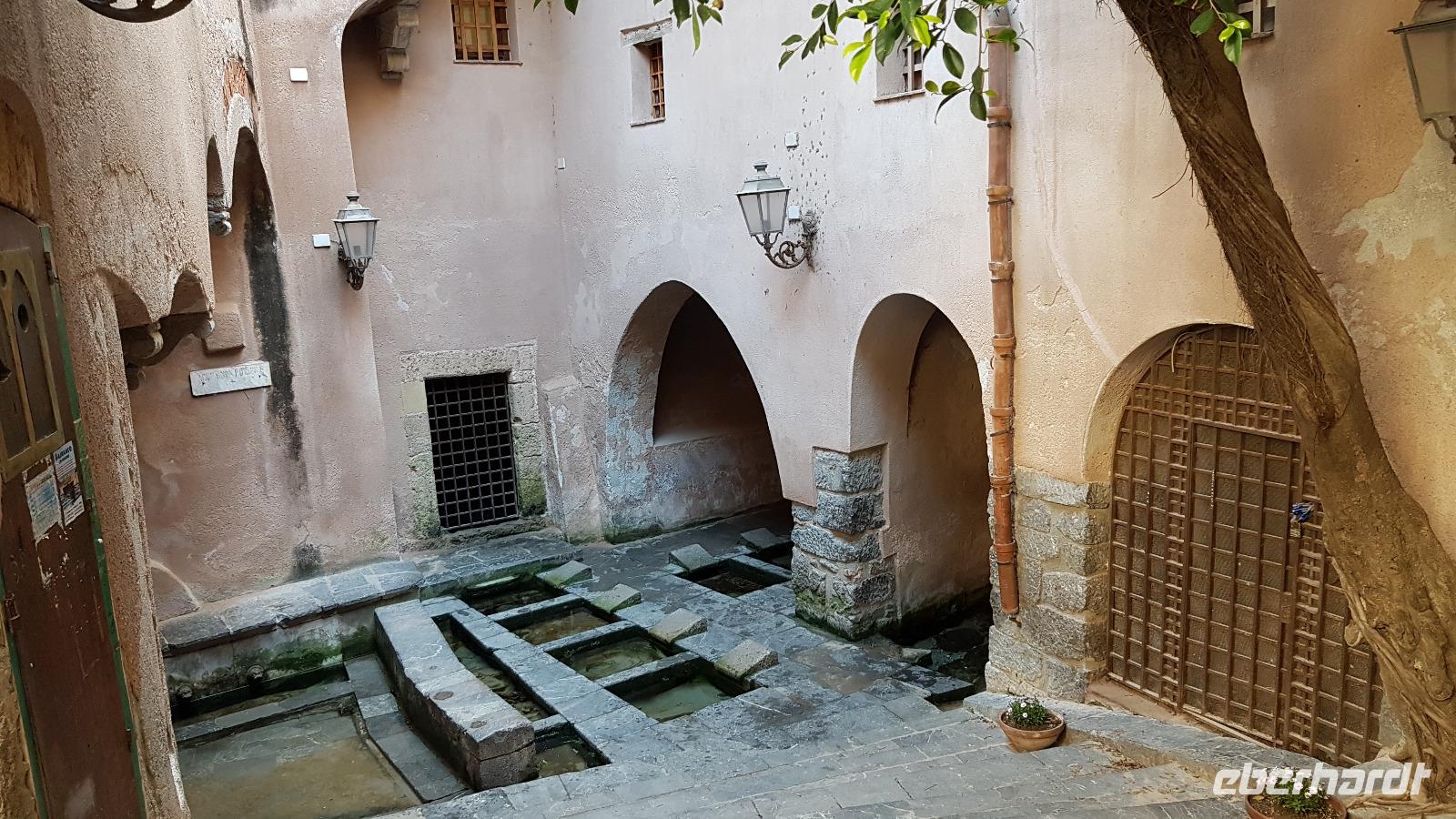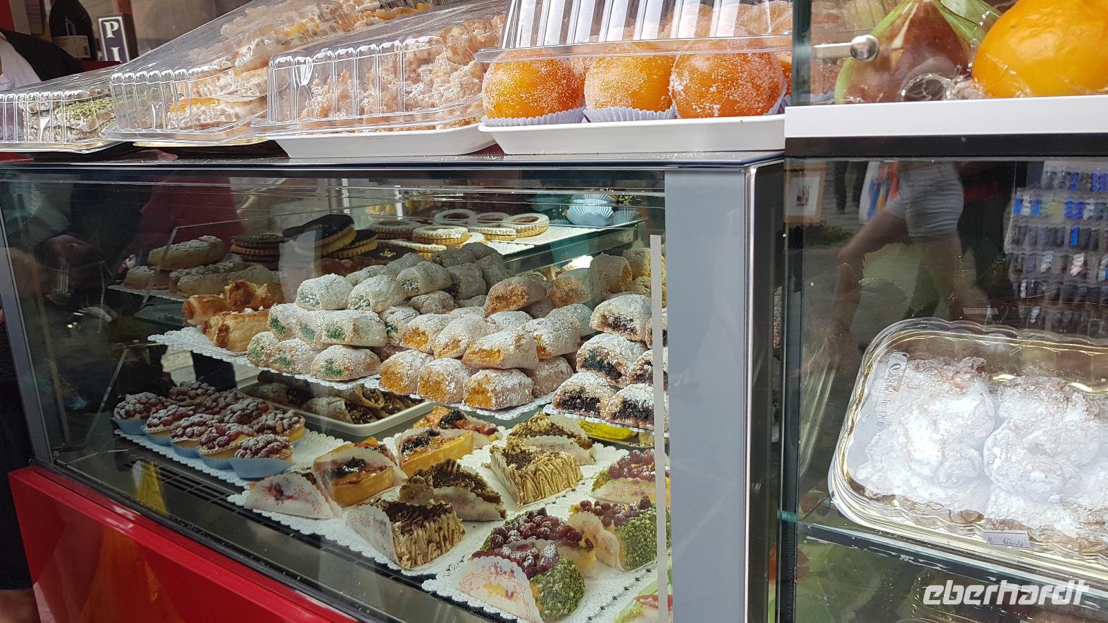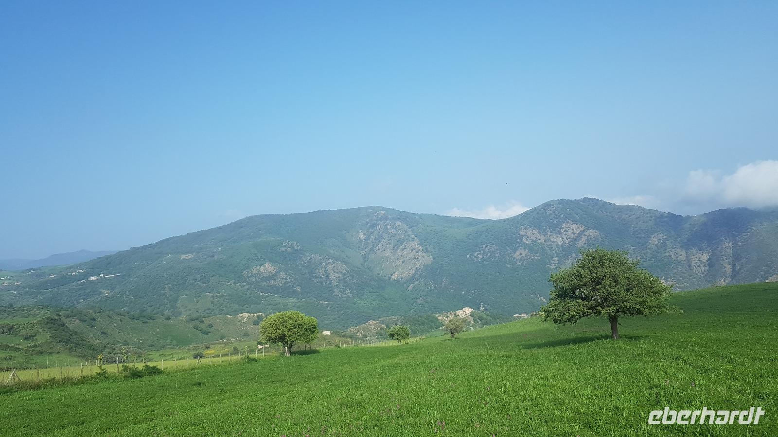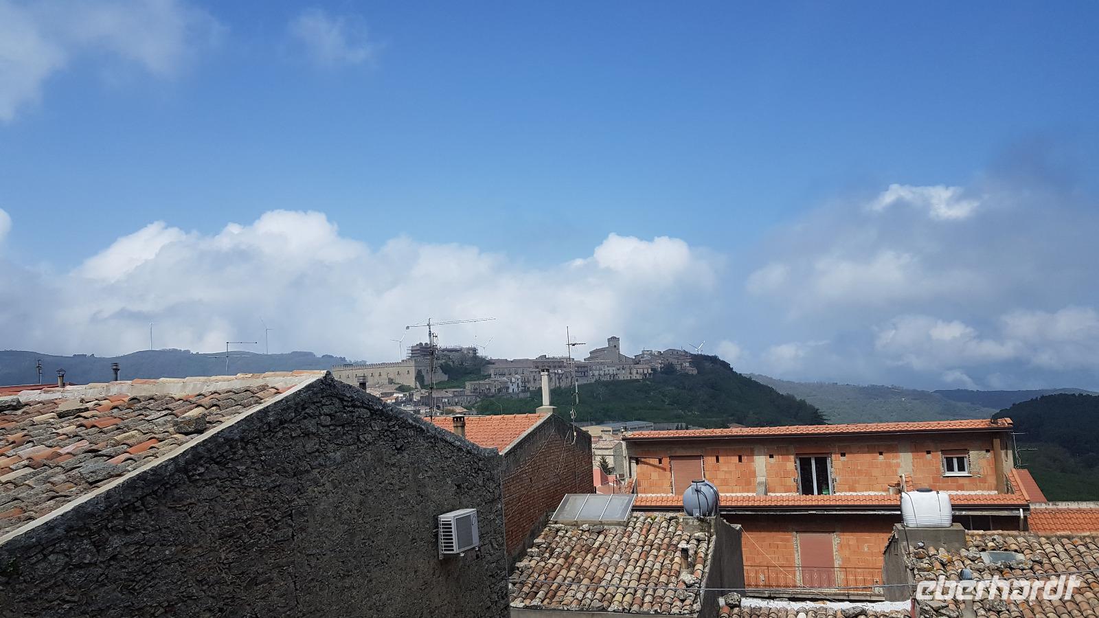 Wieder heißt es zeitig los, eine ordentliche Wegstrecke liegt vor uns und so sind 8 Uhr die Koffer schon im Bus verstaut. Unsere Fahrt führt uns heute durch das Landesinnere, über das Nebrodi- Gebirge. Wir sehen Tinderi auf dem Felsen mit der Kirche der schwarzen Madonna. Monatalbano Elicono ist dann unser erstes Ziel. Übersetzt heißt es soviel wie: „am weißen Berg" und Eliconi steht für den Fluss, der sich schraubenartig durch das Land windet. Wir laufen durch das Dörfchen und sehen Resignation und Hoffnung dicht nebeneinander. Viele verlassene Häuser- aber auch etliche Neubauten und Modernisierungen. Hier wird deutlich, dass immer noch mehr als 20 % ohne Arbeit sind, bei den jungen Leuten noch weit mehr. Sie müssen dahin gehen, wo sie ihren Lebensunterhalt bestreiten können. Wir besuchen die Burg- ihre Mauern werden restauriert- auch hier also Hoffnung auf ein Bleiben-Können. Von der Ausstellung sind wir überrascht. Wappen, Waffen, Rüstungen und Kleidung sind so detailgetreu dargestellt, selbst ein Kettenhemd kann man anfassen und hochheben und verstand, warum ein Ritter ohne fremde Hilfe nicht wieder aufstehen konnte, wenn er vom Pferd fiel. Eine Sammlung von Musikinstrumenten vervollständigte die aktuelle Ausstellung und so gelangten wir durch das hofeigene Theater wieder zum Ausgang. Dann fuhren wir zu Hochebene von Agrimusco mit ihren Megalithen. Mystische Stätte oder einfach nur eine Laune der Natur? Wir folgten jedenfalls den ausgefahrenen Wegen hinauf, wichen einer Schafherde aus und genossen Natur pur. Der Ätna zierte sich zwar und versteckte sich hinter Wolken, auch die Bucht von Messina war nicht sichtbar, trotzdem genossen wir den Aufstieg hier hinauf. Hinunter musste ich mich sputen, ich wollte vor den anderen zurück sein. Immerhin wartete noch der Rest vom Limoncello auf die Gäste und Antonio hatte noch eine Flasche dazu und die Becher spendiert. Also konnte ich alle am Bus mit einer kühlen Erfrischung empfangen. Welche Freude! Eine Stunde Fahrt später wartete das Borgo San Nicolae auf uns. Auch ein Agriturismo, wie sie seit ca. 15 Jahren vom Staat gefördert werden. Bestehende Höfe sollen erhalten und mit touristischen Angeboten ausgestattet werden. So genießen wir heute- laut einhelliger Meinung der Gäste- das allerbeste Essen auf Sizilien. Mit soviel Lieb zubereitet, weit weg vom Massentourismus- tat das gut! Und schmeckte himmlisch. Der Hausherr führte uns anschließend noch durch das Anwesen, zeigte uns die alte Weinpresse mit ihren Gerätschaften und sogar weiße und bunte Pfauen waren in den Ställen neben Ziegen, Hühnern, Gänsen, Pferden... Gestärkt machten wir uns auf zur Alcantara-Schlucht. Einige sagen, der Fluss hätte die Schlucht im Laufe der Jahrhunderte geschaffen, andere glauben es nicht- nichts desto trotz ist diese Schlucht absolut beeindruckend, die Wassertemperatur eher im frostigen Bereich, so hielt sich die Neugier, hinabzusteigen, in Grenzen. Wir entschieden uns eher für einen Platz oben an der Sonne mit Espresso oder Eis oder beidem... Dann hieß es weiterfahren und schon kamen wir in bekannten Gefilden an- Das Naxos Beach erwartete uns wieder. Wir bezogen gegen 18 Uhr unsere Villetten und trafen uns zum Abendessen wieder. Was hatten wir uns auf das Buffett gefreut- aber keiner hatte so richtig Hunger nach dem tollen Mittagsimbiss heute. Trotzdem überzeugte spätestens das Dessert- Buffett und keiner konnte widerstehen.