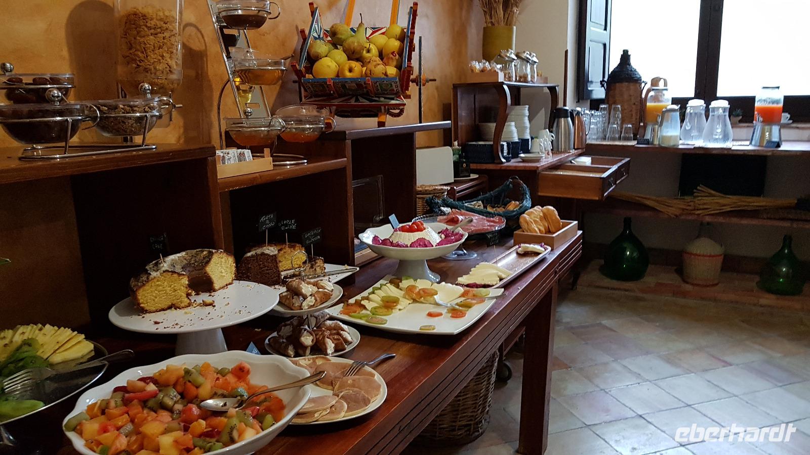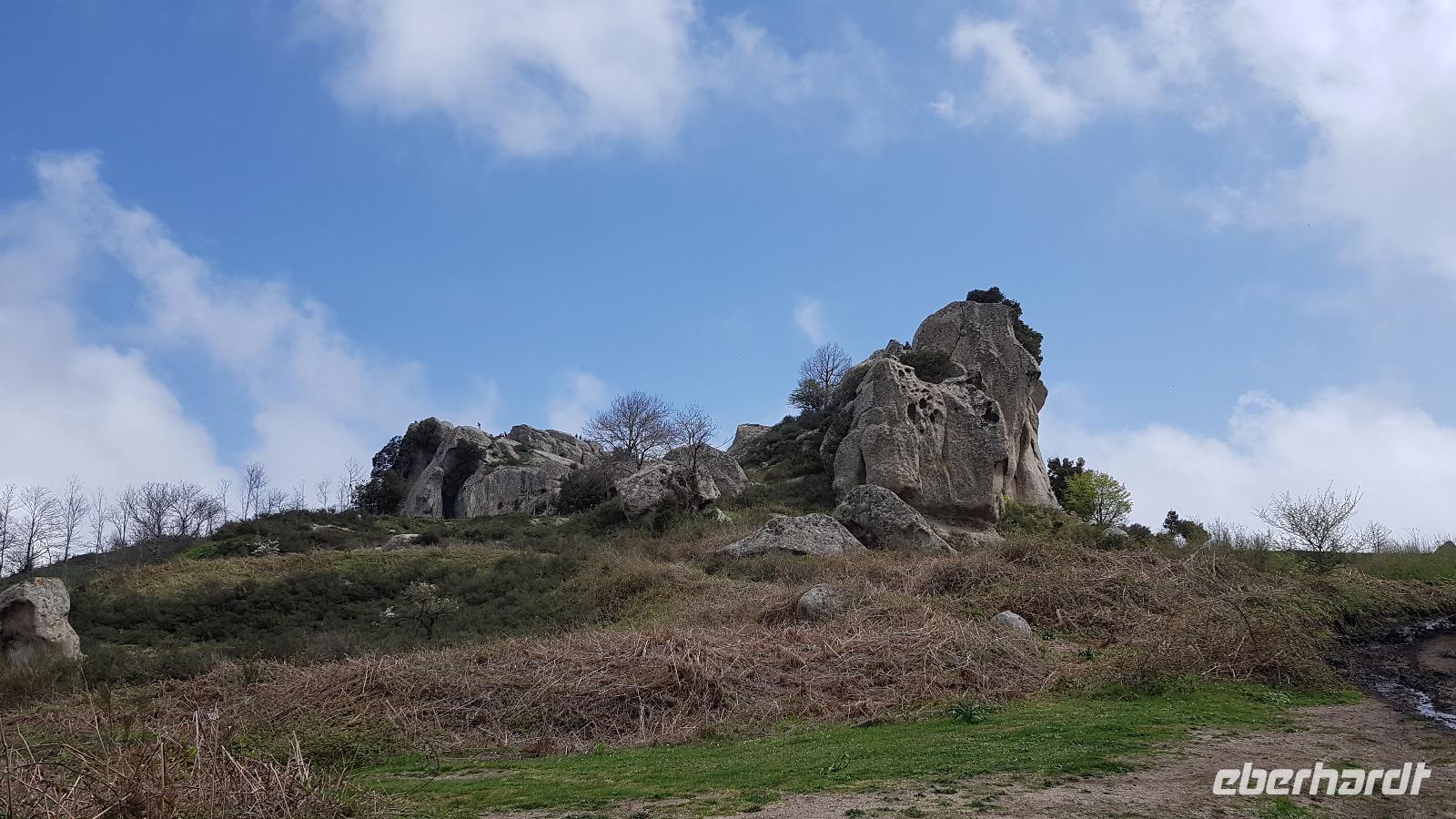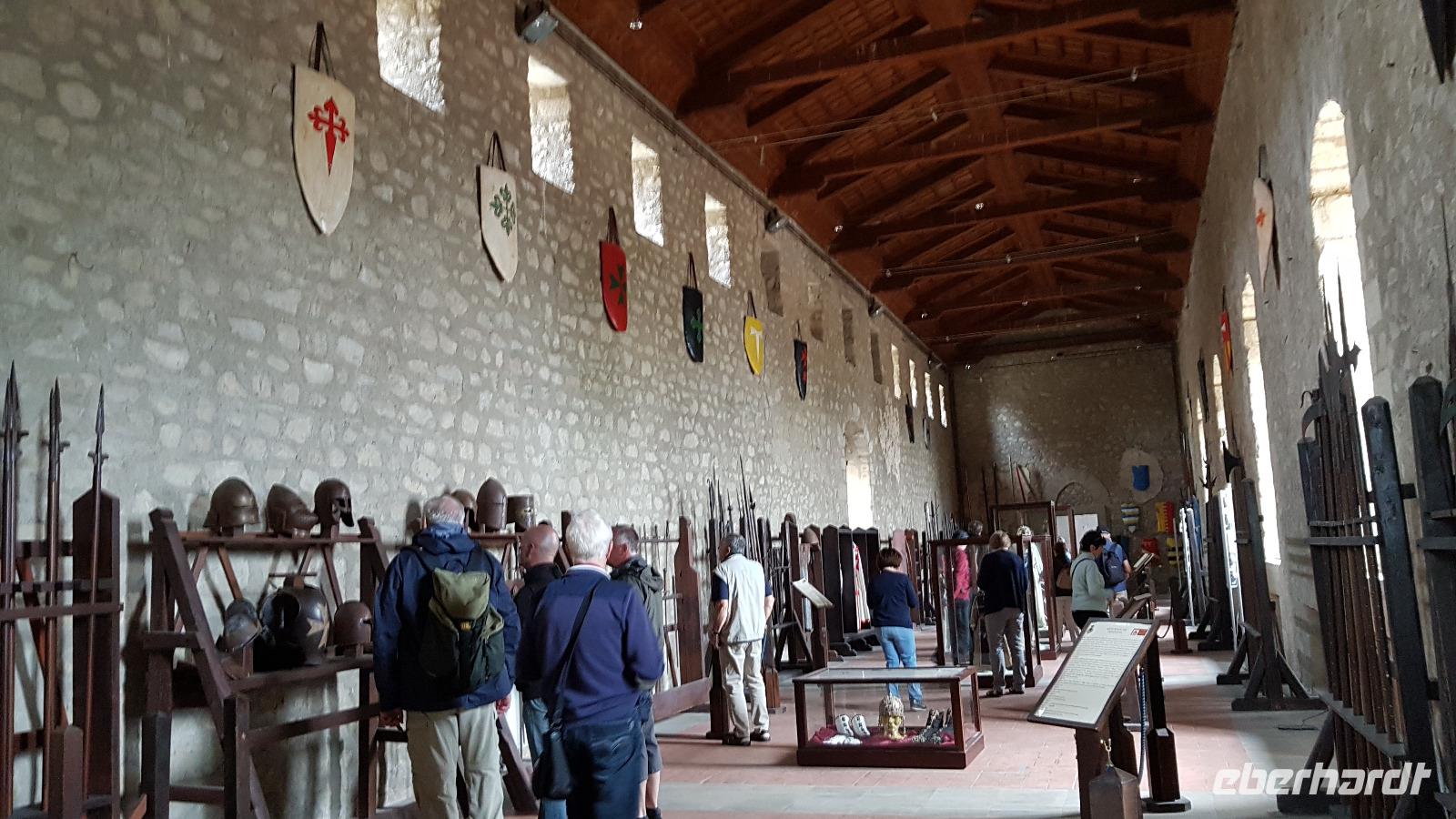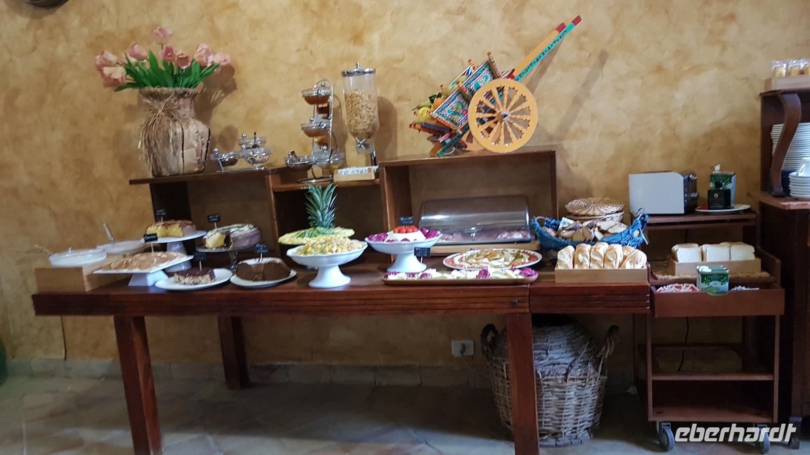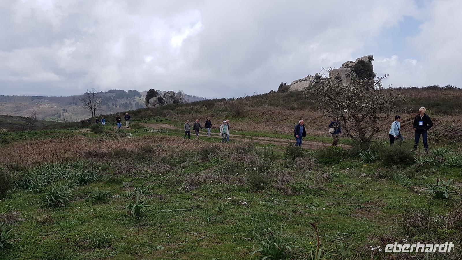 Wieder heißt es zeitig los, eine ordentliche Wegstrecke liegt vor uns und so sind 8 Uhr die Koffer schon im Bus verstaut. Unsere Fahrt führt uns heute durch das Landesinnere, über das Nebrodi- Gebirge. Wir sehen Tinderi auf dem Felsen mit der Kirche der schwarzen Madonna. Monatalbano Elicono ist dann unser erstes Ziel. Übersetzt heißt es soviel wie: „am weißen Berg" und Eliconi steht für den Fluss, der sich schraubenartig durch das Land windet. Wir laufen durch das Dörfchen und sehen Resignation und Hoffnung dicht nebeneinander. Viele verlassene Häuser- aber auch etliche Neubauten und Modernisierungen. Hier wird deutlich, dass immer noch mehr als 20 % ohne Arbeit sind, bei den jungen Leuten noch weit mehr. Sie müssen dahin gehen, wo sie ihren Lebensunterhalt bestreiten können. Wir besuchen die Burg- ihre Mauern werden restauriert- auch hier also Hoffnung auf ein Bleiben-Können. Von der Ausstellung sind wir überrascht. Wappen, Waffen, Rüstungen und Kleidung sind so detailgetreu dargestellt, selbst ein Kettenhemd kann man anfassen und hochheben und verstand, warum ein Ritter ohne fremde Hilfe nicht wieder aufstehen konnte, wenn er vom Pferd fiel. Eine Sammlung von Musikinstrumenten vervollständigte die aktuelle Ausstellung und so gelangten wir durch das hofeigene Theater wieder zum Ausgang. Dann fuhren wir zu Hochebene von Agrimusco mit ihren Megalithen. Mystische Stätte oder einfach nur eine Laune der Natur? Wir folgten jedenfalls den ausgefahrenen Wegen hinauf, wichen einer Schafherde aus und genossen Natur pur. Der Ätna zierte sich zwar und versteckte sich hinter Wolken, auch die Bucht von Messina war nicht sichtbar, trotzdem genossen wir den Aufstieg hier hinauf. Hinunter musste ich mich sputen, ich wollte vor den anderen zurück sein. Immerhin wartete noch der Rest vom Limoncello auf die Gäste und Antonio hatte noch eine Flasche dazu und die Becher spendiert. Also konnte ich alle am Bus mit einer kühlen Erfrischung empfangen. Welche Freude! Eine Stunde Fahrt später wartete das Borgo San Nicolae auf uns. Auch ein Agriturismo, wie sie seit ca. 15 Jahren vom Staat gefördert werden. Bestehende Höfe sollen erhalten und mit touristischen Angeboten ausgestattet werden. So genießen wir heute- laut einhelliger Meinung der Gäste- das allerbeste Essen auf Sizilien. Mit soviel Lieb zubereitet, weit weg vom Massentourismus- tat das gut! Und schmeckte himmlisch. Der Hausherr führte uns anschließend noch durch das Anwesen, zeigte uns die alte Weinpresse mit ihren Gerätschaften und sogar weiße und bunte Pfauen waren in den Ställen neben Ziegen, Hühnern, Gänsen, Pferden... Gestärkt machten wir uns auf zur Alcantara-Schlucht. Einige sagen, der Fluss hätte die Schlucht im Laufe der Jahrhunderte geschaffen, andere glauben es nicht- nichts desto trotz ist diese Schlucht absolut beeindruckend, die Wassertemperatur eher im frostigen Bereich, so hielt sich die Neugier, hinabzusteigen, in Grenzen. Wir entschieden uns eher für einen Platz oben an der Sonne mit Espresso oder Eis oder beidem... Dann hieß es weiterfahren und schon kamen wir in bekannten Gefilden an- Das Naxos Beach erwartete uns wieder. Wir bezogen gegen 18 Uhr unsere Villetten und trafen uns zum Abendessen wieder. Was hatten wir uns auf das Buffett gefreut- aber keiner hatte so richtig Hunger nach dem tollen Mittagsimbiss heute. Trotzdem überzeugte spätestens das Dessert- Buffett und keiner konnte widerstehen.