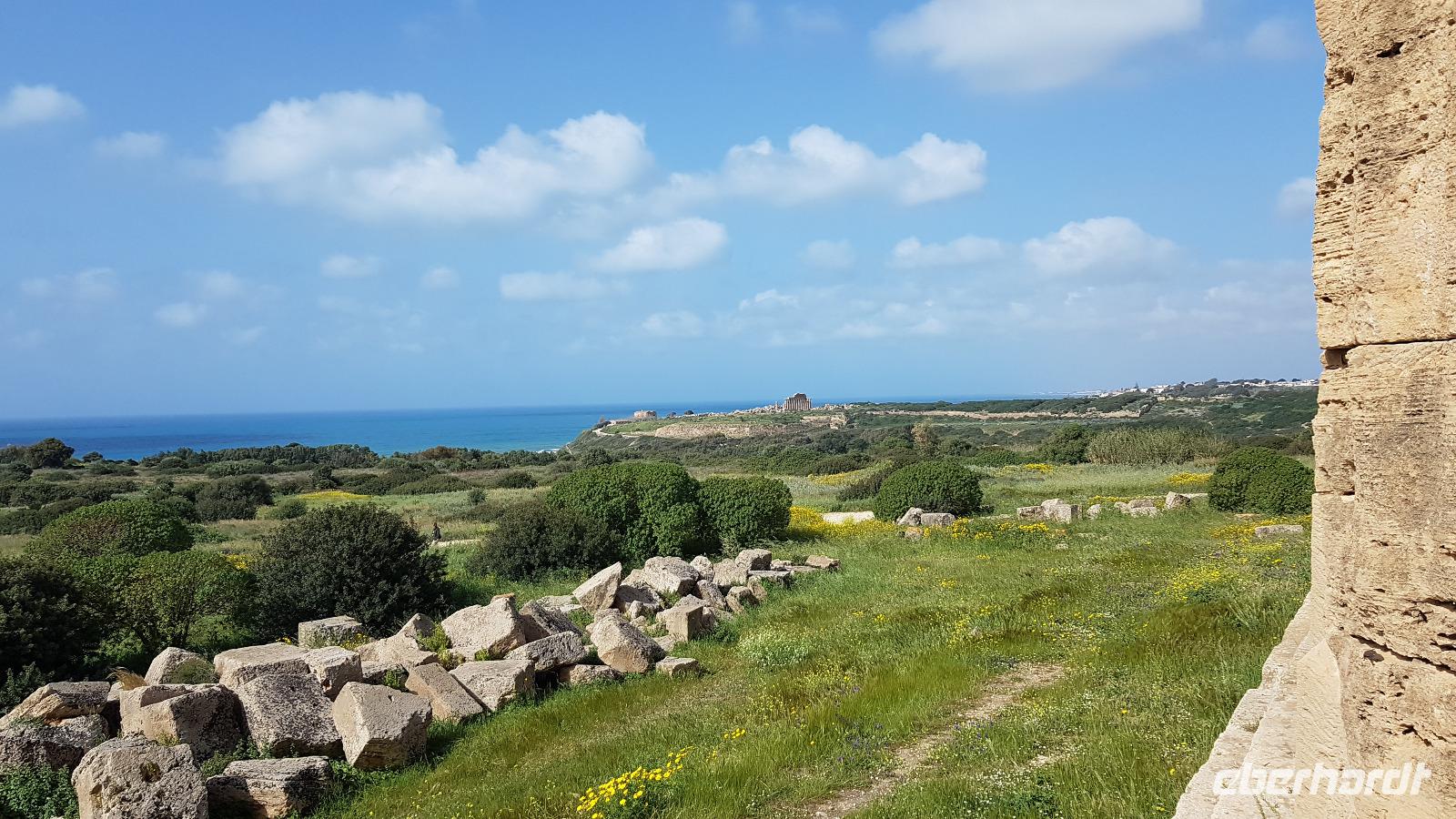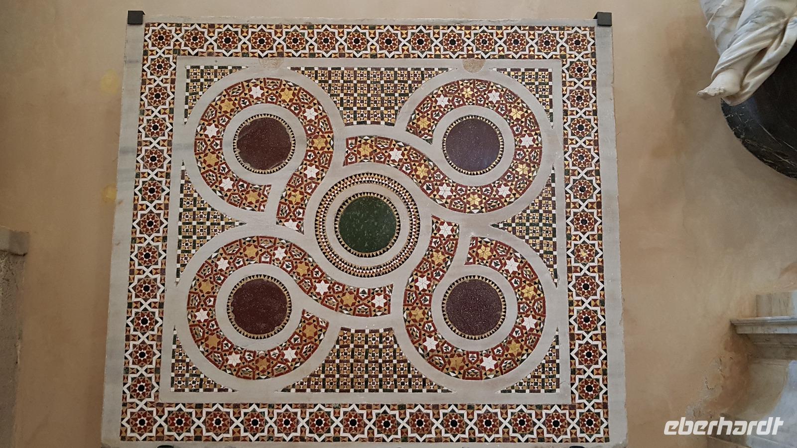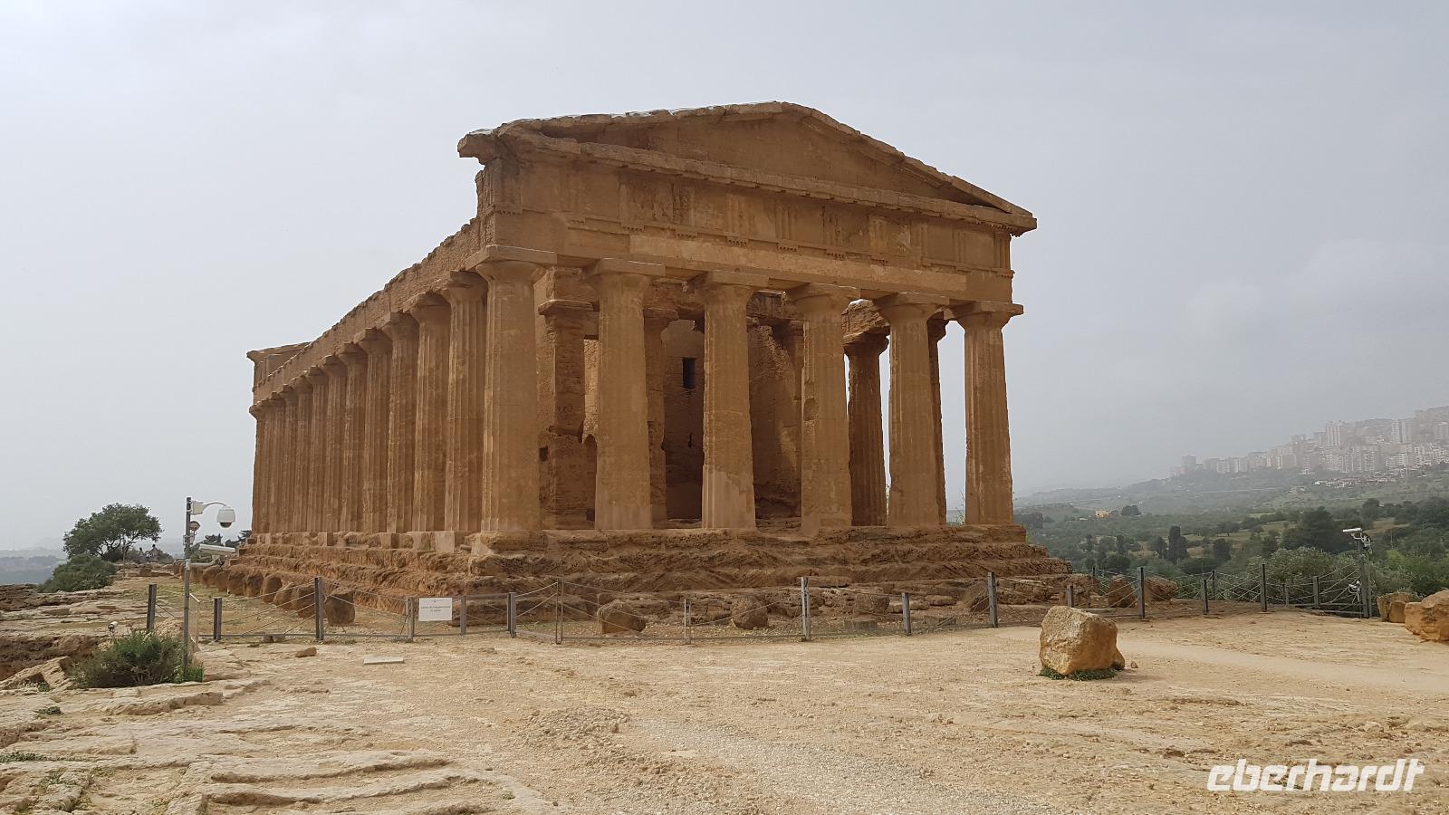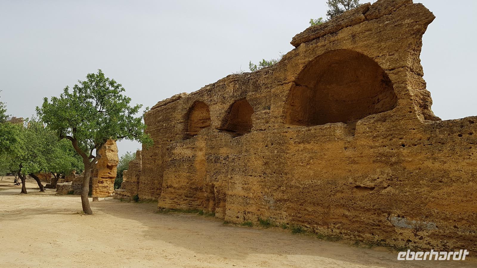 Heute heißt es wieder zeitig aufstehen, der Kofferservice nimmt die Koffer ab 7 Uhr vom Zimmer zum Bus mit und wir haben Zeit für ein Frühstück bevor es 8 Uhr losgeht. Mit einer kleinen Pause erreichen wir gegen 10 Uhr Piazza Armerina. Gut, dass wir keinen so großen Bus haben. So ist es möglich, durch die engen Gassen zu fahren und Annemarie weist uns z.B. auf Brunnen hin, an denen noch heute Trinkwasser geholt wird, wir können einen Blick auf den Dom aus der Normannenzeit werfen, dann sind wir auch schon an der Villa Romana. Zu dieser Stunde sind wir fast allein hier, gut so. Dadurch können wir die herrlichen Bodenmosaike in aller Ruhe ansehen. Sie wurden quasi konserviert, als die Gebäude durch einen Erdrutsch verschüttet wurden. Erst in den 50er Jahre begann man mit den Ausgrabungen- heute werden die Mosaike durch Überdachungen und Nachbauten der ursprünglichen Gebäude geschützt. Besonders angetan hat es uns natürlich die „große Jagd". Auf mehr als 70 Metern sind meisterhaft Szenen dargestellt, in denen wilde Tiere gefangen und verladen werden, wieder entladen und weiter transportiert werden. Ein Beleg dafür, welch großen Stellenwert der Handel mit wilden Tieren damals hatte. Aber auch alltägliche Szenen sind dargestellt, die berühmten „Bikini-Mädchen" treiben Sport und die Siegerin erhält den Lorbeerkranz, die Vorratsräume mit den Ornamenten, auch ein salomonischer Knoten ist dargestellt. Die Zimmer des Hausherrn, in denen Odysseus Polyphem mit Wein betrunken macht, der Sänger so schön singt, dass alle Tiere gebannt ihm zuhören und ihm letztlich das Leben retten. Oder die Zimmer der Kinder: wie sie spielerisch das Jagen, Reiten und Kämpfen lernten. So vieles gibt es zu entdecken, die Bäder, der herrliche Innenhof, in dem man das Wasserspiel quasi vor Augen hat...Doch unser Rundgang ist beendet und unsere Fahrt führt uns weiter nach Agrigent. Unterwegs erzählt uns Annemarie vom Sarsotal und dem Salsa-Fluss. Dieser ist leicht salzhaltig, da er unterirdische Salzquellen durchfließt. Nach einem kurzen Imbiss-Stopp erreichen wir das „Tal der Tempel". Schon von weitem sind die Tempel auf den Bergen sichtbar, auch vom Meer aus, und symbolisieren seit jeher Macht und Verteidigungsbereitschaft. Wir starten am Tempel der Hera und sind fasziniert von der Größe und Schönheit. Bei strahlendem Sonnenschein spazieren wir weiter, vorbei an Grabstätten der Byzantiner hinunter zum Concordia-Tempel. Dieser wurde einst zu einer christlichen Basilika umgebaut, die Säulen wurden zugemauert und sind daher heute besonders gut erhalten. Sie wurden erst im 18. Jahrhundert wieder freigelegt. Am Zeus- Tempel entdecken wir eine Besonderheit: Ursprünglich standen hier gigantische Steinfiguren, die das Dach zu tragen schienen, eine davon liegt heute vor dem Tempel, es ist zwar nur eine Kopie, weil das Original im Museum geschützt liegt, dieser sogenannte Telamon ist aber mehr als beeindruckend. Am späten Nachmittag treffen wir dann unseren Busfahrer am unteren Ausgang und fahren in unser neues Hotel: ein Agriturismo, das Casa di Latomie. Wir beziehen unsere Zimmer und können ein wenig ausruhen, dann gibt es ein wunderbares Abendessen. Schon die Vorspeisen verführen, das hauseigene Olivenöl kann verkostet werden, es gibt Oliven, Pizza-Stückchen, gefüllte Auberginen, natürlich das bekannte dunkle Brot der Region, dann Pasta und dann Salat, Fleischröllchen und Schweinswurst. Dazu ein leckerer Wein- was will man mehr...