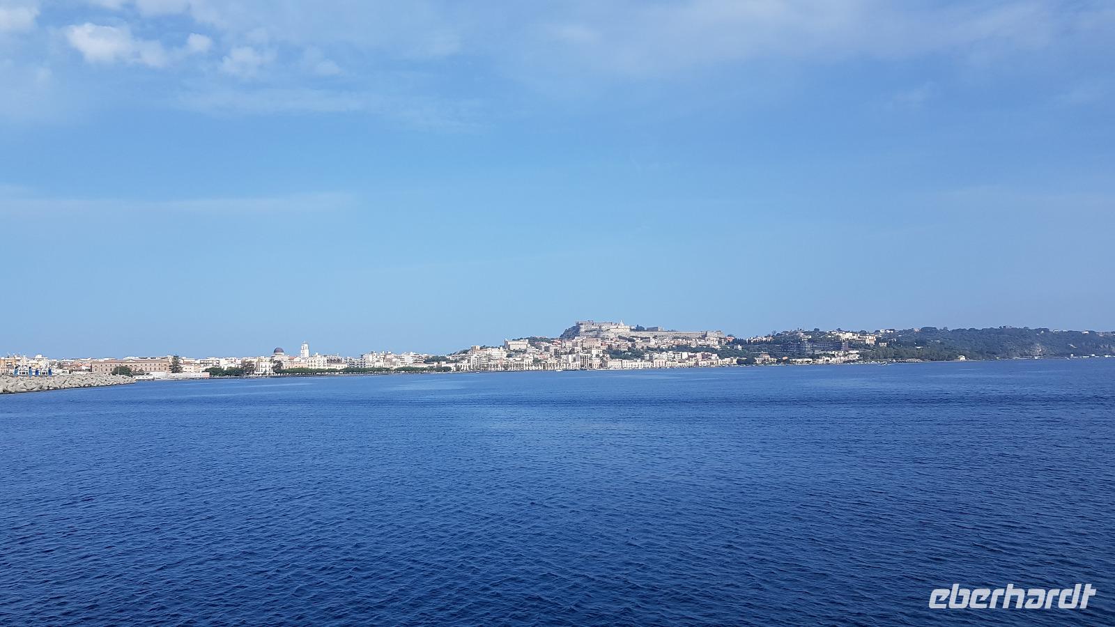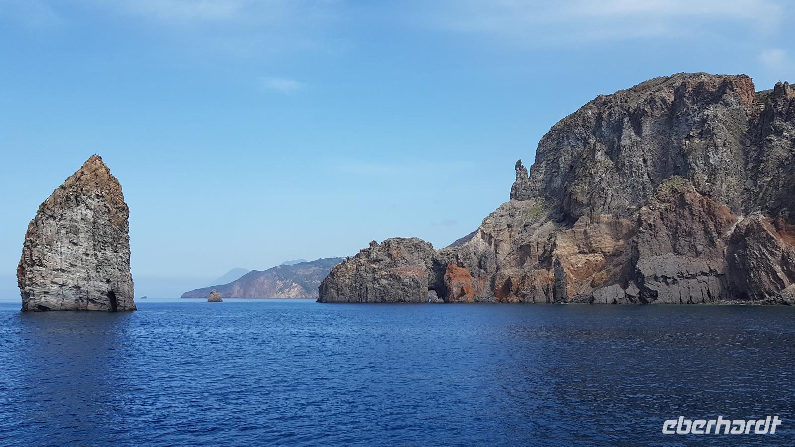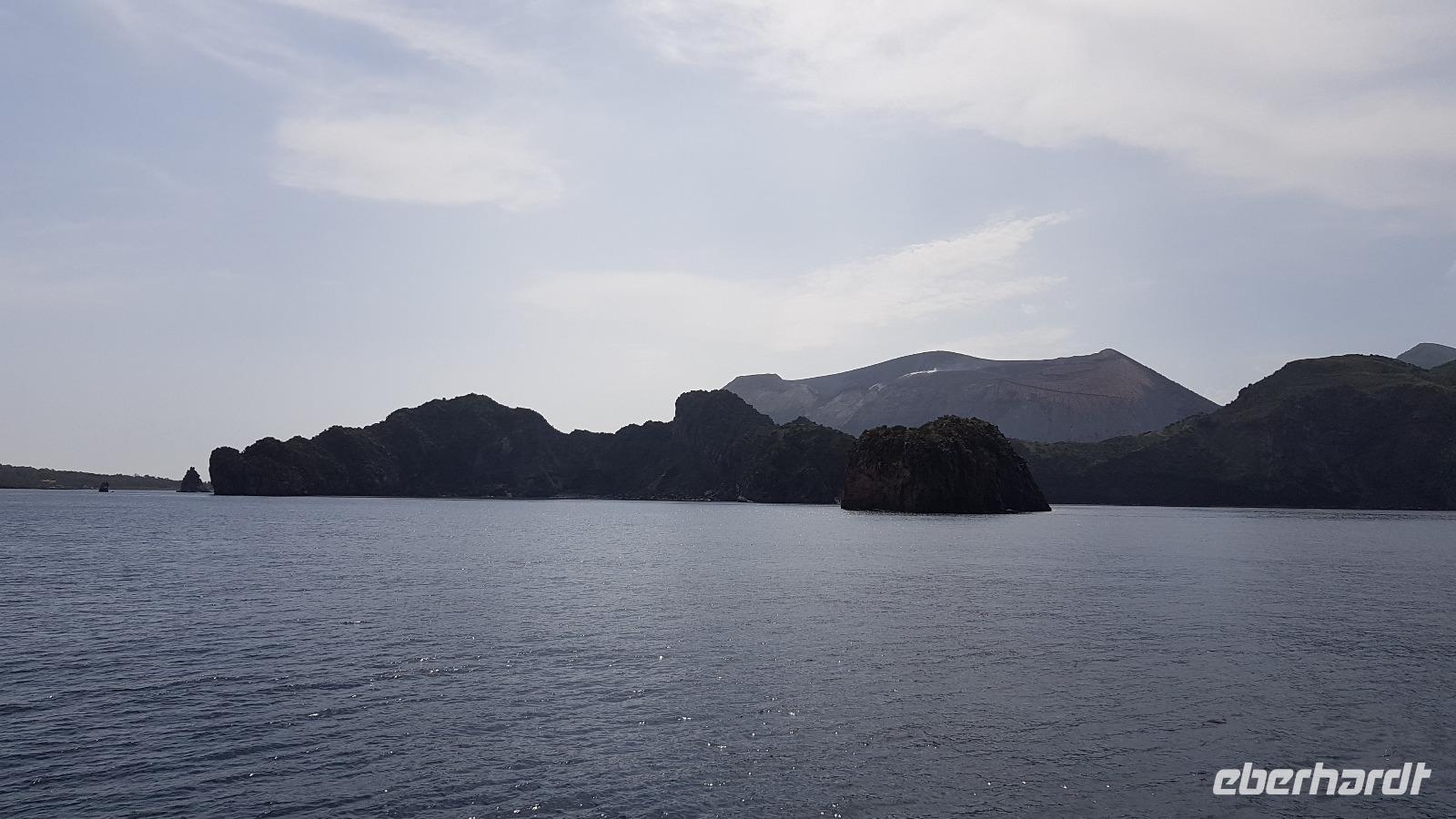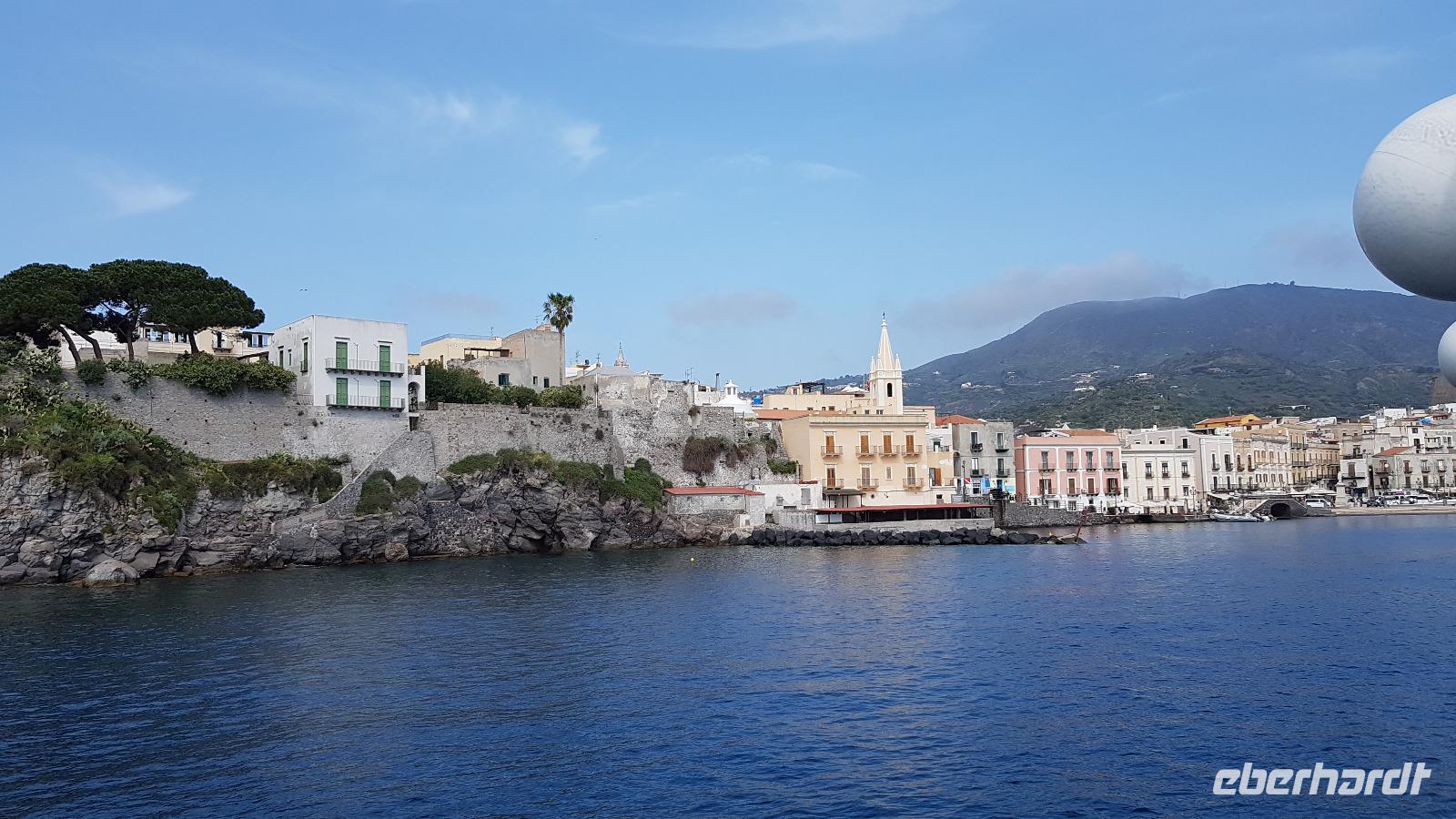 Heute rufen die Äolischen Inseln. Zeitig um 8 geht es los, wir fahren zur Anlegestelle und sind tatsächlich eine der ersten Gruppen. Leicht verspätet legt unser Schiff dann gegen 9:30 Uhr ab. Das Meer ist ruhig und die Überfahrt nach Lipari kurzweilig. Der Kapitän fährt ganz nah an der Westküste Vulkanos vorbei. In der Bucht sehen wir die Grotte, mit etwas Phantasie auch Pegasus, das geflügelte Pferd. Im Meerbecken dort soll Venus gebadet haben, nachdem sie ihrem Mann untreu gewesen sein soll. Bizarre Felsen begleiten unsere Fahrt und bald kommen wir in Lipari an. Wir laufen hinüber zum anderen Hafen. Die Gassen der Stadt sind wunderschön. Aber unser Bus wartet- exakt 25 Plätze- das wurde schon hübsch kuschelig. Dafür entschädigte die Rundfahrt um die Insel. Tolle Ausblicke, auch wenn es ein wenig diesig war. Trotzdem konnten wir auch (ein wenig) den Stromboli sehen. Dieser Vulkan ist ja immer noch aktiv und die Nachtfahrten zu ihm sind äußerst beliebt. Wir fahren auch an den Anlagen zum Abbau des Bimssteines vorbei- diese wurden stillgelegt als die Unesco die Inseln in die Weltkulturerbe-Liste aufnahm. Nun soll das Areal neu strukturiert werden. Man spricht von touristischen Zielen mit Hotels und Stränden. Mal sehen, was daraus wird. Leider ist nach der Rundfahrt kaum noch Zeit für das Städtchen selber, ich kann aber noch einige Schalen frischer Erdbeeren erstehen und so genießen wir diese bis unser Schiff nach Vulkano übersetzt. Für die Schwefelschlamm-Bäder kann sich niemand mehr begeistern, der Empfang mit dem typischen Schwefelgeruch hat ausgereicht. Wir entscheiden uns für einen ruhigen Aufenthalt hier, ein Mittagsimbiss lockt und/ oder ein Spaziergang zum schwarzen Strand. Zum Baden ist es allerdings noch zu frisch. Pünktlich 16.30 Uhr legt unser Schiff dann wieder ab und bringt uns sicher zurück nach Milazzo. Antonio wartet schon mit dem Bus auf uns und wir müssen uns von Annemarie verabschieden. Sie verlässt uns heute. Natürlich mit unserem großen Dank und den besten Wünschen für viele neue nette Gruppen. Gegen 18 Uhr erreichen wir unser Hotel, zum Abendessen treffen wir uns wieder. Es gibt äußerst leckeren Schwertfisch. WOW!