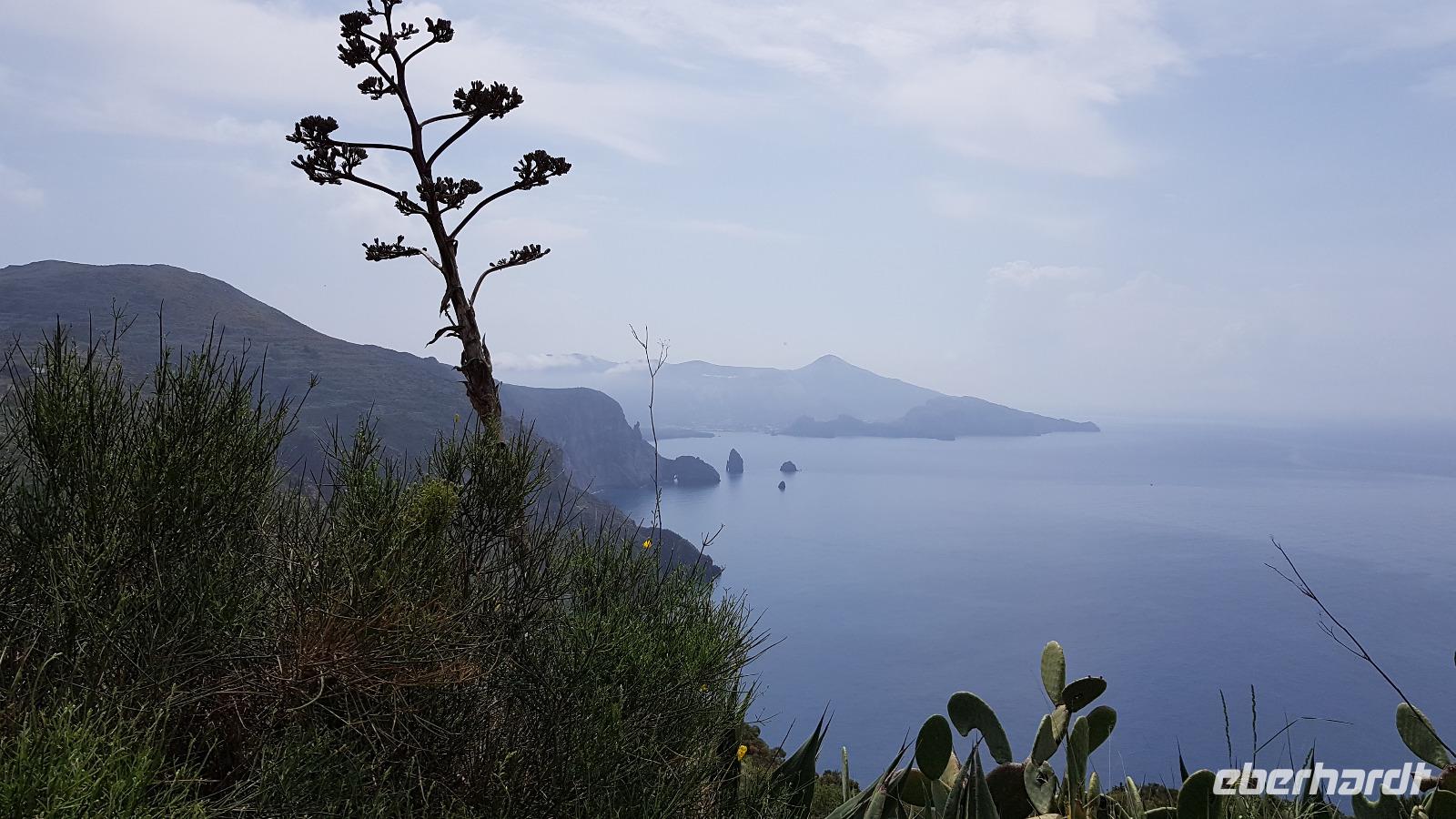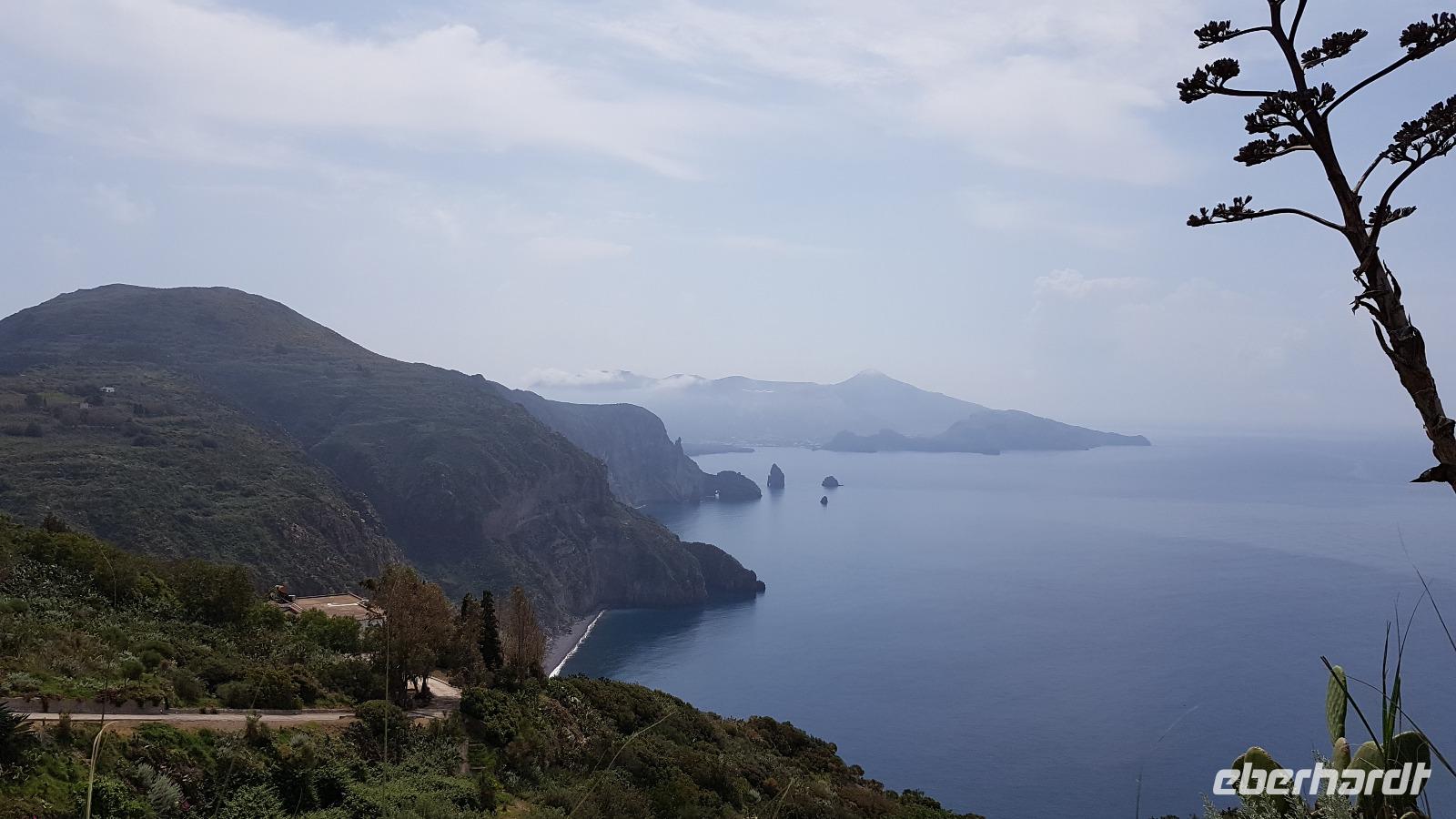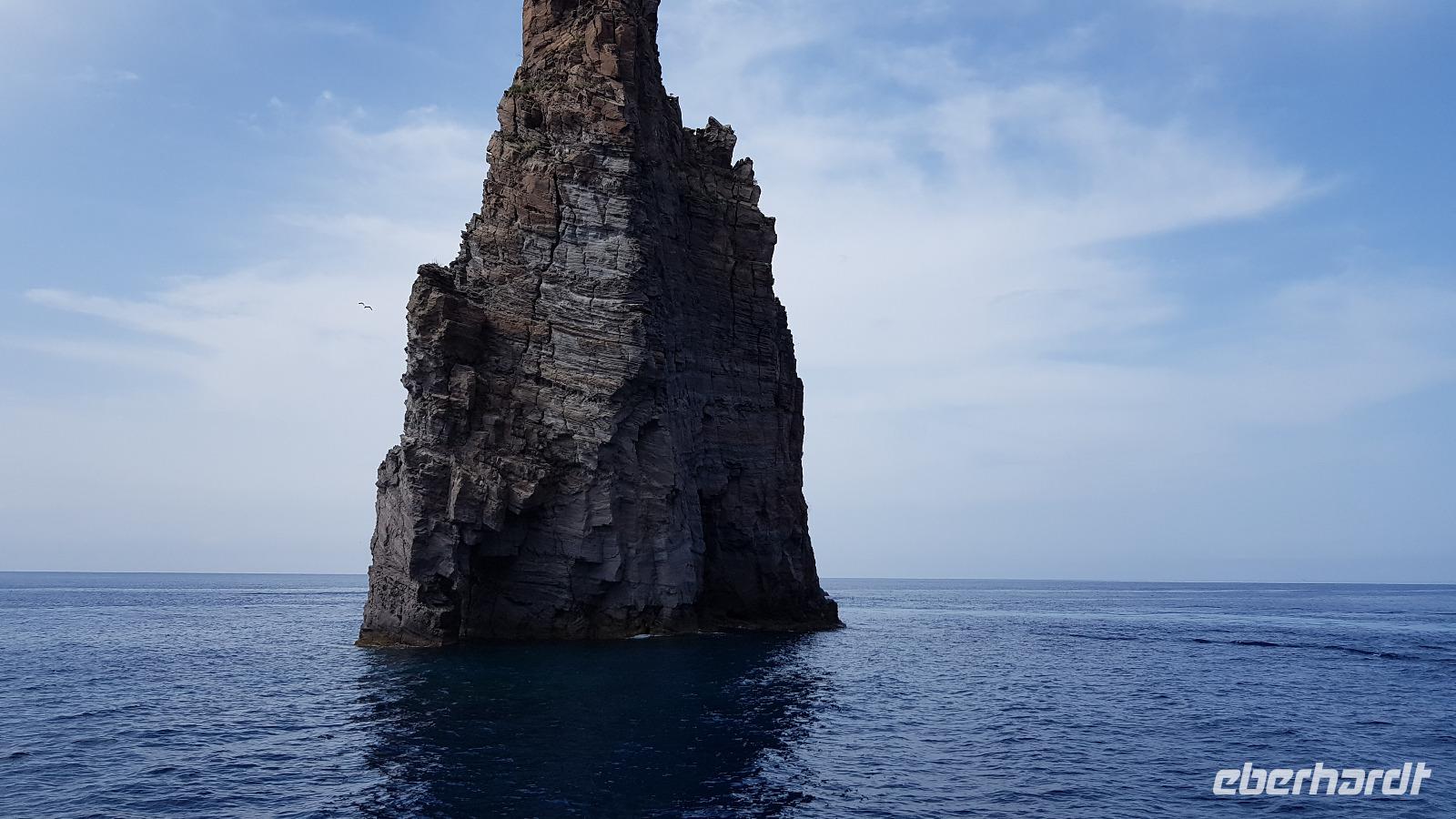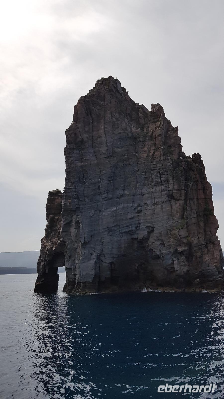 Heute rufen die Äolischen Inseln. Zeitig um 8 geht es los, wir fahren zur Anlegestelle und sind tatsächlich eine der ersten Gruppen. Leicht verspätet legt unser Schiff dann gegen 9:30 Uhr ab. Das Meer ist ruhig und die Überfahrt nach Lipari kurzweilig. Der Kapitän fährt ganz nah an der Westküste Vulkanos vorbei. In der Bucht sehen wir die Grotte, mit etwas Phantasie auch Pegasus, das geflügelte Pferd. Im Meerbecken dort soll Venus gebadet haben, nachdem sie ihrem Mann untreu gewesen sein soll. Bizarre Felsen begleiten unsere Fahrt und bald kommen wir in Lipari an. Wir laufen hinüber zum anderen Hafen. Die Gassen der Stadt sind wunderschön. Aber unser Bus wartet- exakt 25 Plätze- das wurde schon hübsch kuschelig. Dafür entschädigte die Rundfahrt um die Insel. Tolle Ausblicke, auch wenn es ein wenig diesig war. Trotzdem konnten wir auch (ein wenig) den Stromboli sehen. Dieser Vulkan ist ja immer noch aktiv und die Nachtfahrten zu ihm sind äußerst beliebt. Wir fahren auch an den Anlagen zum Abbau des Bimssteines vorbei- diese wurden stillgelegt als die Unesco die Inseln in die Weltkulturerbe-Liste aufnahm. Nun soll das Areal neu strukturiert werden. Man spricht von touristischen Zielen mit Hotels und Stränden. Mal sehen, was daraus wird. Leider ist nach der Rundfahrt kaum noch Zeit für das Städtchen selber, ich kann aber noch einige Schalen frischer Erdbeeren erstehen und so genießen wir diese bis unser Schiff nach Vulkano übersetzt. Für die Schwefelschlamm-Bäder kann sich niemand mehr begeistern, der Empfang mit dem typischen Schwefelgeruch hat ausgereicht. Wir entscheiden uns für einen ruhigen Aufenthalt hier, ein Mittagsimbiss lockt und/ oder ein Spaziergang zum schwarzen Strand. Zum Baden ist es allerdings noch zu frisch. Pünktlich 16.30 Uhr legt unser Schiff dann wieder ab und bringt uns sicher zurück nach Milazzo. Antonio wartet schon mit dem Bus auf uns und wir müssen uns von Annemarie verabschieden. Sie verlässt uns heute. Natürlich mit unserem großen Dank und den besten Wünschen für viele neue nette Gruppen. Gegen 18 Uhr erreichen wir unser Hotel, zum Abendessen treffen wir uns wieder. Es gibt äußerst leckeren Schwertfisch. WOW!
