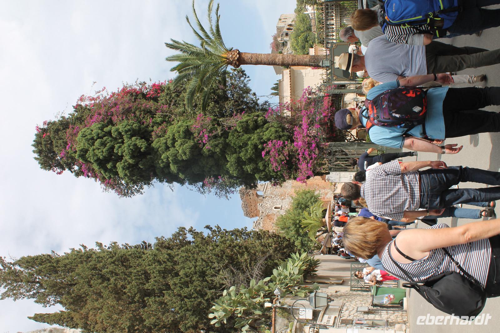 Unser nächstes Ziel war Taormina. Zuvor machten wir zum Mittag noch einen Abstecher in einem schönen Restaurant direkt am Meer. In Taormina angekommen, war der Besuch des alten Theaters und ein Bummel auf der Einkaufsstraße ein schöner Abschluss des Tages bei gutem Wetter. Leider waren auch viele Kreuzfahrtgäste zur selben Zeit in der Stadt, weshalb das Getümmel groß war. Am Abend kamen wir wieder im Hotel an.