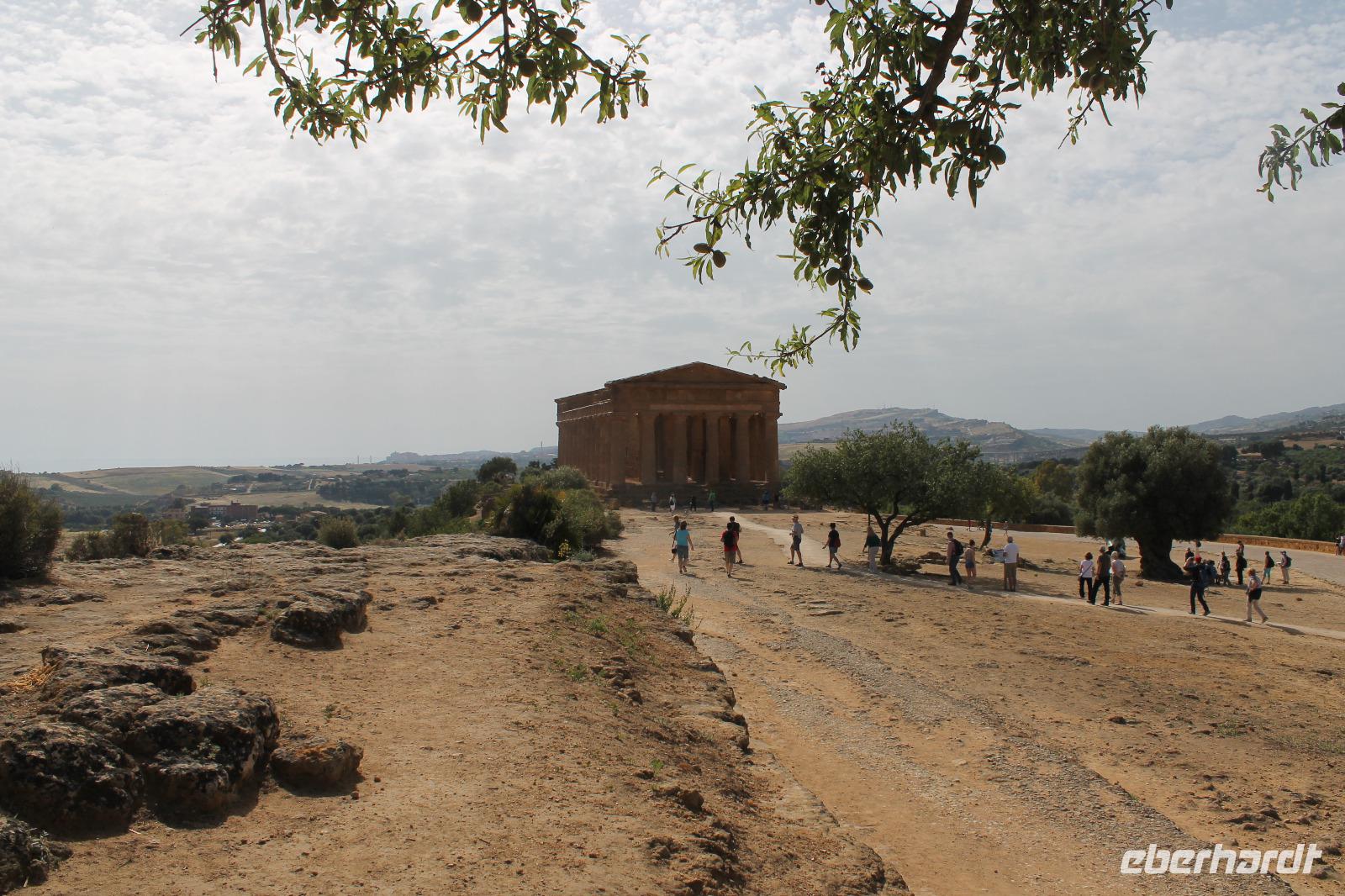 Heute checkten wir schon sehr früh aus, um den Tag komplett zu nutzen. Vorerst blickten wir zum Abschied nach Taormina und zum Castel Mola hinauf und machten uns auf den Weg zur Villa del Casale. Wir fuhren durch die Kornkammer Siziliens in Richtung Südküste, vorbei an hunderten Orangenplantagen,über Flüsse, Wiesen und Felder. In einem sehr grünen und idyllischen Tal, liegt die spätantike Villa an einer früheren Verbindungsstraße zwischen Catania und Agrigento. Sie wurde Ende des 3. Jhd. Gebaut und bei einem Erdbeben im 12. Jhd. Verschüttet - damit wurde sie zugleich von weiterem Verfall geschützt. Das in den 50er Jahren systematisch freigelegte Gebäude wurde zum UNESCO Weltkulturerbe und bis heute wurde noch nicht geklärt, wer ihr Besitzer war. „Sicher ist, dass sich in den Mosaiken der Villa Casale, nur wenige Jahrzehnte vor dem Untergang des Römischen Reichs, ein letztes Mal der genussfreudige Mensch der Spätantike mit seiner Lust an Eros, Jagd und Wettkampf zeigt." Den nächsten Halt machten wir zur Mittagspause in einem netten Restaurant. Nachdem wir uns mit den Köstlichkeiten des Hauses gestärkt haben, führte uns unsere Reise weiter Richtung Gela und zum Tal der Tempel. Wir fuhren hinauf zum Eingang des Tales der Tempel. Durch die Sicherheitskontrollen kamen wir alle problemfrei. Wir starteten am höchsten Punkt des Tales unseren Spaziergang - am Hera-Tempel. Von hier aus verfolgten wir die alten Stadtmauern und gingen weiter in Richtung des Concordia-Tempels. Im Landhaus angekommen, bezogen wir unsere Unterkünfte und verkosteten die leckeren Spezialitäten des Hauses sowie das ausgezeichnete Olivenöl, für welches sie bereits mehrfach prämiert wurden.