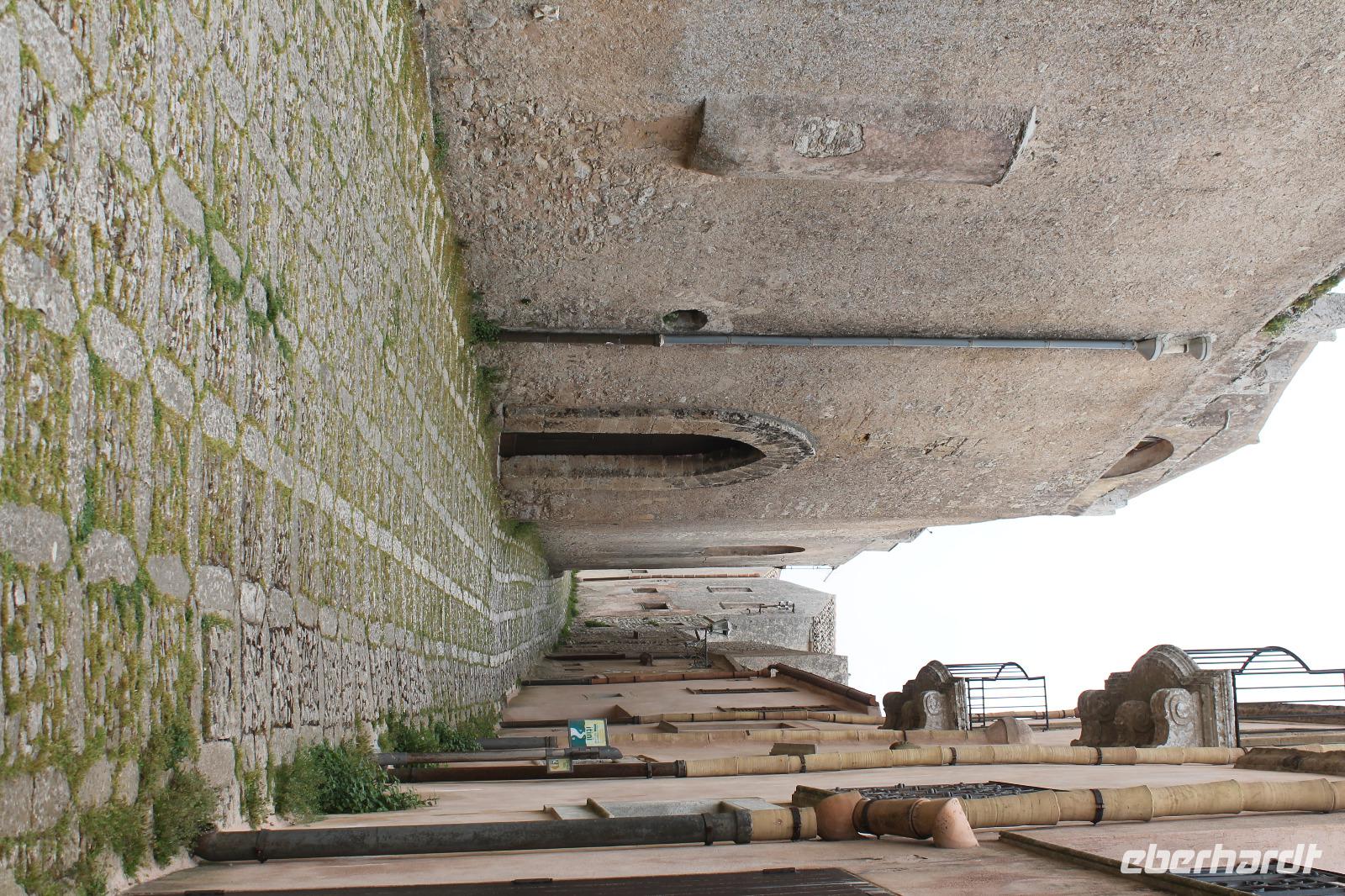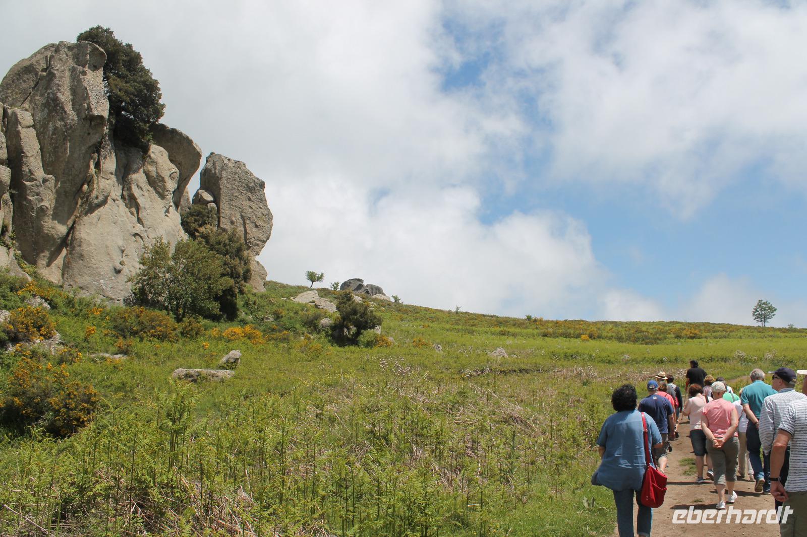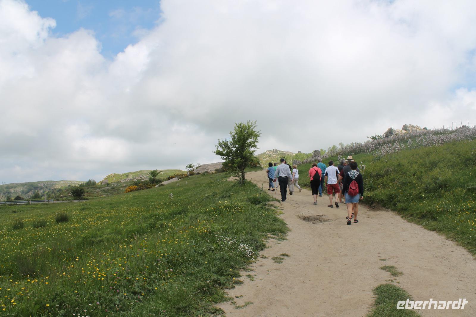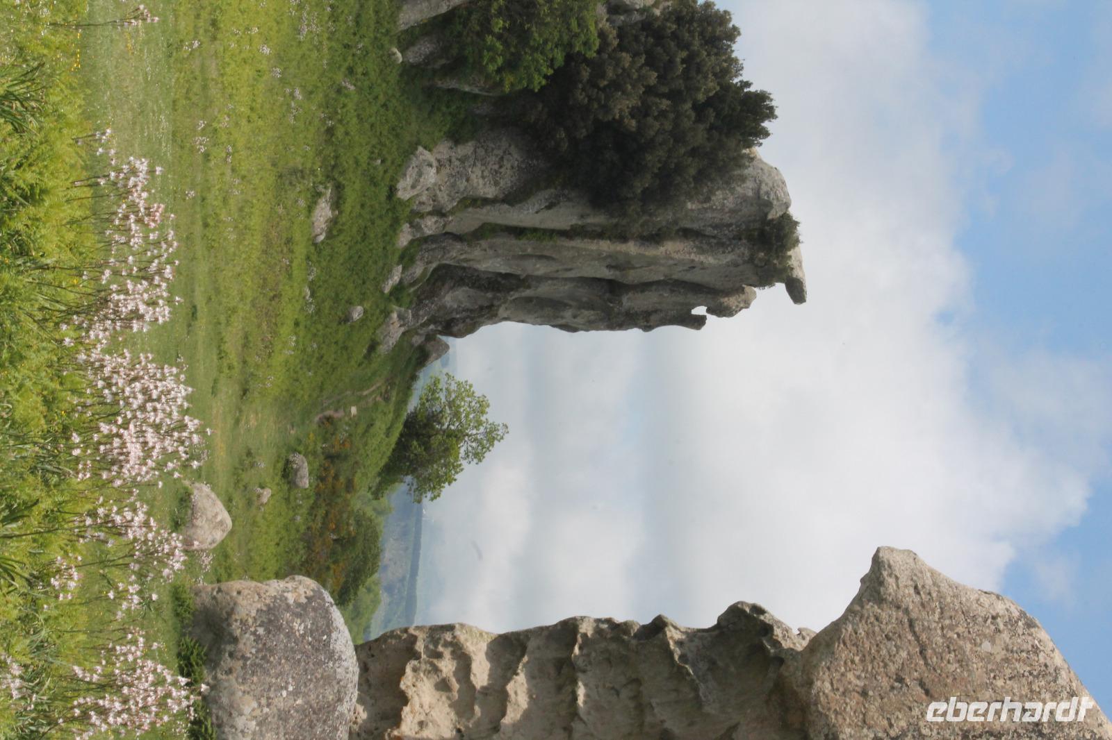 Heute lernten wir Alex kennen, unseren Reiseleiter für diesen Tag. Gemeinsam fuhren wir vom Hotel aus los. Auf der anderen Seite der Bucht sahen wir noch einmal die Erdölraffinerien von Milazzo, bevor wir auf der Autobahn die erklommenen Äolischen Inseln ein letztes Mal erblickten. Wir fuhren über die Ebene von Barcellona, wo viel Obst, Gemüse und Zitrusbäume angepflanzt, aber auch Gärtnereien niedergelassen sind. Landwirtschaft, Dienstleistung und Tourismus sind die Größten Faktoren auf der Insel. Die Industrie ist auf Sizilien nur an den Küsten vertreten, deshalb emigrieren viele junge Menschen aus dem Inland, um entweder an der Küste, oder sogar im Ausland Arbeit zu finden. Bald schon waren wir in den Nebrodibergen angekommen und sahen von weitem die Wallfahrtskirche von Tinderi, in der die Schwarze Madonna steht. Die Geschichte besagt, dass einst eine Mutter mit Ihrem Kind in diese Kirche ging und die Madonna überhaupt nicht hübsch fand. Nachdem sie zu ihr „Du bist aber hässich!" sagte, viel das in der Nähe spielende Kind die Klippen herunter - doch im gleichen Moment taten sich Sandbänke auf und das Kind überlebte. So steht auch heute unter der Madonna geschrieben: „Ich bin zwar schwarz, aber schön!" So fuhren wir also durch das Naturschutzgebiet der Nebrodi, vorbei an vielen Wanderwegen und weidenden Kühen, Pferden und Maultieren. In einem der schönsten Dörfer Italiens angekommen, machten wir einen Spaziergang durch die mittelalterliche Stadt. Wir sahen die Santa Catterina, genossen die Aussicht auf die Hochebene und besuchten die Burg Montalbanos. Wir legten auf der Weiterfahrt einen Stopp bei den Megaliten ein, die uns Alex mit vollem Körpereinsatz zeigte. Zum Nachmittag aßen wir im Borgo San Nicolao ein köstliches Buffet mit selbstgemachter Salami, Schinken, Käse, ... es war wunderbar! Zum Abschluss des Tages kamen wir in der Alcantaraschlucht an und sahen einen der größten Flüsse Siziliens.