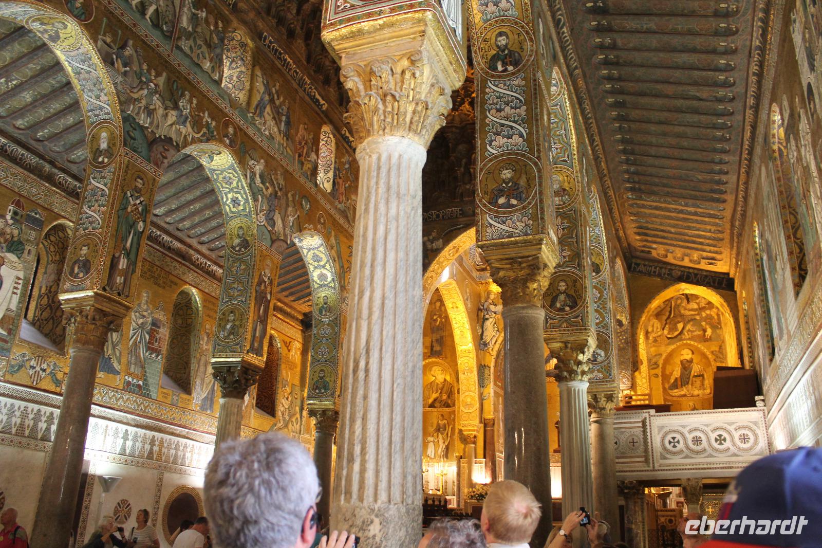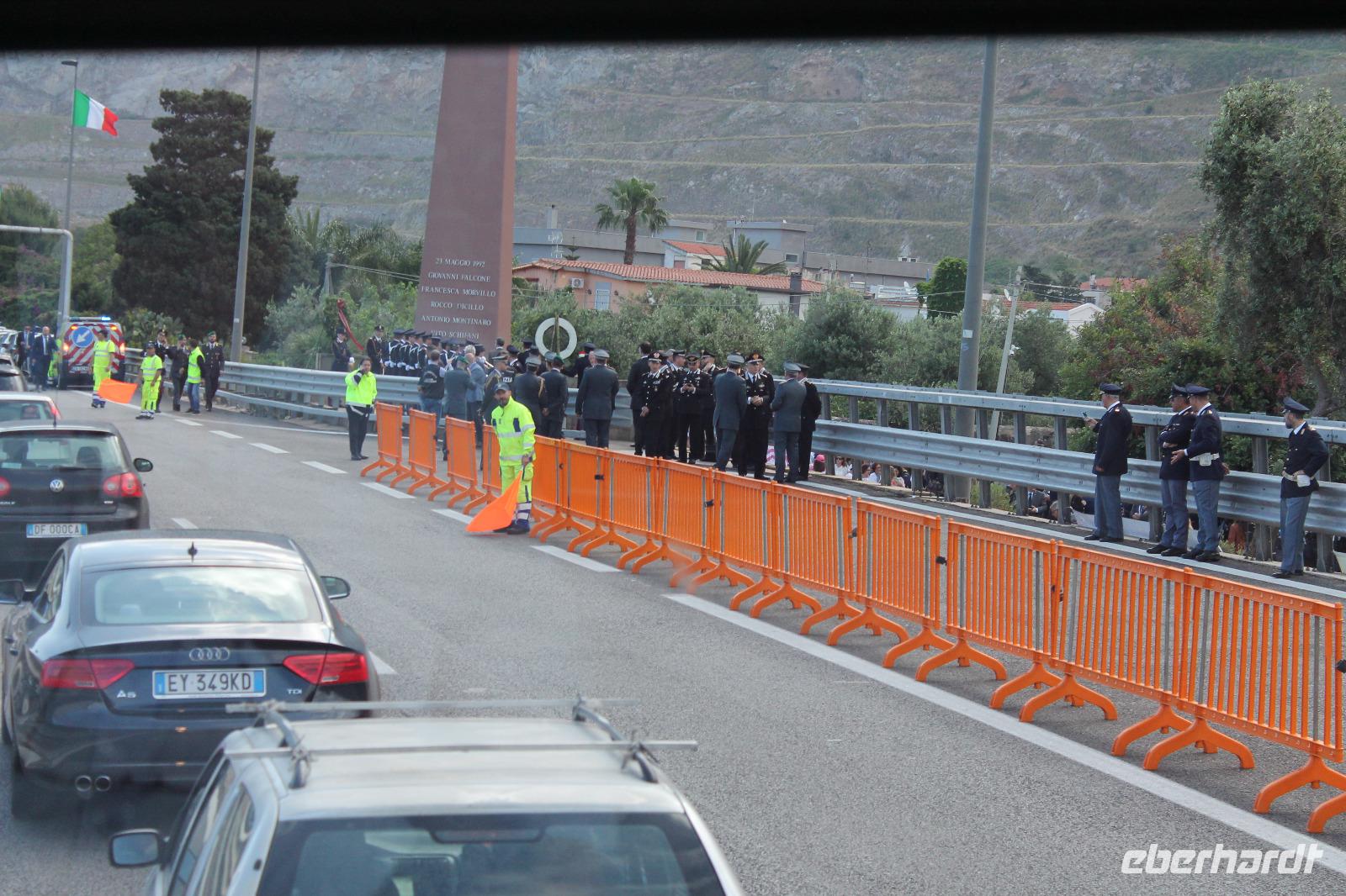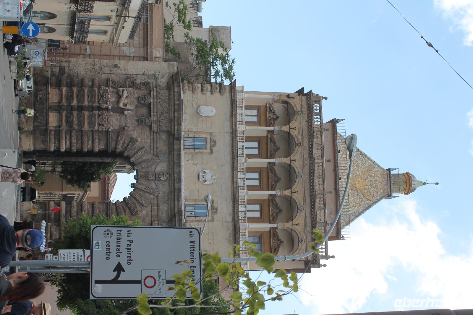 Heute fuhren wir durch das Belice-Tal nach Palermo. Vorbei an der Stadt Alcamo, die berühmt für guten Wein ist und unterhalb des Monte Bonifato liegt und entlang des tyrrhenischen Meeres, genossen wir wieder eine wunderschöne Panoramafahrt. Auf unserem Weg lag das Mahnmal von Giovanni Falcone, der von der Mafia durch einen Bombenanschlag 1992 getötet wurde. In Palermo angekommen, war der Normannenpalast unser erstes Ziel. Mit Audioguides ausgestattet, ging unsere geführte Besichtigung der Cappella Palatina los. Von Roger II. in Auftrag gegeben, war sie nicht nur schon früher ein verzaubernder Ort - auch heute werden wichtige Ereignisse wie Hochzeiten, Taufen oder normale Messen hier abgehalten. Auf eine wunderschöne Art und Weise verschmelzen hier die damals vorherrschenden Kulturen ineinander und begeistern alle Besucher mit Mosaiken aus Blattgold, Holzstalaktiten und Szenen aus dem Alten Testament sowie profanen Tätigkeiten am Hofe der Araber. Unser Spaziergang durch die Stadt begann Piazza Indipendenzia, durch das Porta Nuova, das alte Stadttor Palermos mit den riesigen Statuen der Osmanen hindurch und am Piazza Parlamente vorbei. Unser nächster Halt war die Kathedrale. Sie wurde anstelle der großen Moschee Ende des 12. Jhd. An diese Stelle gebaut. An die Moschee erinnert noch eine in kufischer Schrift eingeritzte Sure aus dem Koran. Die monumentale Kuppel der Kathedrale ließ der Architekt Ferdinando Fuga am Ende des 18. Jhd. bauen. Eine Besonderheit dieser Kuppel ist ein winziges Loch, durch das die Sonne einmal am Tag zur Mittagsstunde auf eine in den Kirchenboden eingelassene Linie trifft, auf der der Sternzeichen abgebildet sind. So hatten früher die Bewohner einmal am Tag dieselbe Uhrzeit. Renate führte uns weiter zum Piazza della Vergonia, von da aus zur Quattro Canti, die berühmte Kreuzung, die Palermo in vier Stadtteile aufteilt. An jedem der Häuser steht eine Statue einer Stadtheiligen, eine der spanischen Könige und eine der weiblichen Allegorie der Jahreszeiten. Unser Ziel war das 1875 erbaute Teatro Massimo, das drittgrößte Theater nach Paris und Wien. Von hier aus bummelten wir durch die Stadt und ershoppten ein paar Dinge. Weiter ging es nach Cefalu. In Cefalu angekommen, gingen wir noch gemeinsam bis zum Domplatz, wo uns der 1131 im Auftrag von Roger II. erbaute Dom schon erwartete. Von hier aus trennten sich vorerst wieder unsere Wege und wir genossen alle auf unsere eigene Art und Weise den Charme und den Zauber der kleinen Stadt. Müde kamen wir im Hotel in Milazzo an und freuten uns auf den nächsten Tag.