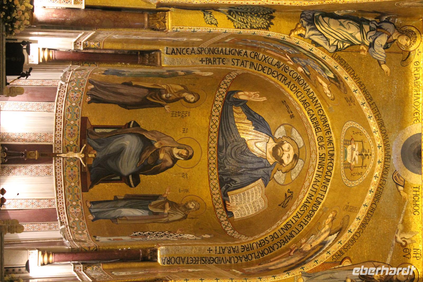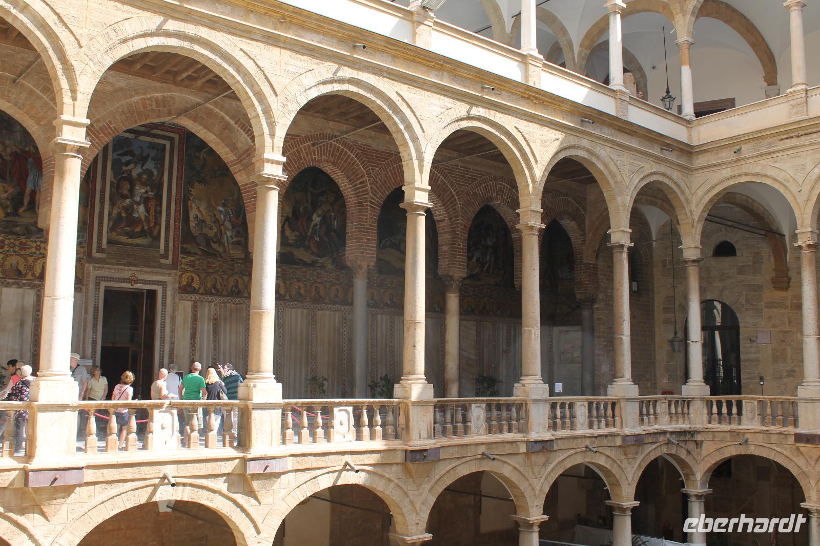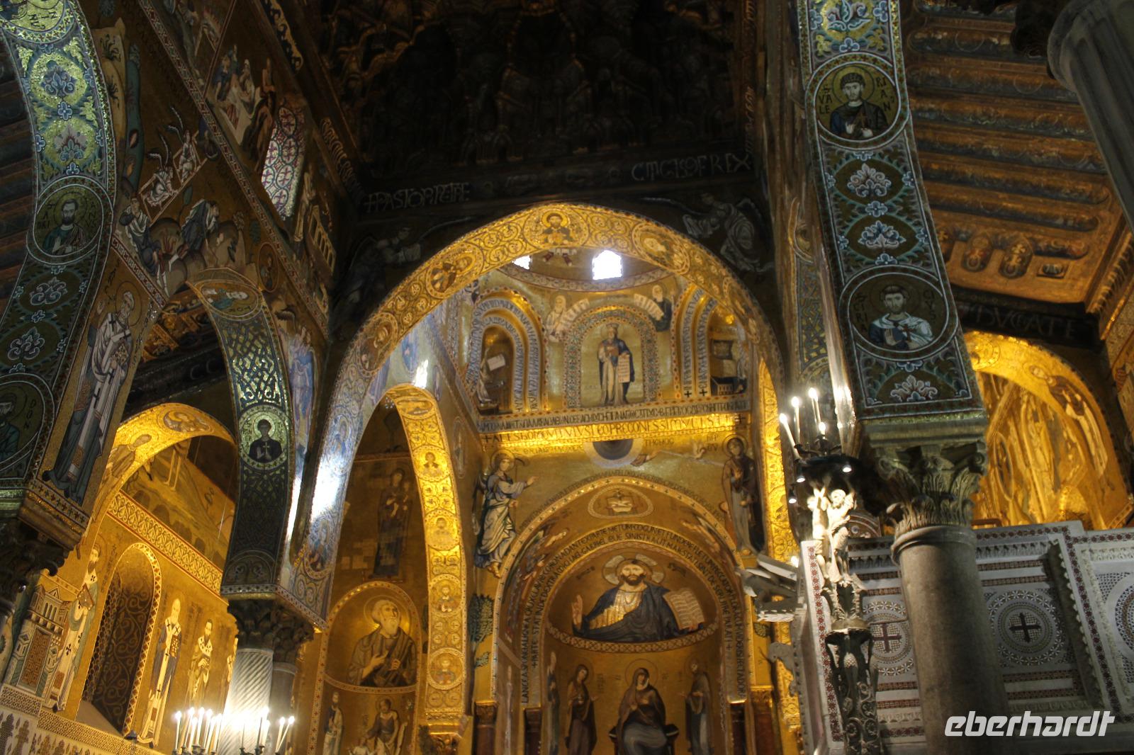 Heute fuhren wir durch das Belice-Tal nach Palermo. Vorbei an der Stadt Alcamo, die berühmt für guten Wein ist und unterhalb des Monte Bonifato liegt und entlang des tyrrhenischen Meeres, genossen wir wieder eine wunderschöne Panoramafahrt. Auf unserem Weg lag das Mahnmal von Giovanni Falcone, der von der Mafia durch einen Bombenanschlag 1992 getötet wurde. In Palermo angekommen, war der Normannenpalast unser erstes Ziel. Mit Audioguides ausgestattet, ging unsere geführte Besichtigung der Cappella Palatina los. Von Roger II. in Auftrag gegeben, war sie nicht nur schon früher ein verzaubernder Ort - auch heute werden wichtige Ereignisse wie Hochzeiten, Taufen oder normale Messen hier abgehalten. Auf eine wunderschöne Art und Weise verschmelzen hier die damals vorherrschenden Kulturen ineinander und begeistern alle Besucher mit Mosaiken aus Blattgold, Holzstalaktiten und Szenen aus dem Alten Testament sowie profanen Tätigkeiten am Hofe der Araber. Unser Spaziergang durch die Stadt begann Piazza Indipendenzia, durch das Porta Nuova, das alte Stadttor Palermos mit den riesigen Statuen der Osmanen hindurch und am Piazza Parlamente vorbei. Unser nächster Halt war die Kathedrale. Sie wurde anstelle der großen Moschee Ende des 12. Jhd. An diese Stelle gebaut. An die Moschee erinnert noch eine in kufischer Schrift eingeritzte Sure aus dem Koran. Die monumentale Kuppel der Kathedrale ließ der Architekt Ferdinando Fuga am Ende des 18. Jhd. bauen. Eine Besonderheit dieser Kuppel ist ein winziges Loch, durch das die Sonne einmal am Tag zur Mittagsstunde auf eine in den Kirchenboden eingelassene Linie trifft, auf der der Sternzeichen abgebildet sind. So hatten früher die Bewohner einmal am Tag dieselbe Uhrzeit. Renate führte uns weiter zum Piazza della Vergonia, von da aus zur Quattro Canti, die berühmte Kreuzung, die Palermo in vier Stadtteile aufteilt. An jedem der Häuser steht eine Statue einer Stadtheiligen, eine der spanischen Könige und eine der weiblichen Allegorie der Jahreszeiten. Unser Ziel war das 1875 erbaute Teatro Massimo, das drittgrößte Theater nach Paris und Wien. Von hier aus bummelten wir durch die Stadt und ershoppten ein paar Dinge. Weiter ging es nach Cefalu. In Cefalu angekommen, gingen wir noch gemeinsam bis zum Domplatz, wo uns der 1131 im Auftrag von Roger II. erbaute Dom schon erwartete. Von hier aus trennten sich vorerst wieder unsere Wege und wir genossen alle auf unsere eigene Art und Weise den Charme und den Zauber der kleinen Stadt. Müde kamen wir im Hotel in Milazzo an und freuten uns auf den nächsten Tag.