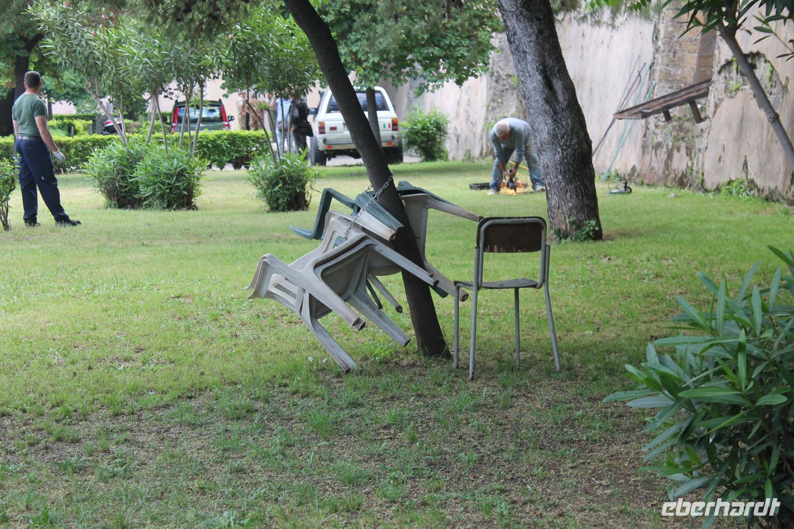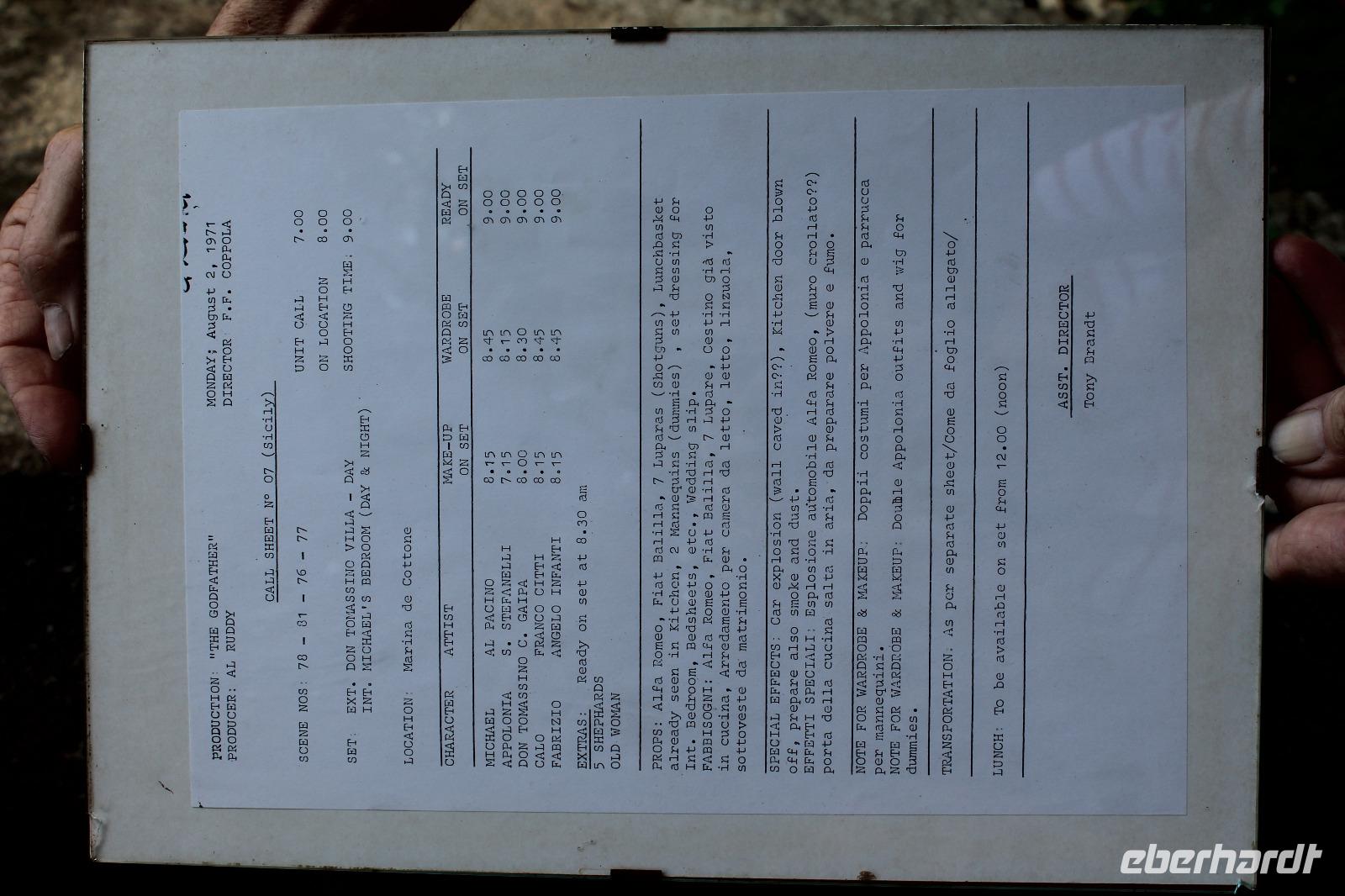 Zum letzten fakultativen Ausflug dieser Reise, besuchten wir mit unserer 10 Mann starken Gruppe den Baron, auf dessen Gut einige Szenen des Paten gedreht wurden. Voller Stolz zeigte er uns sein Anwesen und präsentierte uns viele Fotos und Requisiten, die er von den Dreharbeiten aufgehoben hatte. Nicht nur das tat er mit voller Begeisterung. Abgesehen davon, dass er unserer Gruppe voller Elan alles zeigte, fotografierte er mich, als junge Blondine all zu gern. Ich musste an allen möglichen Orten posieren und immer nahm er meine Kamera, um mich abzulichten. Er hat sich sehr gefreut. :-) Die Reisegruppe scherzte schon, dass bald ein 3. Teil des Paten rauskommt - „Kathrin und der Baron" - oder ähnlich.