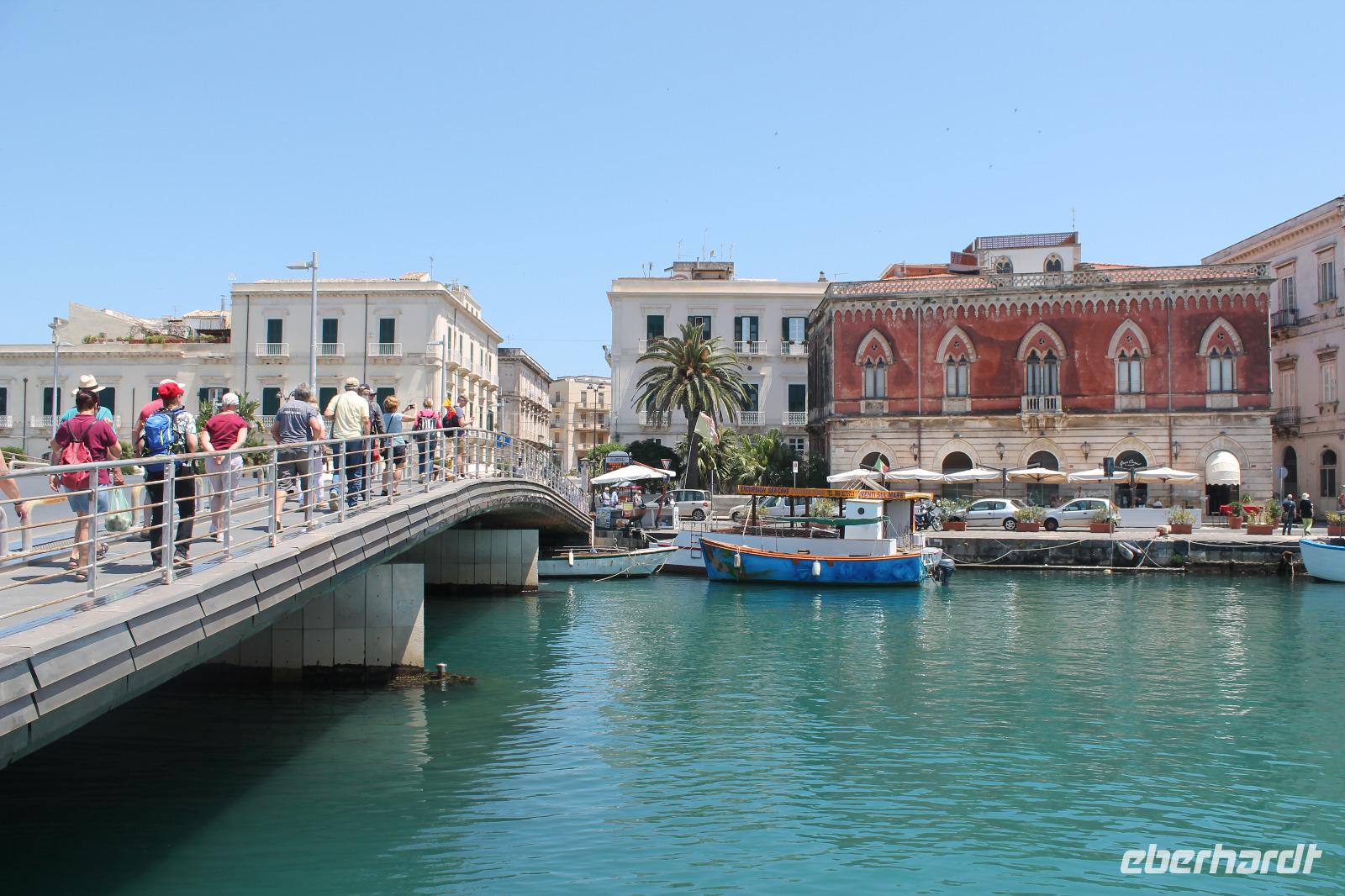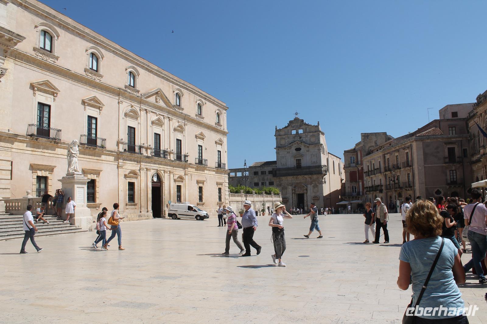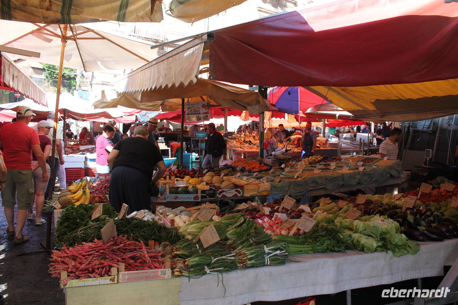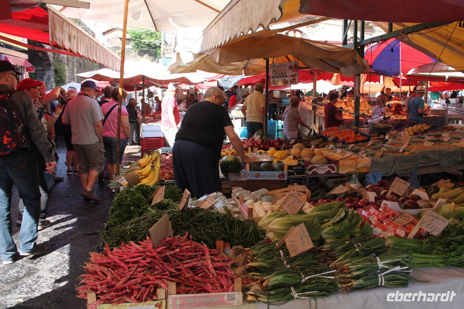 Nachdem sich die ganze Gruppe dazu entschlossen hatte diesen Ausflug mitzumachen, freuten wir uns gemeinsam auf den Tag. Wir lernten Juliane kennen, die uns auf den letzten beiden Ausflügen begleiten sollte. In Catania angekommen, spazierten wir zum Piazza Duomo, dem Domplatz und sahen sofort das Wahrzeichen der Stadt - den Elefantenbrunnen. Wir besichtigten den Dom von innen. Anschließend gingen wir weiter über den berühmten Fischmarkt bis zur Burg. Wir erfuhren allerhand über die Geschichte Siziliens oder auch den Schmelztiegel der Völker und Kulturen. Unteranderem auch, dass die Stadt Syrakus damals selbst dem Einmarsch der Römer standhielt. Normannen, Araber, auch Franzosen regierten die Insel, bis sie nach dem zweiten Weltkrieg eine unabhängige Region wurde und auch ein eigenes Parlament bekam. Syrakus, eher Ortigia, ist berühmt für die Süßwasserquelle, in der Papyrus wächst. Doch auch ein sehr berühmter Mann stammt aus dieser Stadt - Archimedes. Von ihm sahen wir bei einem Spaziergang durch die Stadt eine Statue und erfuhren mehr über sein Ableben. In Ortigia befindet sich auch der am besten erhaltene Altar Siziliens. Unsere Reise führte uns weiter zu den archäologischen Gärten, wo wir das Theater des Dionysos sowie „das Ohr" des selbigen betrachteten. Das Theater wurde in einen Hang aus Felsen hineingeschlagen und wurde, nachdem es keinem musikalischen Zweck mehr dienen sollte, von den Spaniern zu einer Mühle umfunktioniert. Im Latomine del Inferno, gingen wir in das Ohr des Dionysos. Caravagio benannte die Höhle so, da Sie wie ein Ohr geformt ist und eine hervorragende Akustik hat. In der Grotta di Cordari, arbeiteten früher die Seilmacher. Sie machten sich die feuchte Luft der Grotte zunutze, da die Feuchtigkeit die Arbeit erleichterte. Mit vielen fantastischen Eindrücken neigte sich dieser Tag dem Ende zu.