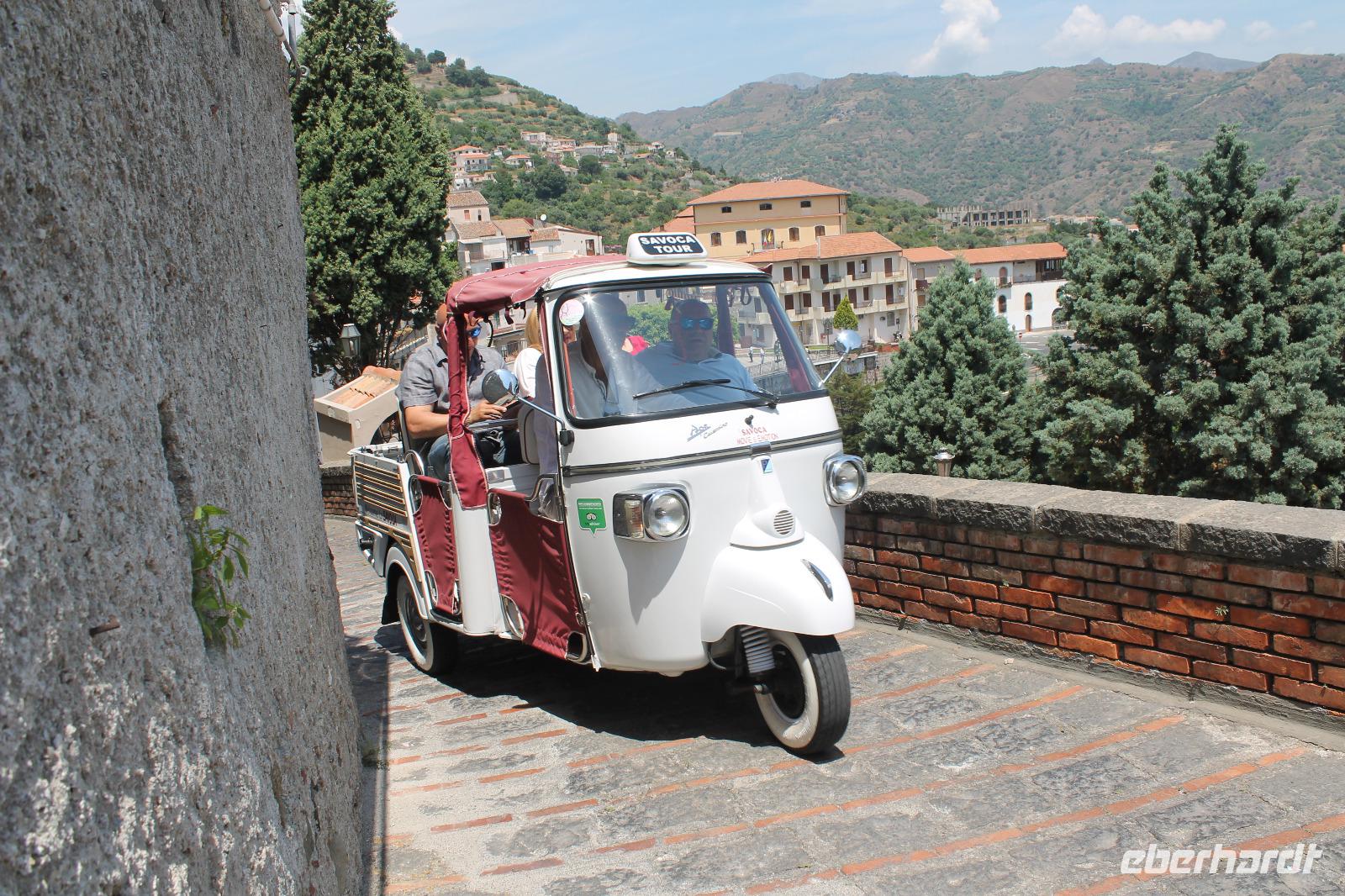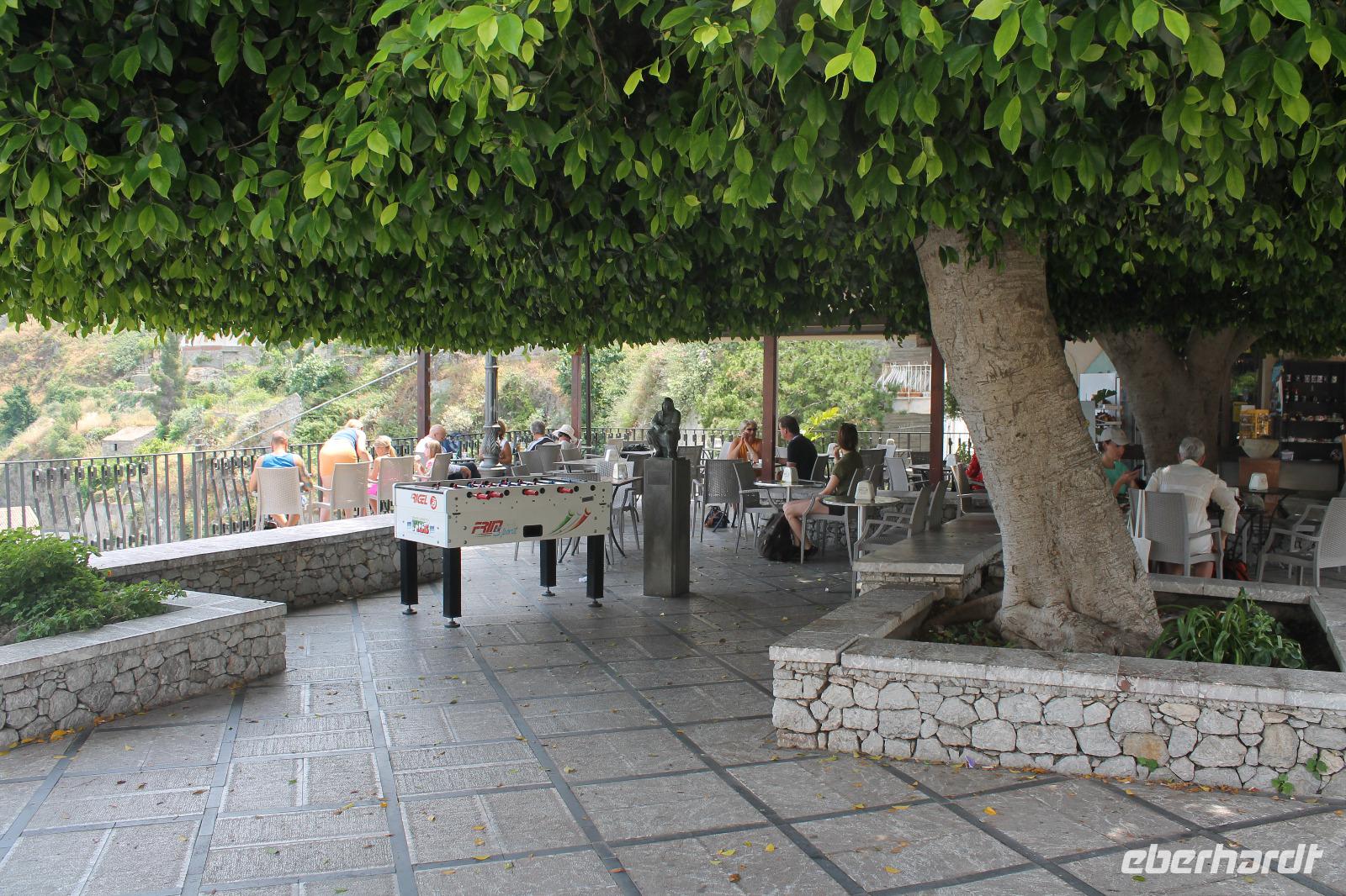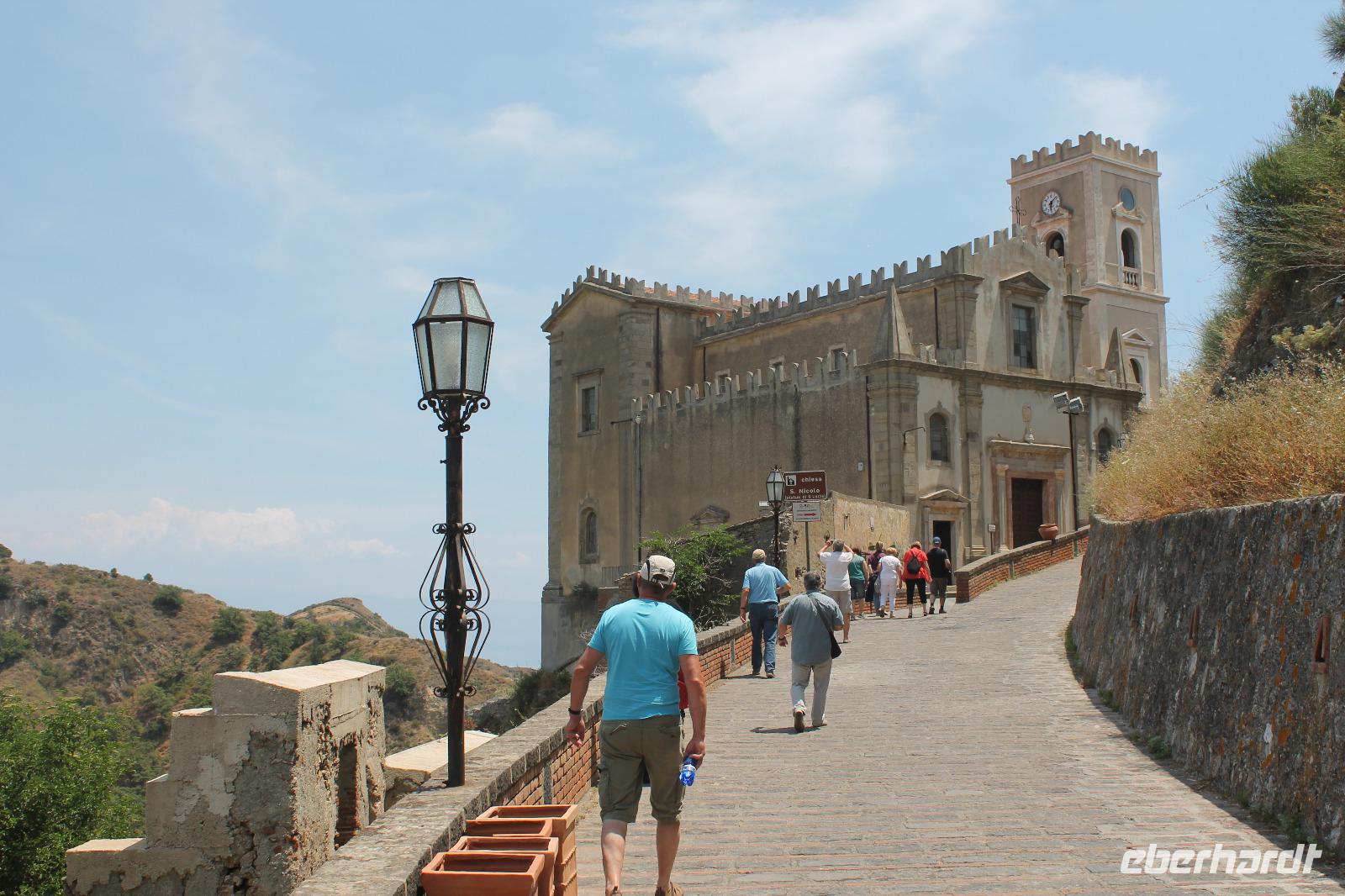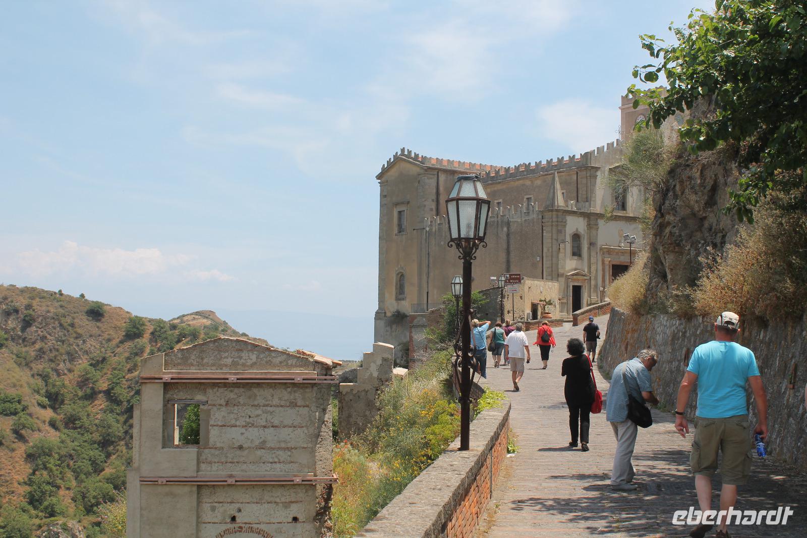 Weiter ging es nach Savoca und Forza d´Agro. Wir kamen in die kleine gemütliche Taverne, in der auch wichtige Szenen gedreht wurden. Nach einer kleinen Pause fuhren wir weiter in die nächste Bergstadt und besuchten die Kirche der Dreifaltigkeit. Anschließend fuhren wir entlang der Panoramastraße unterhalb Taorminas zurück.