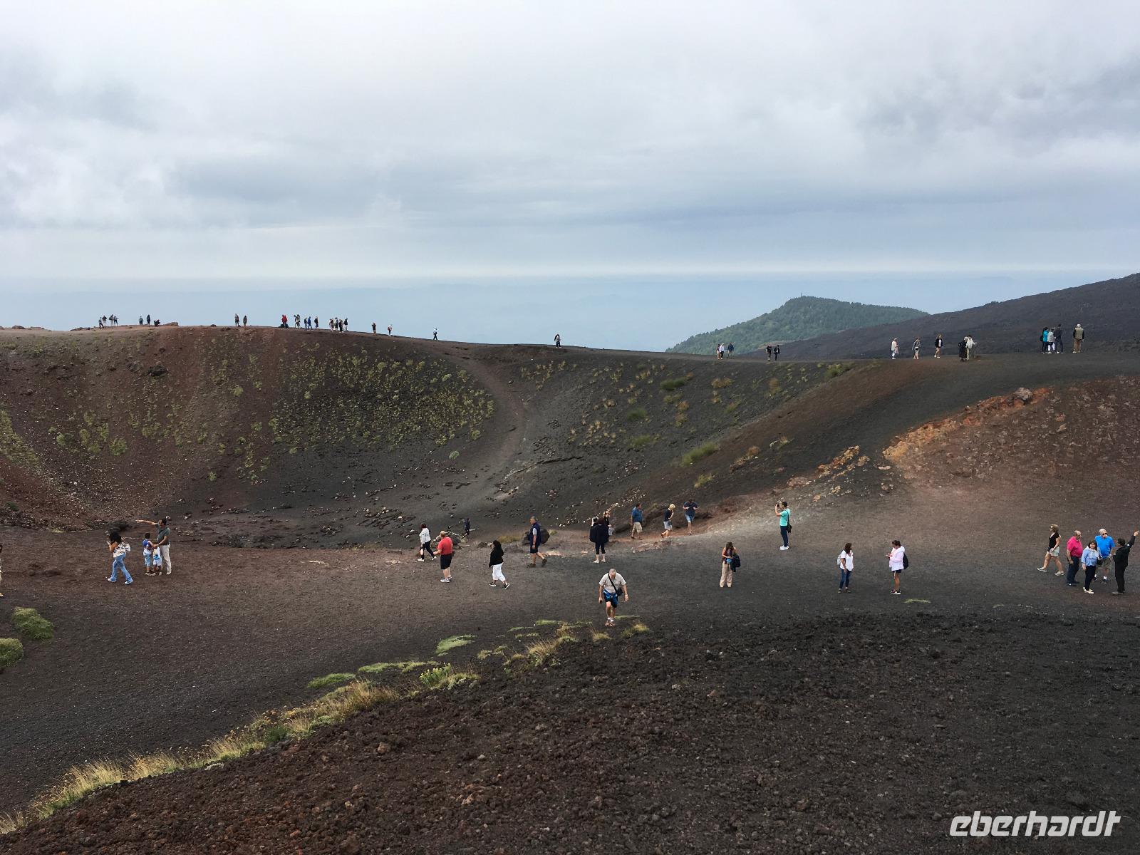 Heute unternehmen wir einen ersten Ausflug auf Sizilien und gleich am Anfang steht ein Höhepunkt auf unserem Programm. Der größte, noch aktive Vulkans Europas, der Ätna mit einer Höhe von knapp 3.350 Metern. Vor einigen Tagen gab es hier noch kleine Ausbrüche und Rauchwolken, sodass wir schon fast Angst haben, gar nicht bis an die Spitzen fahren dürfen. Mit dem Bus geht es die kurvenreiche Straße entlang des Südhanges bis auf 2.000 Meter. Und wir haben Glück, die Seilbahnen und auch die Jeeps fahren bis zu knapp 3.000 Metern, sodass unsere Entdeckungen nichts im Wege steht. Am Gipfel erwartet uns eine kleine Kälte, ein Wind und ganz viele Lava Gesteine. Wir spazieren entlang des Kraters, versuchen nicht weg zu fliegen und sind voller Begeisterung den Ätna so hautnah kennen lernen zu dürfen.