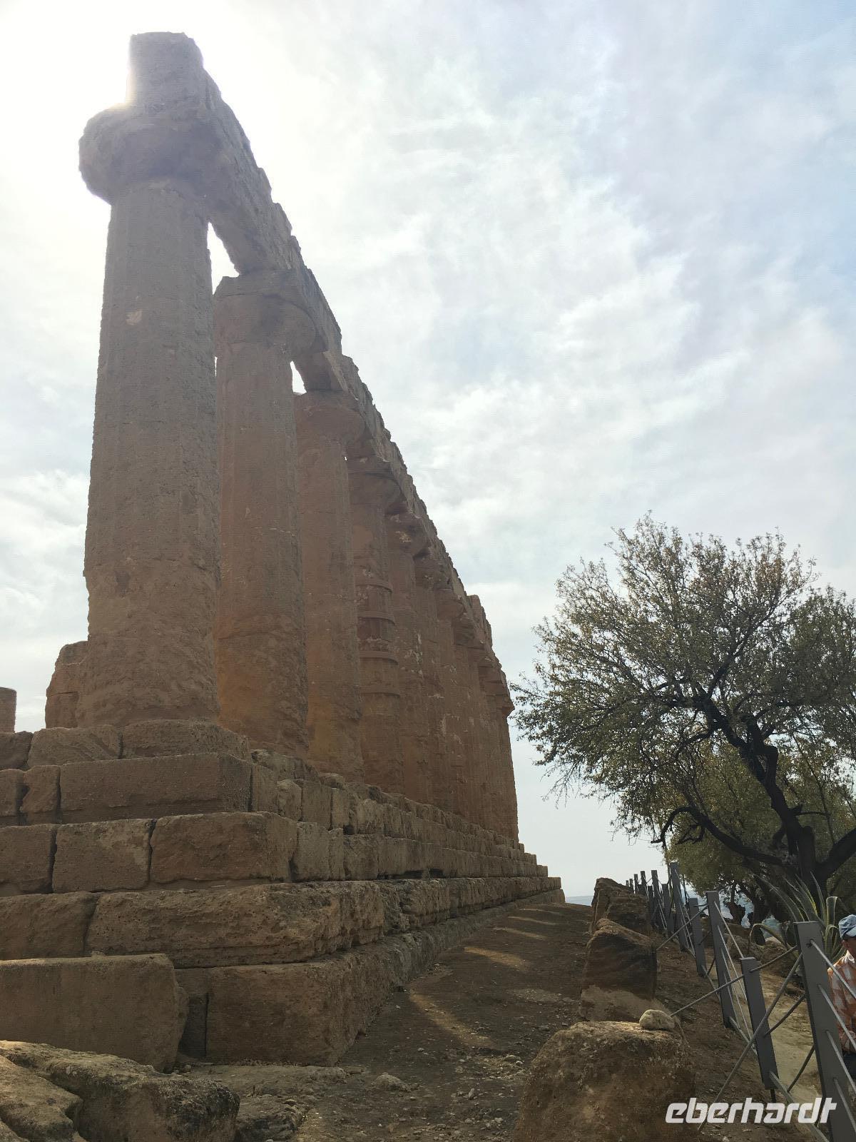 Nach einer Mittagspause machen wir uns weiter auf den Weg in Richtung Westen, nach Agrigent. Das Tal der Tempel, auch wenn es gar nicht im Tal liegt, erwartet uns mit noch drei sehr gut erhaltenden Tempeln. Der Tempel der Hera, der Concordia und der Herakles faszinieren uns. Wir spazieren durch den doch sehr großen Park, entdecken die Oliven- und Mandelbäume links und rechts des Wegesrandes und sind begeistert von den eigentlich doch sehr langweiligen Steinen. Im Anschluss fahren wir weiter nach Castelvetrano, wo wir für die nächsten 2 Nächte auf einem sehr urigen Agriturismo übernachten. Bei einem tollen Abendessen lassen wir den Tag gemütlich ausklingen.