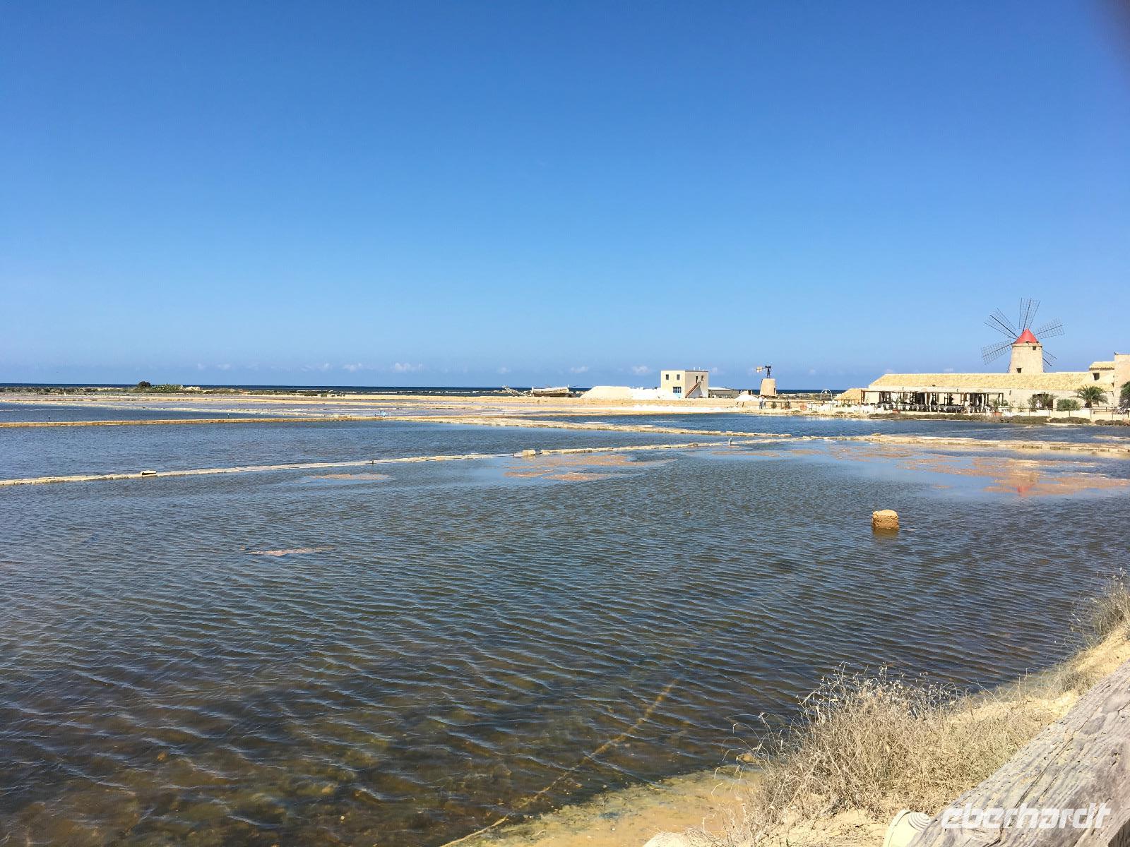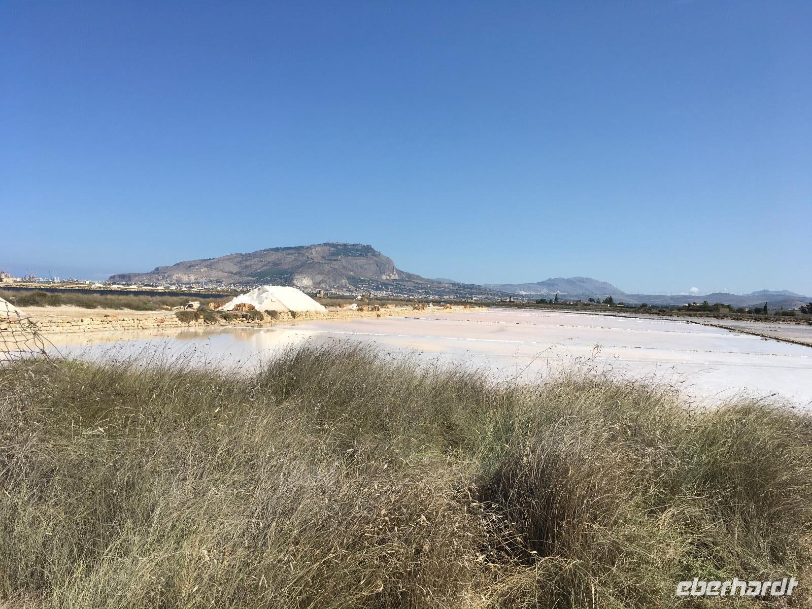 Auf unserer Weiterfahrt nach Trapani lernen wir etwas über den Anbau des Weines und der Oliven, durch dessen Felder wir gerade fahren. Zum Mittagessen werden wir bei den Salinen von Marsala erwartet. Die Salzherstellung spielt hier im Westen der Insel noch heute eine wichtige Rolle und die großen Salz-Felder faszinieren uns. In einem schönen Lokal mit grandiosem Ausblick auf die Salinen Felder essen wir zu Mittag.