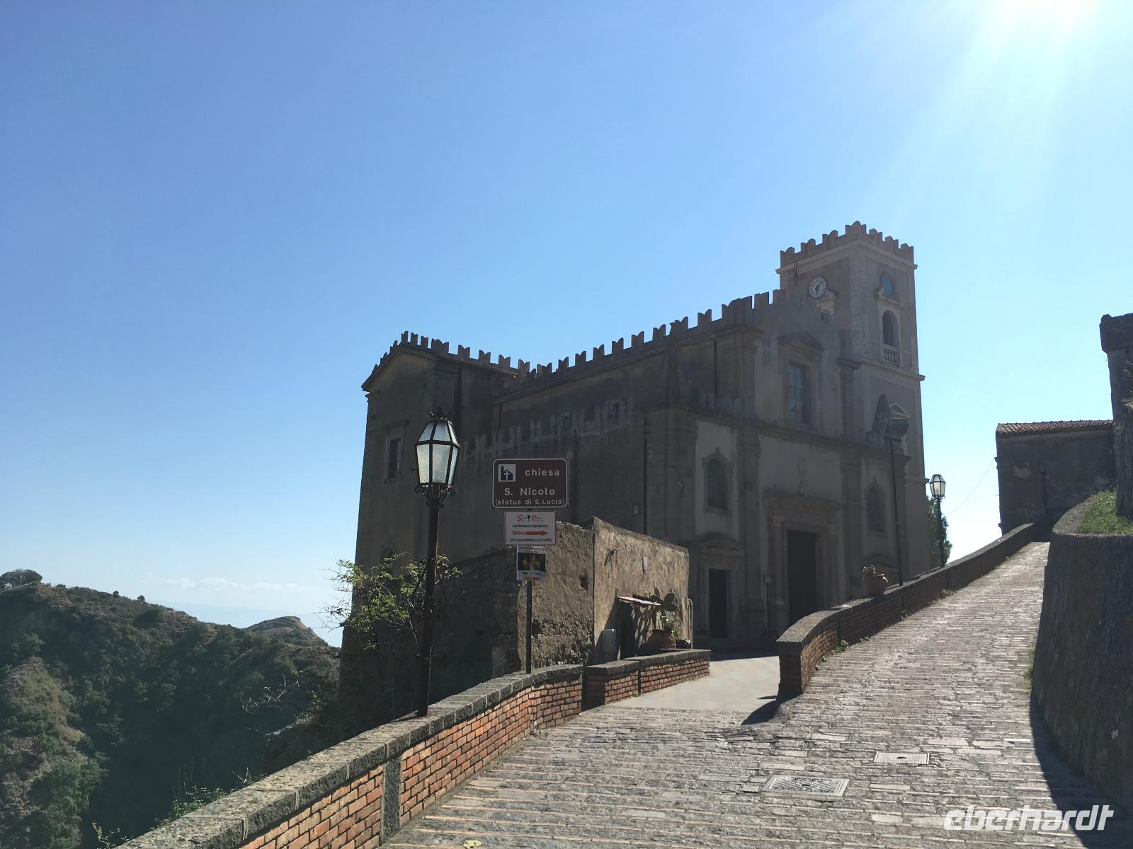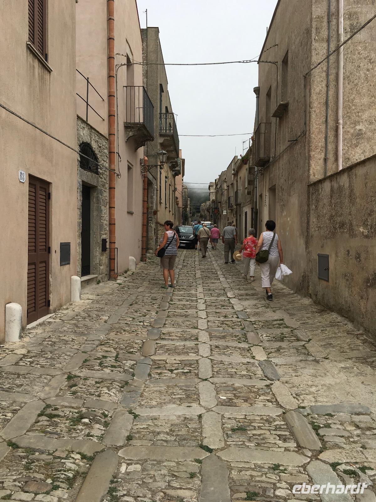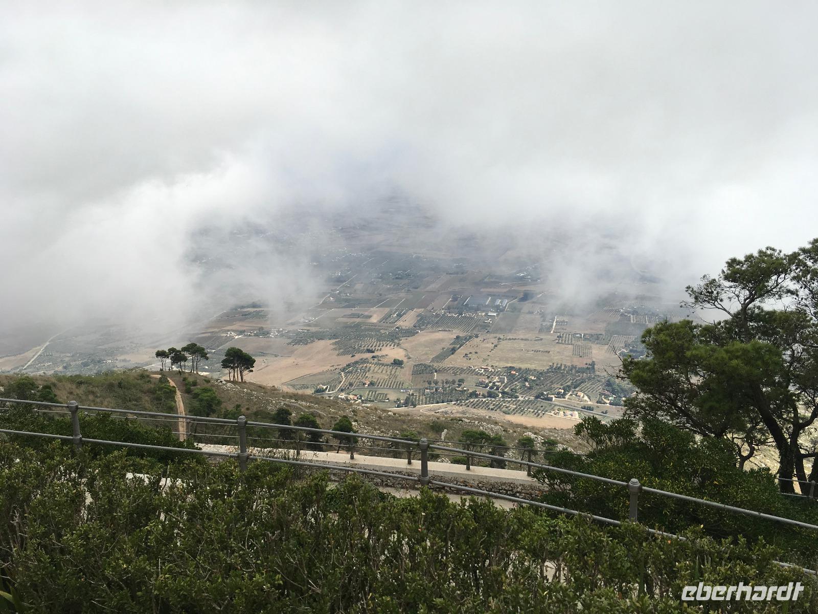 Im Anschluss fahren wir auf den Monte Erice, von wo aus man einen tollen Blick auf das Umland haben soll. Oben angekommen unternehmen wir einen Rundgang zum Dom, durch die kleinen Straßen, zur Burg von Erice und zu Maria Grammatico. Unser wundervoll Ausblick wird uns leider jedoch verwehr, da gerade in diesem Moment eine Wolke den Berg passieren möchte und wir nur noch Wolken und Nebel sehen. Anstatt die Dörfer und das Meer beobachten zu können, spazieren wir heute halt mal durch eine Wolke in 800 Metern Höhe ;)
