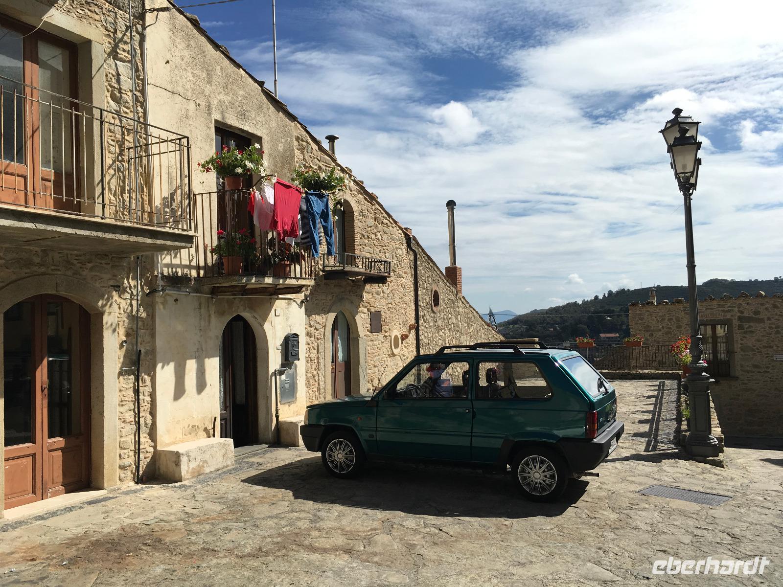 Heute ist leider schon unser letzter Tag mit Christiane und Rosario. Wir starten in Milazzo und fahren in Richtung Nebrodi Gebirge. Unser erster Stopp ist das malerische Örtchen Montalbano. Im Jahr 2015 wurde das Dörfchen mit dem Titel „schönstes Dorf Italiens" ausgezeichnet. So begeben wir uns auf Entdeckungstour. Kleine Gässchen, Wappen an den Häusern, leckeres Gebäck im Cafe und viele enge Straßen faszinieren uns. Aber auch die Burg von Ferdinand III mit der tollen Aussicht auf die Landschaft hat uns überzeugt.