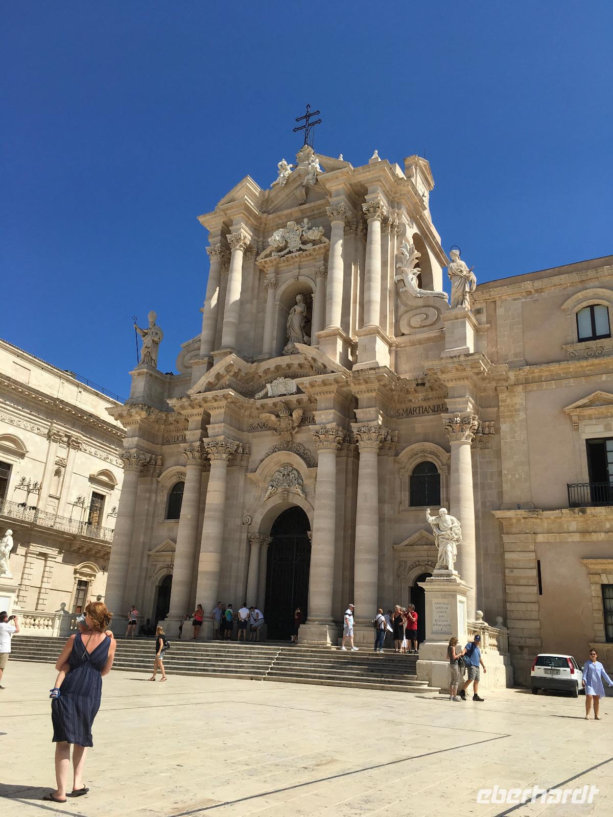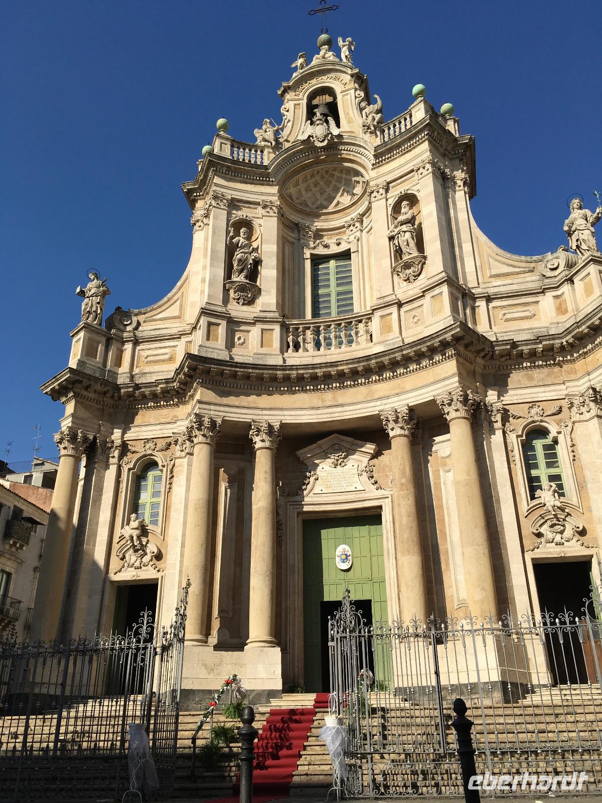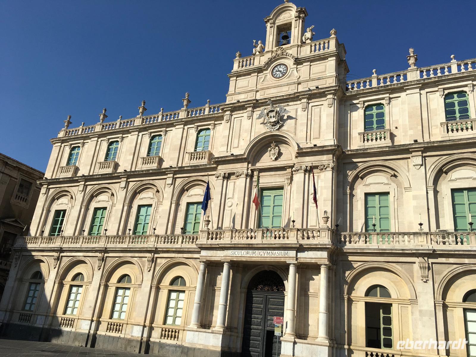Heute ist unser erster, fakultativer Ausflug gekommen und der Großteil der Gruppe begleitet mich nach Catania und Syrakus. Mit unsere heutigen Reiseleiterin Domenica und einen neuen Bus starten wir am Morgen in Richtung Catania, die Stadt welche am Südrand des Ätnas gelegen ist. Wir starten bei ein paar Überresten von Gebäuden vor dem 17 Jahrhundert, die von einer gewaltigen Lavadecke überschüttet wurde und nach Ausgrabungen nun wieder frei zugänglich sind. Über die Via Etnea geht es zur Universität der Stadt Catania und zum berühmten Piazza Duomo. In der Mitte des Platzt können wir den aus Ätna Gestein bestehenden Elefanten Brunnen bestaunen. Hier befindet sich auch die Kathedrale von Cataina, welche wir uns natürlich auch von Innen anschauen wollen. Bei einer Freizeit können wir über den berühmten Fischmarkt schlendern, das Treiben auf dem Markt beobachten oder einfach ein Espresso in einem Café trinken.