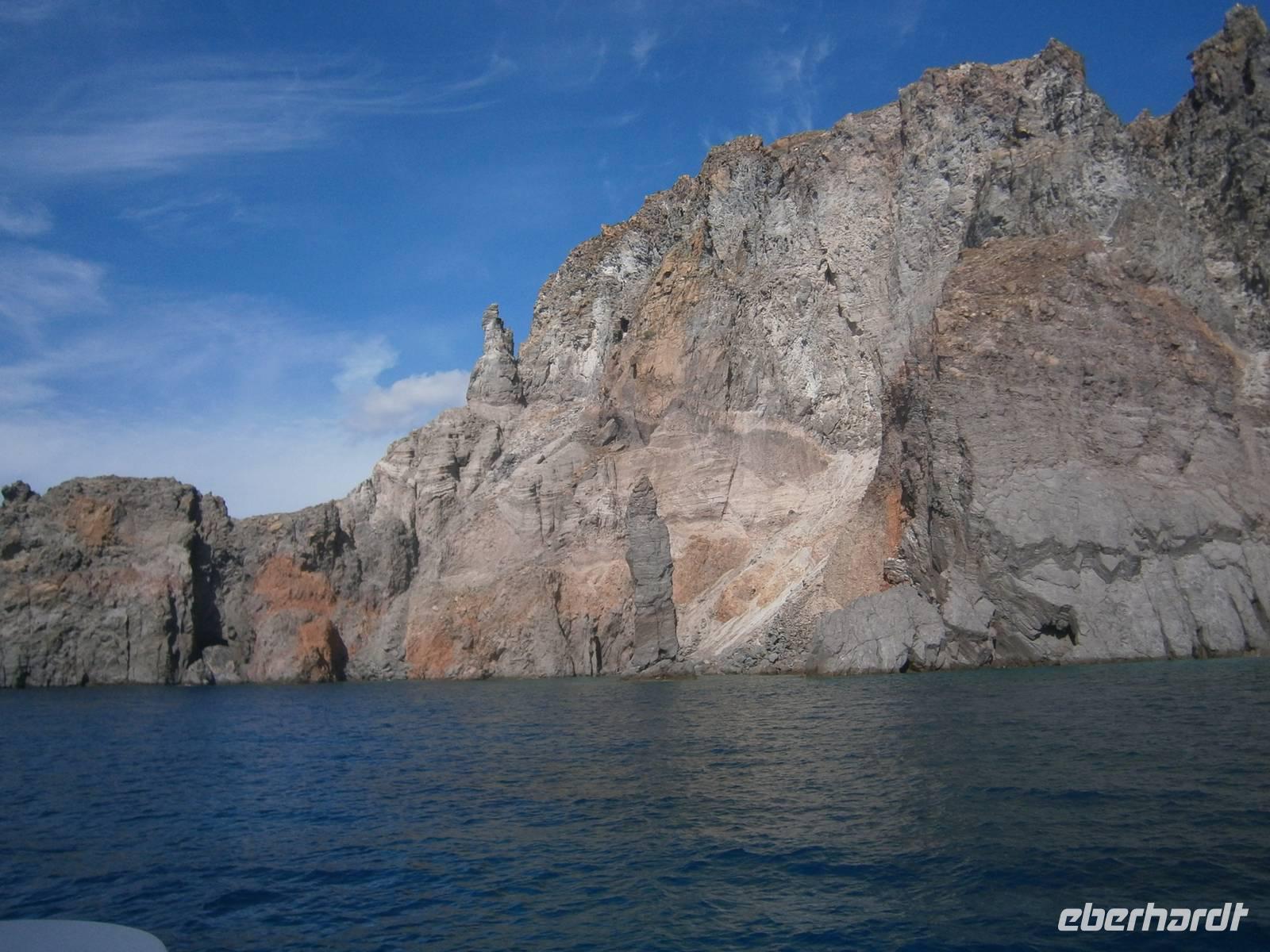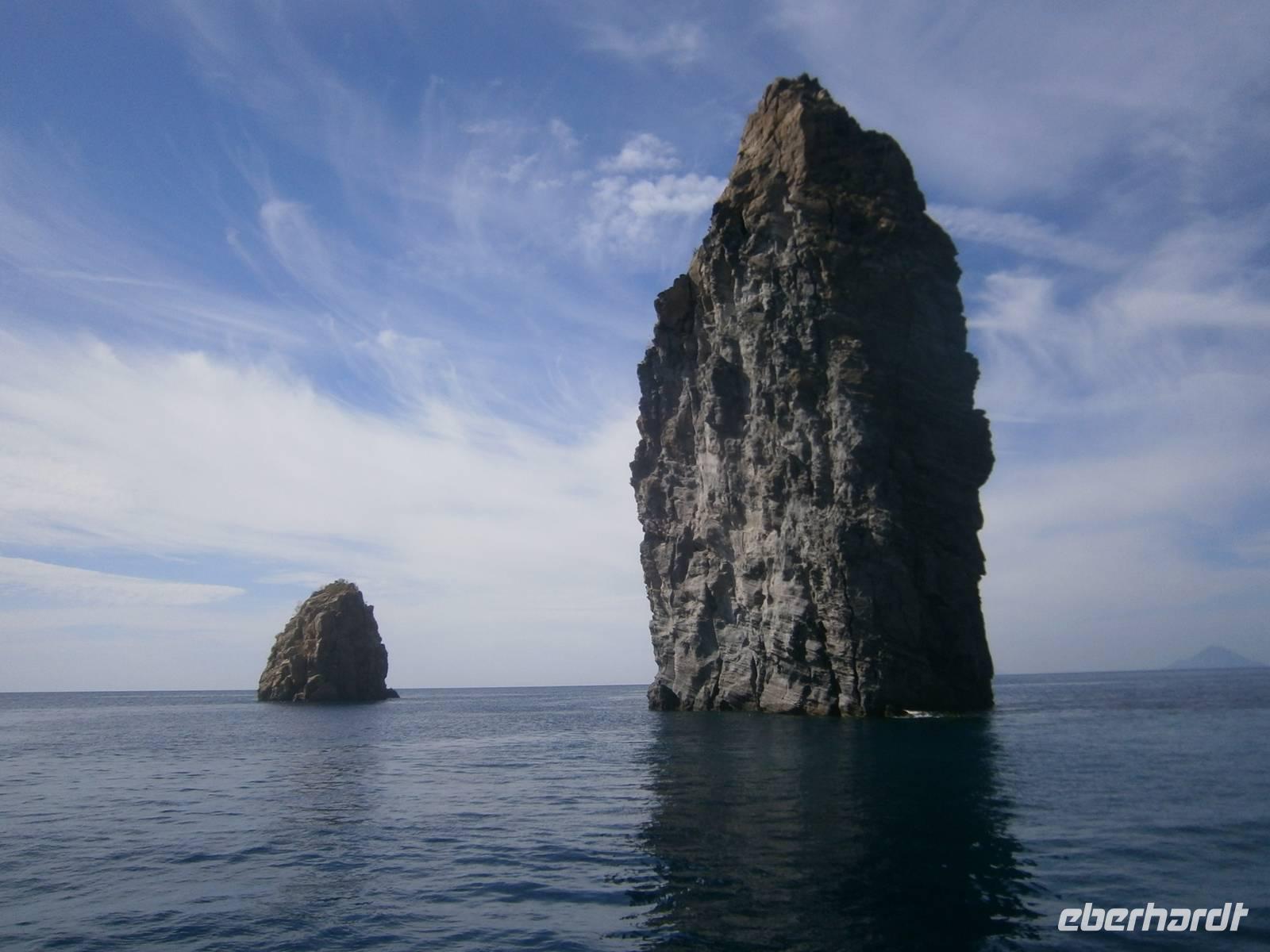 Auf Lipari unternehmen wir einen Spaziergang durch die Altstadt und erreichen auch den Burgberg mit der Burganlage aus dem 16. Jahrhundert und die Kathedrale San Bartolomeo. Bevor wir mit unserem Schiff auf die Nachbarinsel Vulcano fahren bleibt unseren Gästen noch Zeit die kleine Hafenstadt selbst zu entdecken. Besonderes Augenmerk legt man in den Souveniergeschäften auf den Verkauf von Kapern. Lipari, vulkanischen Ursprungs bildet beste Voraussetzungen für den Anbau von Kapern. Selbst an Mauern finden die Pflanzen ideale Bedingungen für das Wachstum. Vom Hafen, von Lipari aus bringt uns unser Schiff zur nächsten Insel, nach Vulcano. Doch bevor wir dort anlegen dreht unser Kapitän noch eine Extrarunde zu den berühmten Faraglionifeslen vor der Küste von Lipari.
