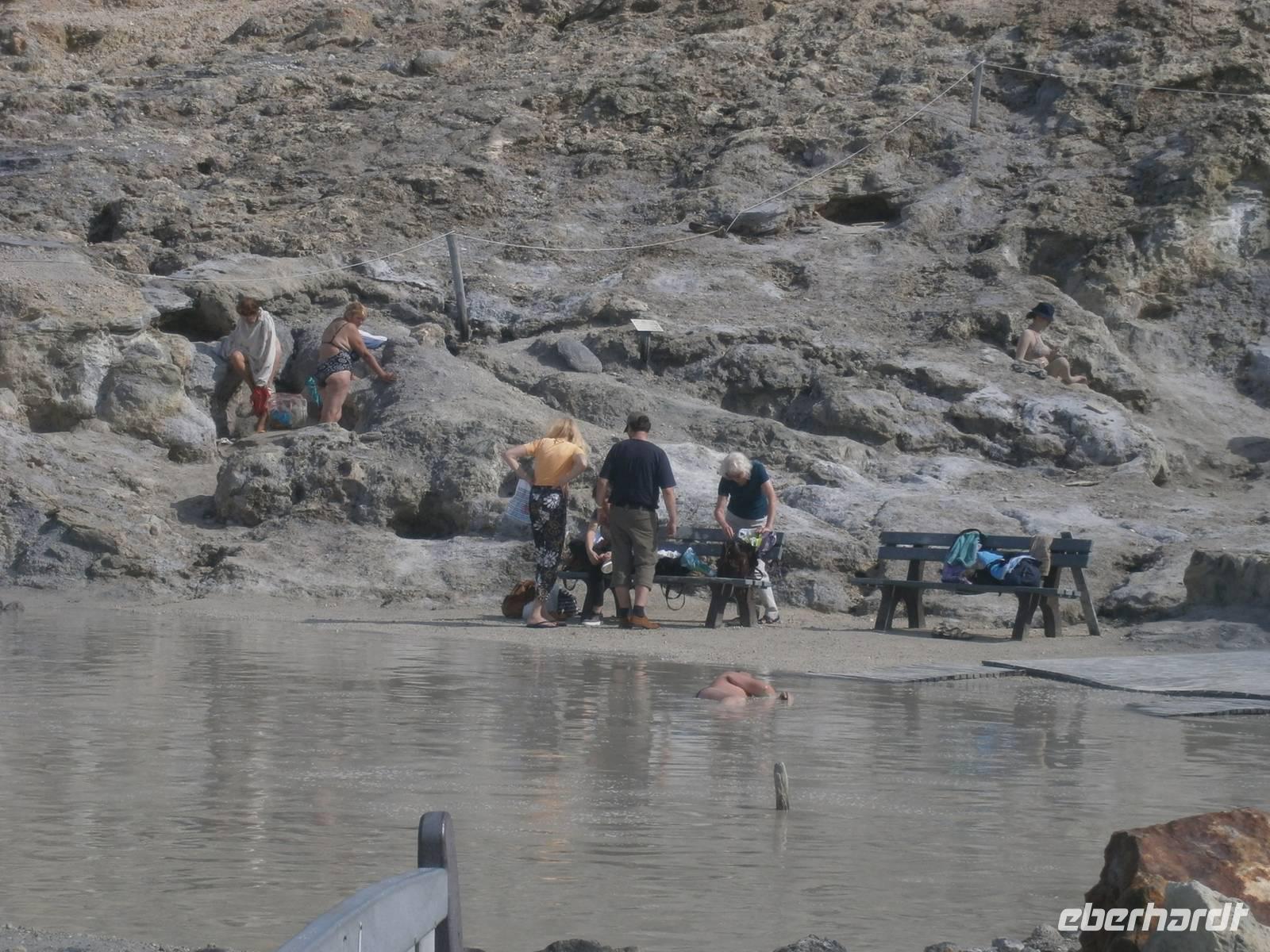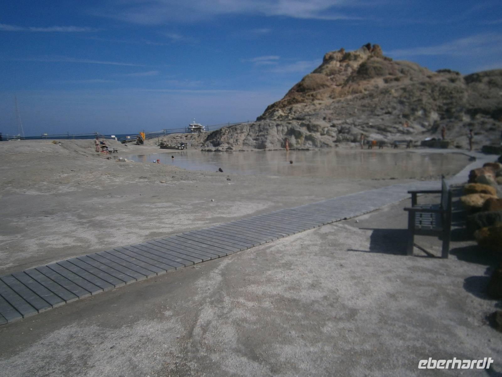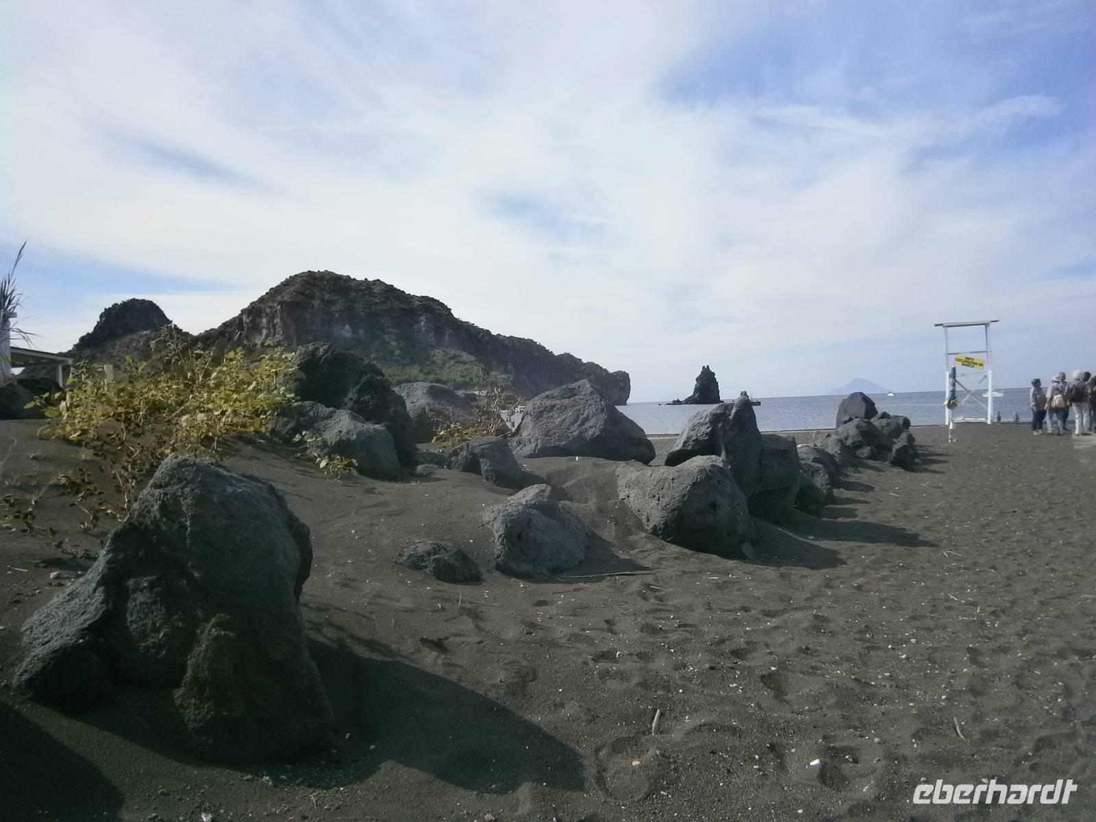Die Insel Lipari ist die drittgrößte der Äolischen Inseln und das Landschaftsbild ist unter anderem geprägt durch Fumarolen. Ein besonderer Anziehungspunkt für die Besucher der Insel ist das „Schwefelbad" oder auch „Schlammpool". Der Besuch dieses Pools soll Heilung bringen bei Hautkrankheiten, Rheumatismus und Arthritis. Einige unserer Gäste gehen an diesem Mittag sprichwörtlich „baden" , auch am sogenannten „Schwarzen Strand".