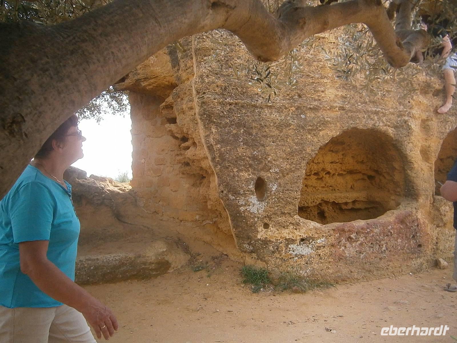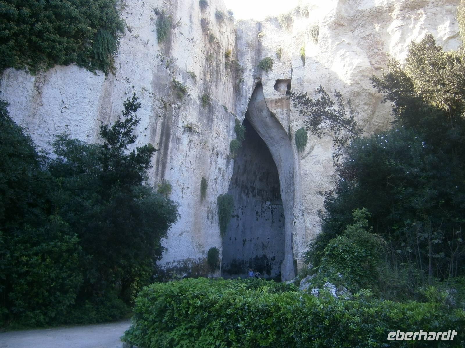 Gemeinsam mit Pia spazieren wir durch die archäologische Ausgrabungsstätte. Wir sehen das Teatro Greco - früher fanden bis zu 15 000 Menschen Platz auf den Stufen des Theaters. Es zählt zu den schönsten der antiken Zeit. Hat man doch von hier den Ausblick auf das Meer. Von Pia erfahren wir auch das diese großartige Kulisse in den Sommermonaten genutzt wird für Theatervorführungen. Eine besondere Attraktion ist die Grotte „.Oricchette Dyonios". Die Grotte ist ein akustisches Wunder, selbst das leise Flüstern ist hörbar. Der Sage nach nutzte Dyoniseus dieses Phänomän aus um seine Gefangen zu belauschen.