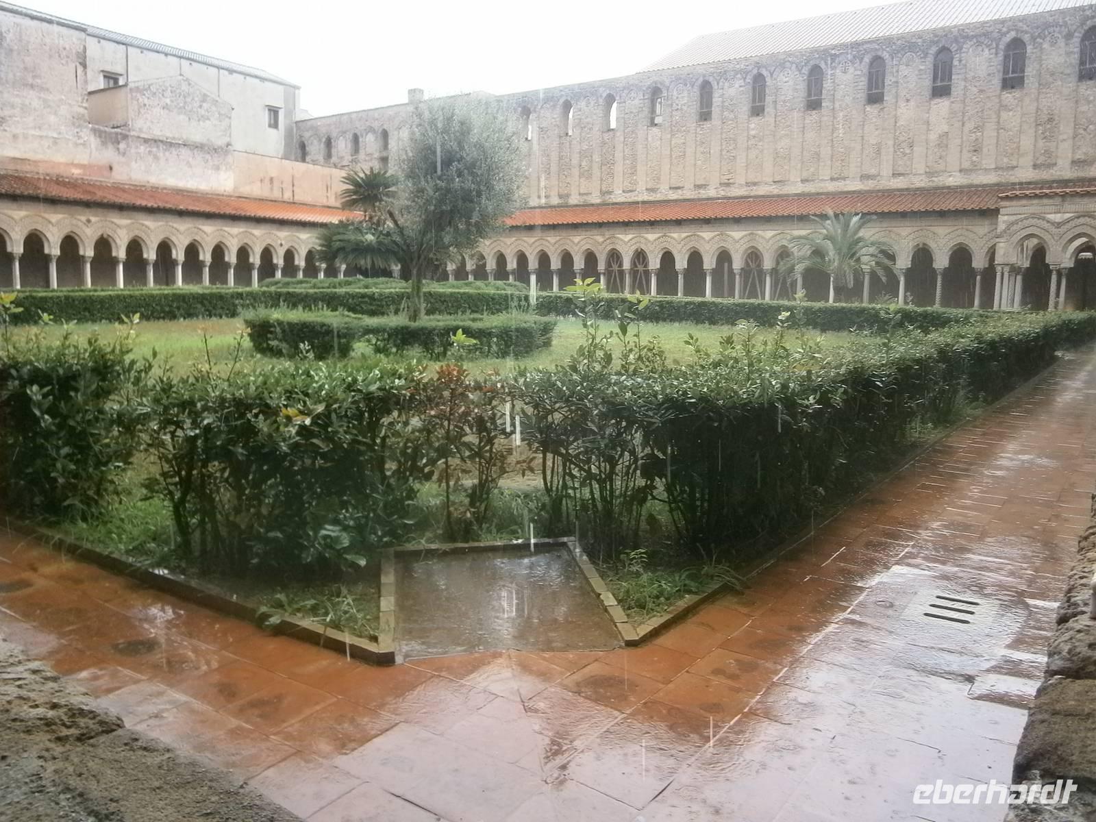 Auf unserem Programm steht die Besichtigung des Domes von Monreale und der Besuch der sizilianischen Hauptstadt Palermo. Wir Treffen uns mit Mauro, unserem örtlichen Gästeführer und gemeinsam fahren wir hinauf zum Dom. Der Dom von Monreale ist der größte geschlossene Sakralbau seiner Zeit. Bronzetüren führen in das Innere, dessen Wände fast vollständig mit Goldmosaiken bedeckt sind, die die Geschichte aus dem alten und neuen Testament erzählen. Er vereint byzantinische Kultur, arabische Architektur und normannische Linien. Unmittelbar neben dem Dom befindet sich der Kreuzgang. Er ist der einzige Rest des zum Dom gehörenden Klosters. Die Säulen des Kreuzganges sind unterschiedlich gestaltet. Die einen sind schlicht und einfach, andere wiederum sind reich verziert mit Mosaikeinlegearbeiten. Von Monreale aus fahren wir mit unserem Bus in die sizilianische Hauptstadt. Palermo liegt in der sogenannten goldenen Muschel - Conca d'Oro. Während unseres Aufenthaltes besichtigen wir die Capella Palatina. Sie war die Hofkapelle und wurde von byzantinischen, normannischen und arabischen Künsterln gebaut. Im Innern ist sie vollständig mit Goldmosaiken und Steinintarsien ausgekleidet. Im Altarraum steht der reich geschmückte Königsthron von Roger II. Ein weiterer Höhepunkt ist die Besichtigung des Doms von Palermo. Aus der Gründungszeit, 12. Jahrhundert stammen nur noch die Ausmaße der Kirche und der Chor. Die Kuppel und auch das Innere der Kirche sind nachfolgende Arbeiten aus dem 18. Jahrhundert. Im Inneren des Doms befinden sich unter anderem das Grabmal von Friedrich II.