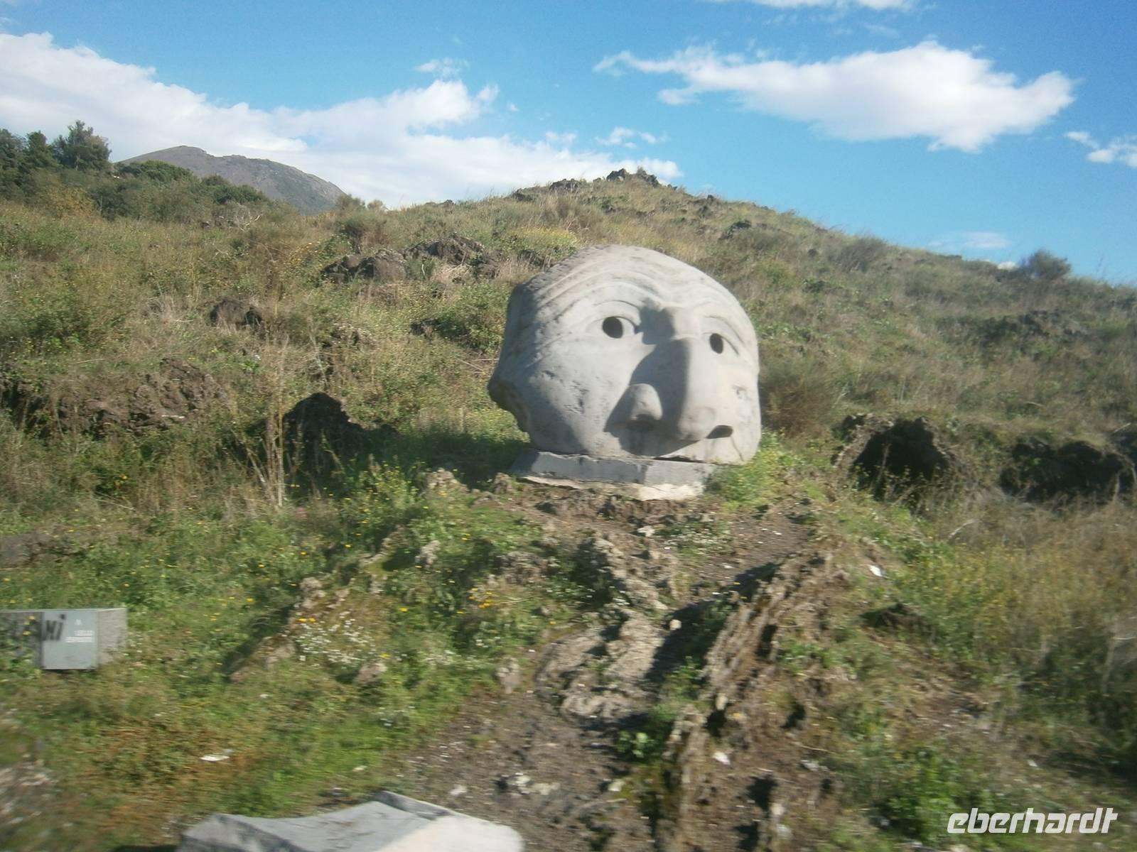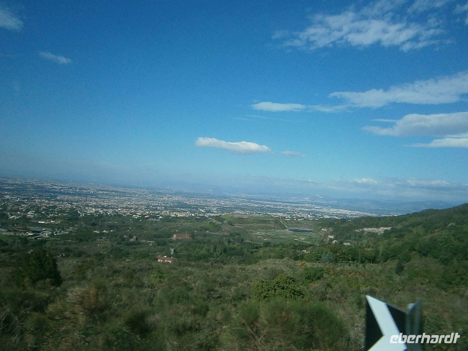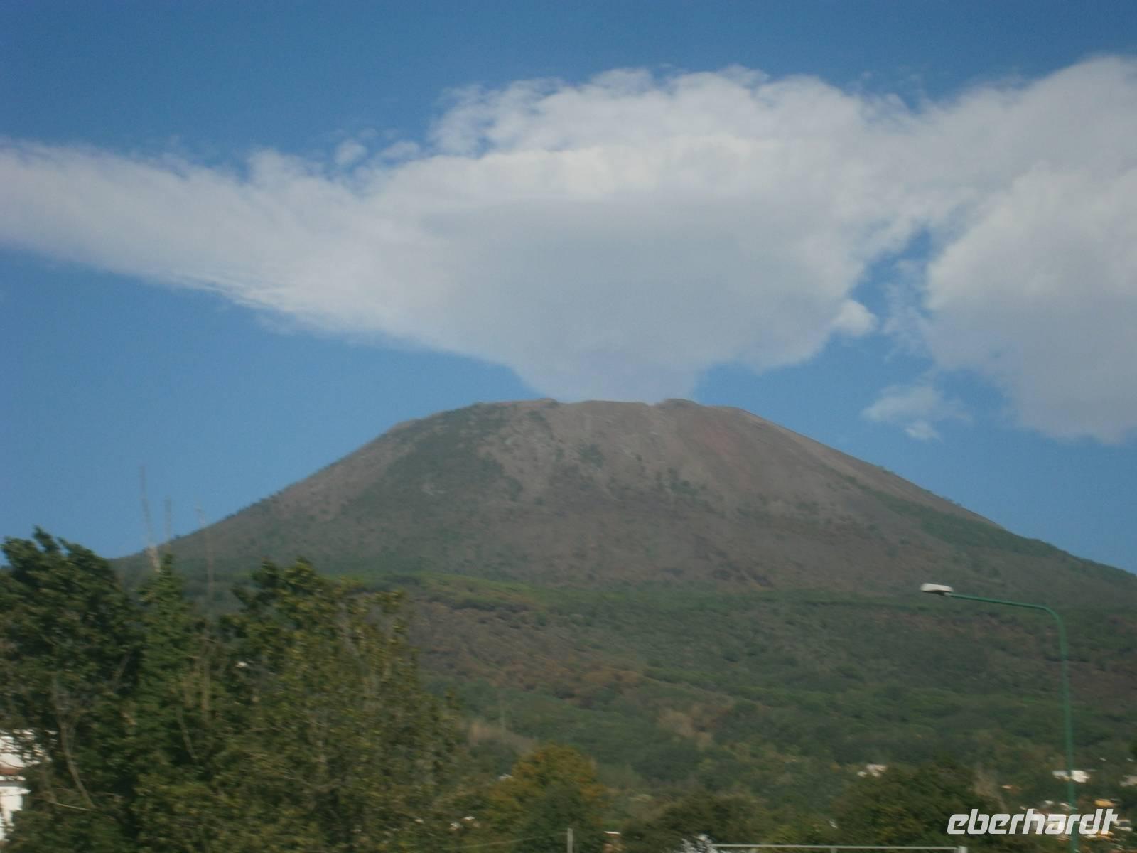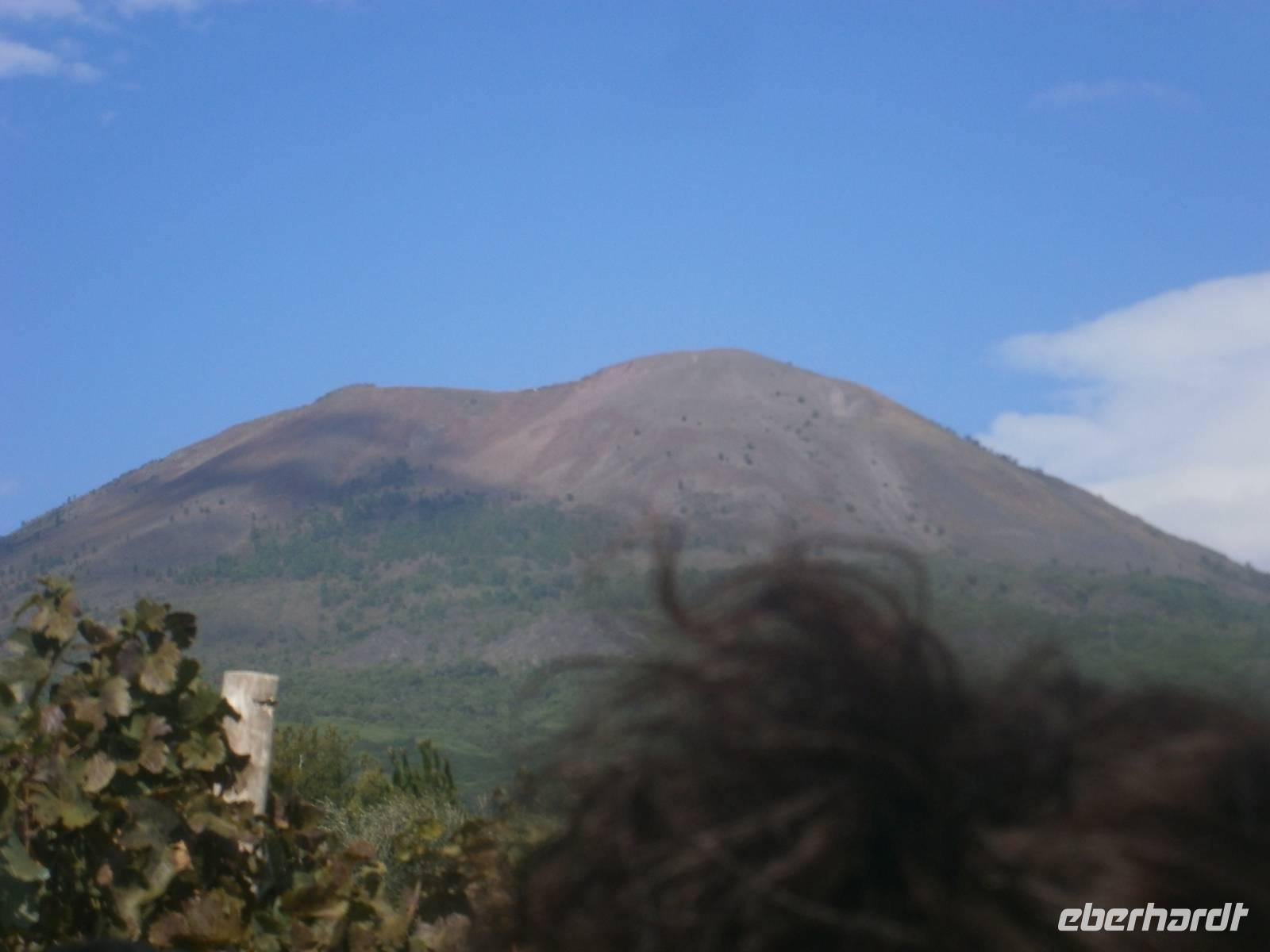 Eigentlich wollten wir an diesem Nachmittag bis zum Kraterrand empor steigen, doch leider macht uns der Wind einen Strich durch unsere Planung. Der Aufstieg ist an diesem Nachmittag aus Sicherheitsgründen gesperrt. Trotzdem haben wir ein imposantes Panorama auf den Golf von Neapel und auf die eindrucksvolle Landschaft - gebildet durch erkaltete Lavaströme.