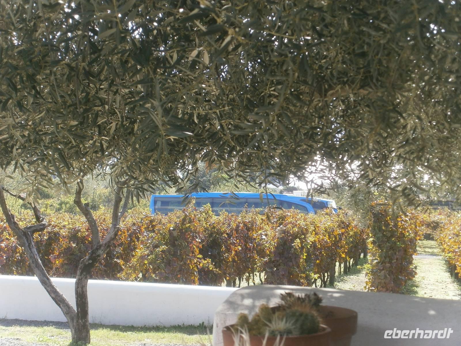 Überragt wird das alte und neue Pompeji, der Golf und die Stadt Neapel vom Vesuv. Der aktive Vulkan ist selbstverständlich auch ein Besuchermagnet. Der letzte größere Vulkanausbruch 1944 gab dem Vesuvio sein heutiges Aussehen und die Höhe von zirka 1277 Metern. Die unteren Gebiete des Vulkans sind aufgrund der Fruchtbarkeit des Bodens dicht besiedelt. Hier wird vor allem Obst, Gemüse und Wein angebaut. Zur Mittagszeit sind wir eingeladen im „Casa del Vesuvio" Hier hat Eberhardt Travel für unsere Gäste einen Mittagsimbiss bestellt. Es gibt Bruschetta mit Tomaten, Salami und Käse. Geröstetes Brot mit Olivenöl und Spaghetti mit Fleischsoße. Dazu Weiß- Rot- und Rosewein und einen Aprikosengrappa.