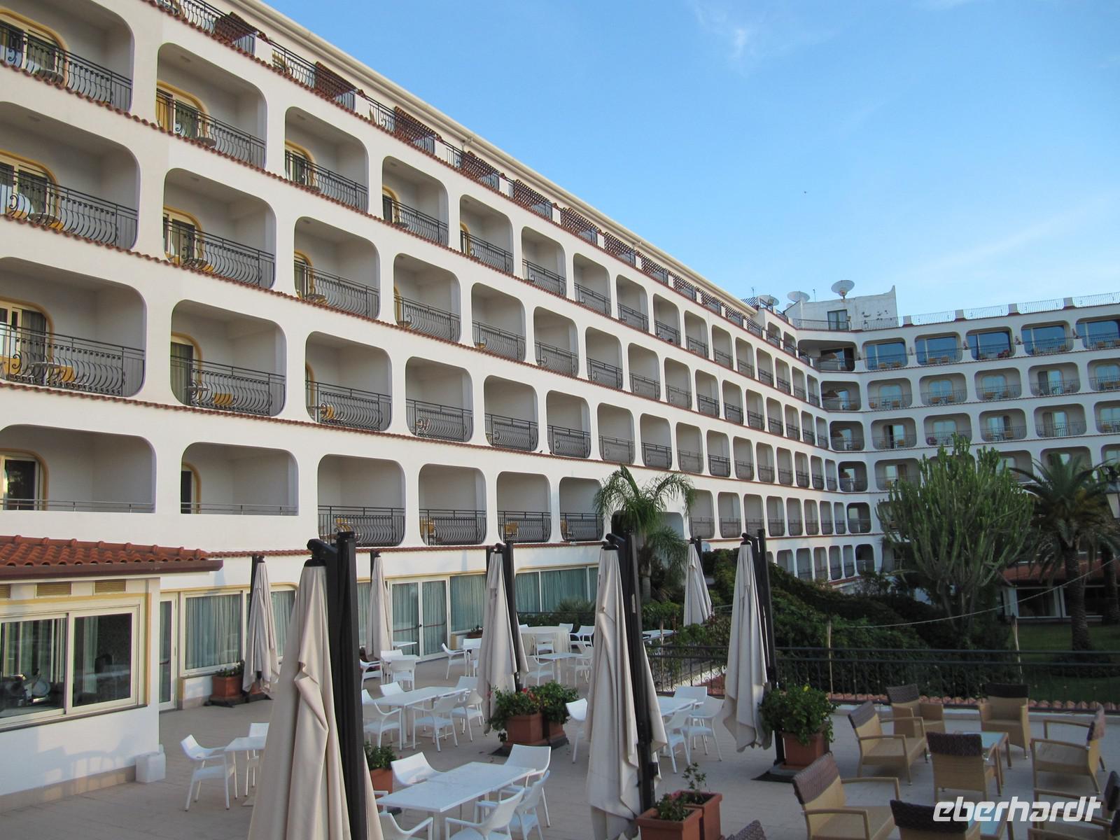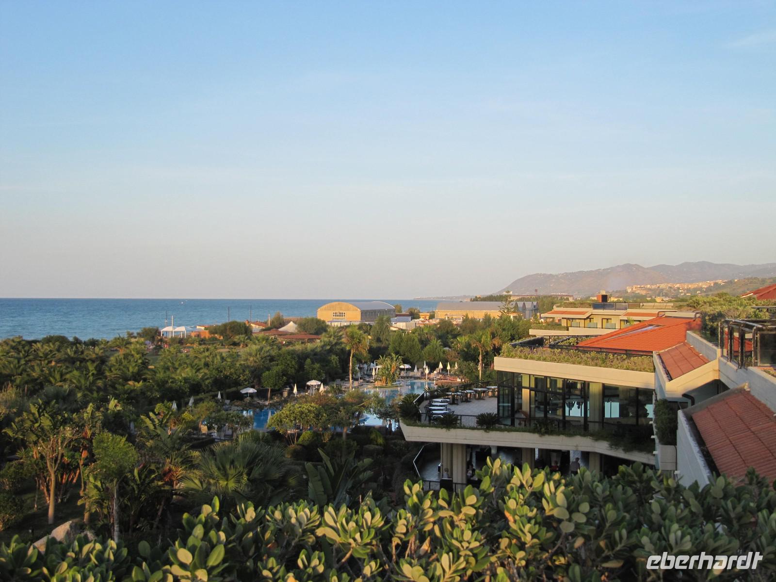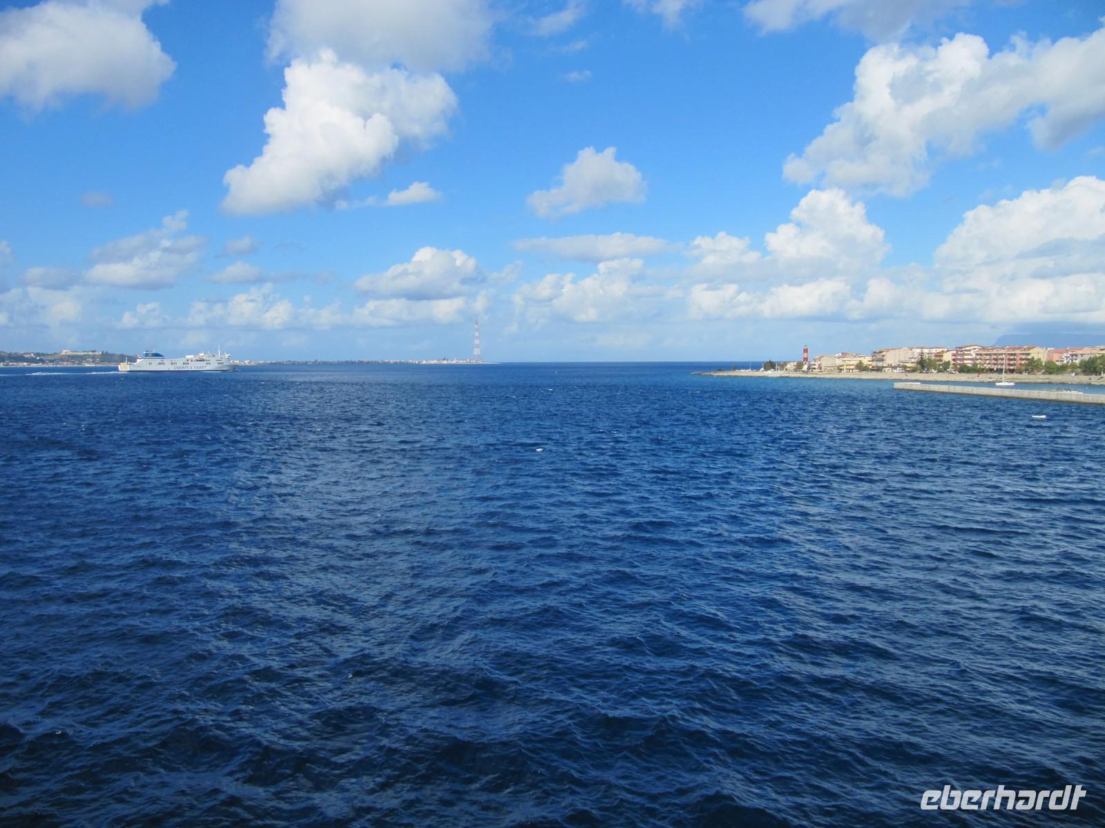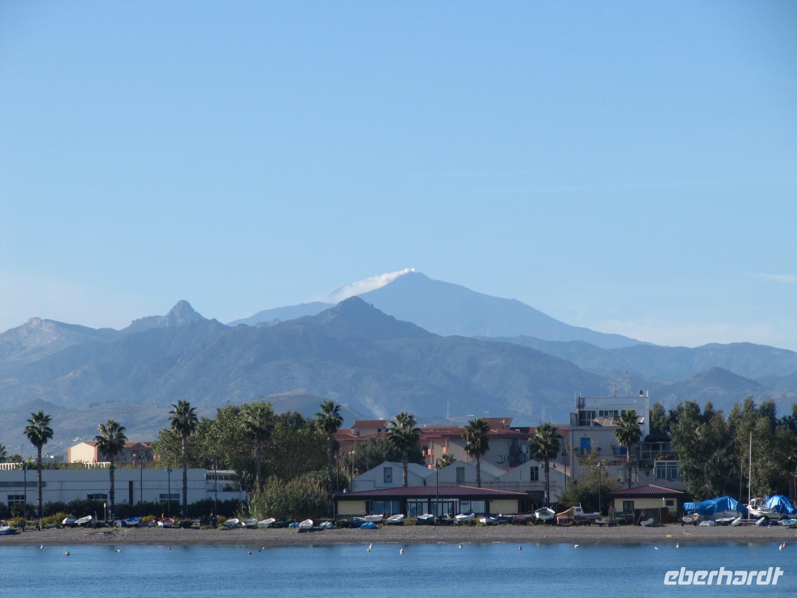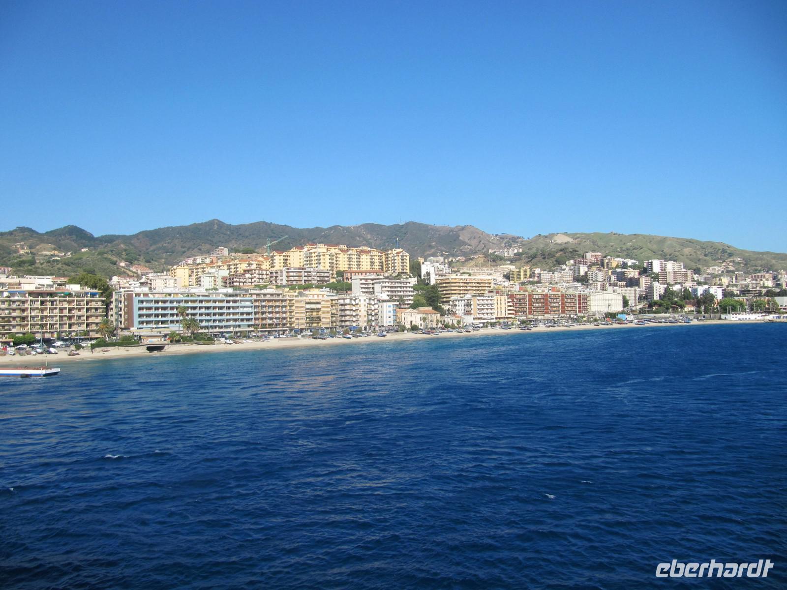 Sizilien, wir kommen! Allerdings müssen wir noch die Basilikata und Kalabrien durchqueren, doch gegen 15 Uhr haben wir den Fährhafen in Villa San Giovanni erreicht. Petra besorgt Tickets und in ca 20 Minuten sind wir auf Sizilien. Wir genießen die Überfahrt auf dem Deck. Schnell steigen wir dann wieder in unseren Bus und sind in einer Stunde in unserem Hotel Hilton in Giardini Naxos, das wir für die nächsten 5 Nächte bewohnen.