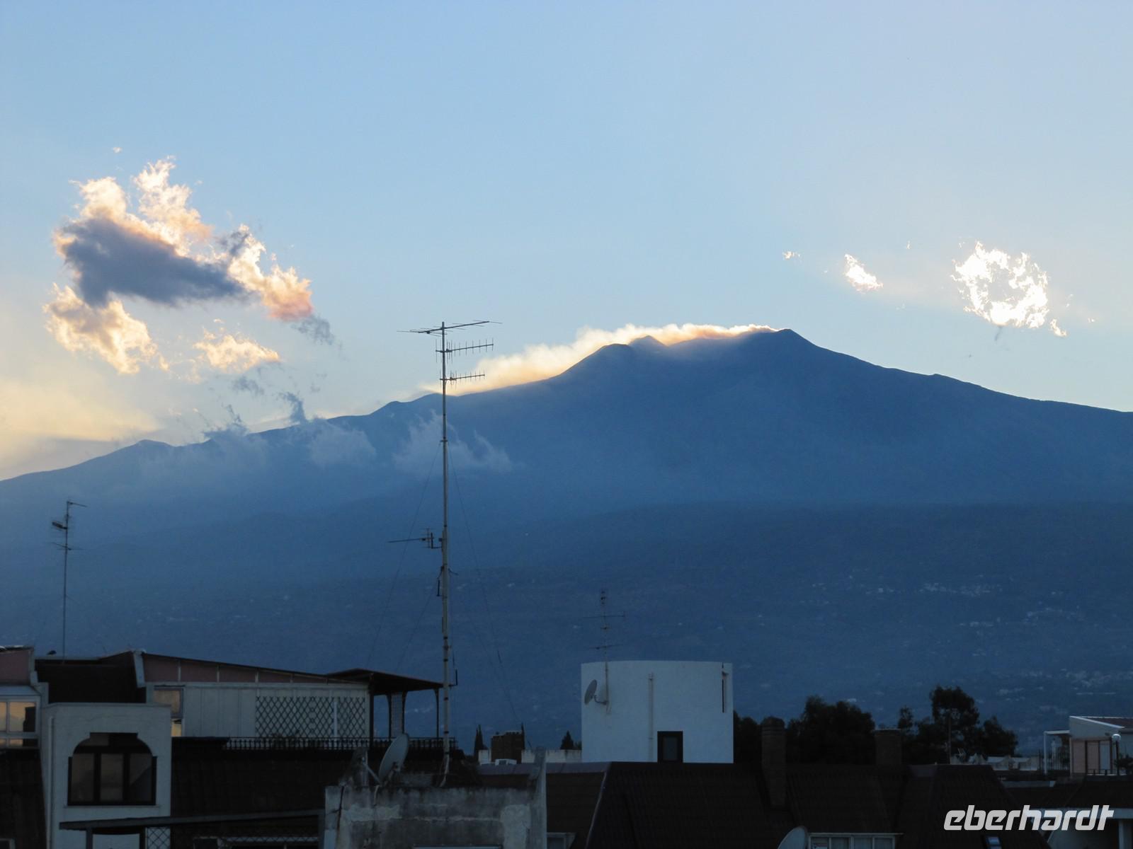 Nach dem Frühstück fahren wir Richtung Messina an Siziliens Nordküste entlang. Mit der Fähre setzen wir auf das Festland über und nun geht es wieder die gleiche Streck zurück, wie bei der Herfahrt. In Gragnano werden wir schon im Hotel erwartet und genießen noch mal in der Abendstimmung den Blick auf den Vesuv.