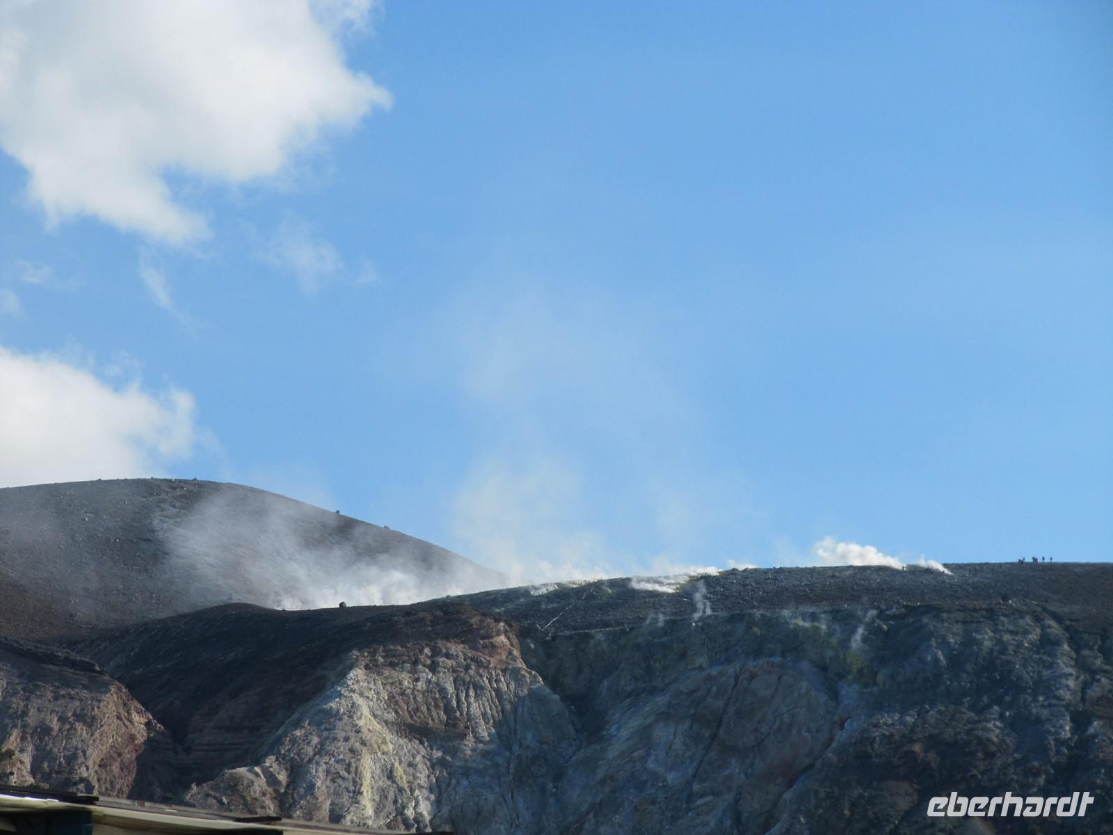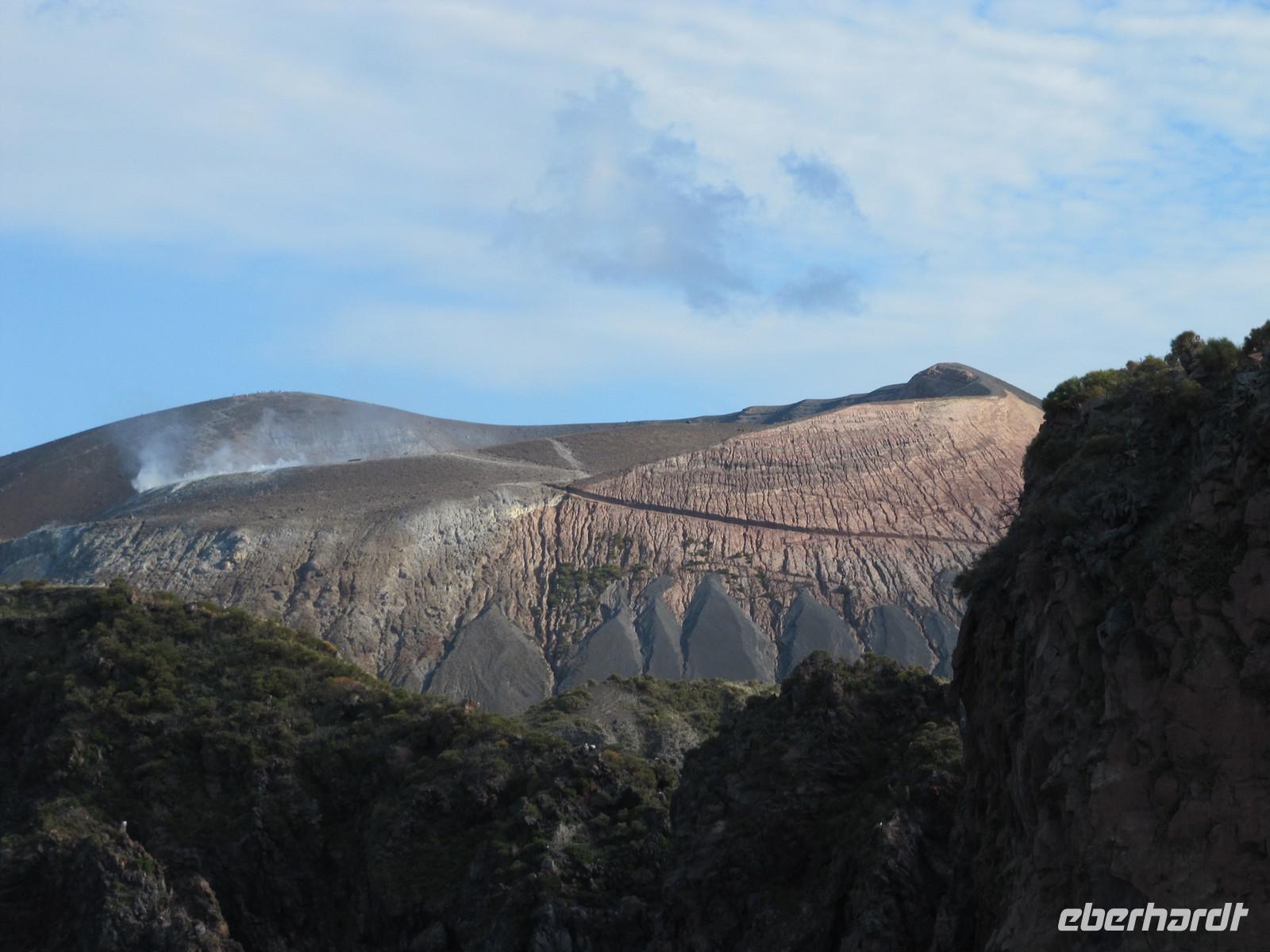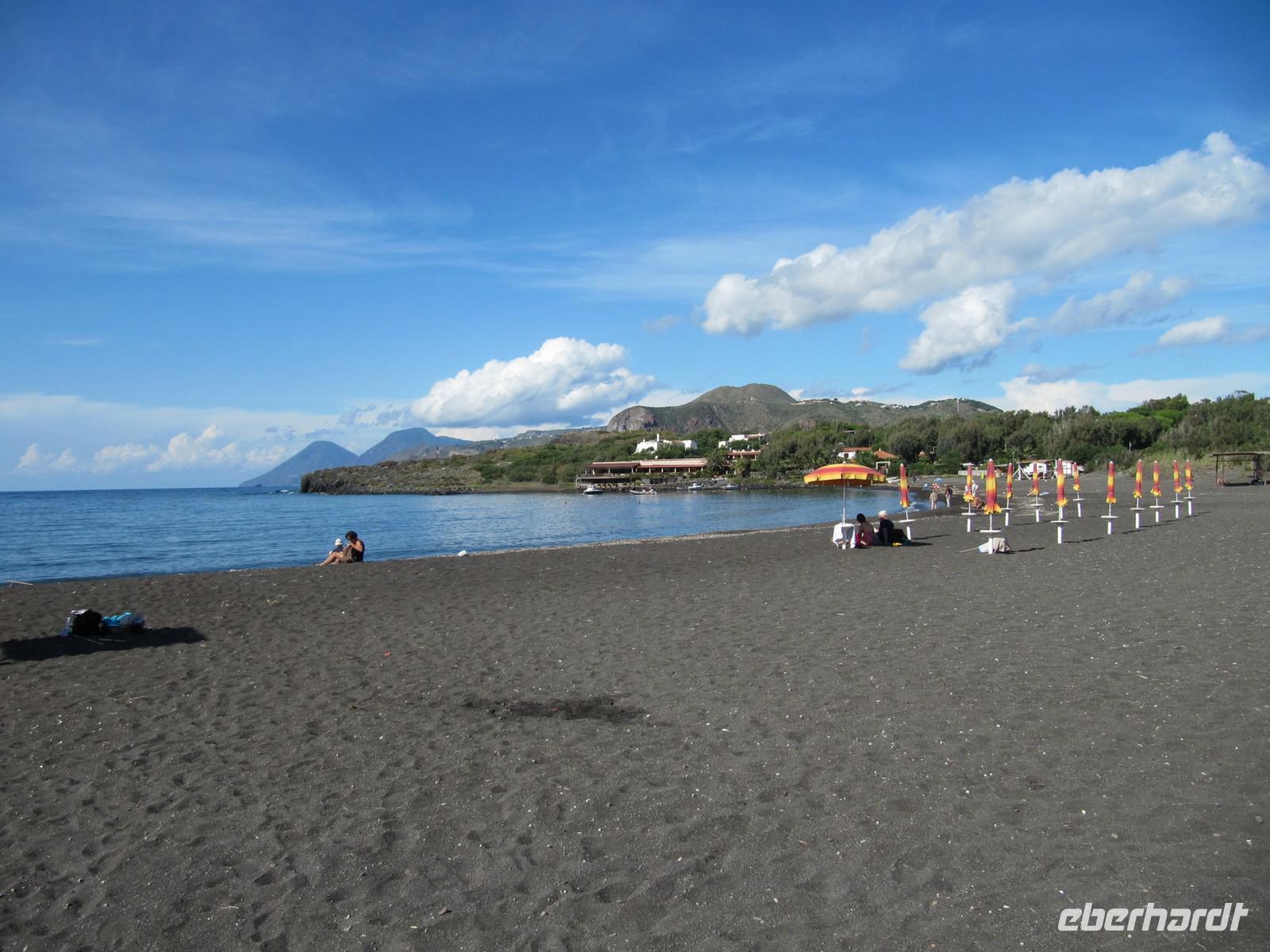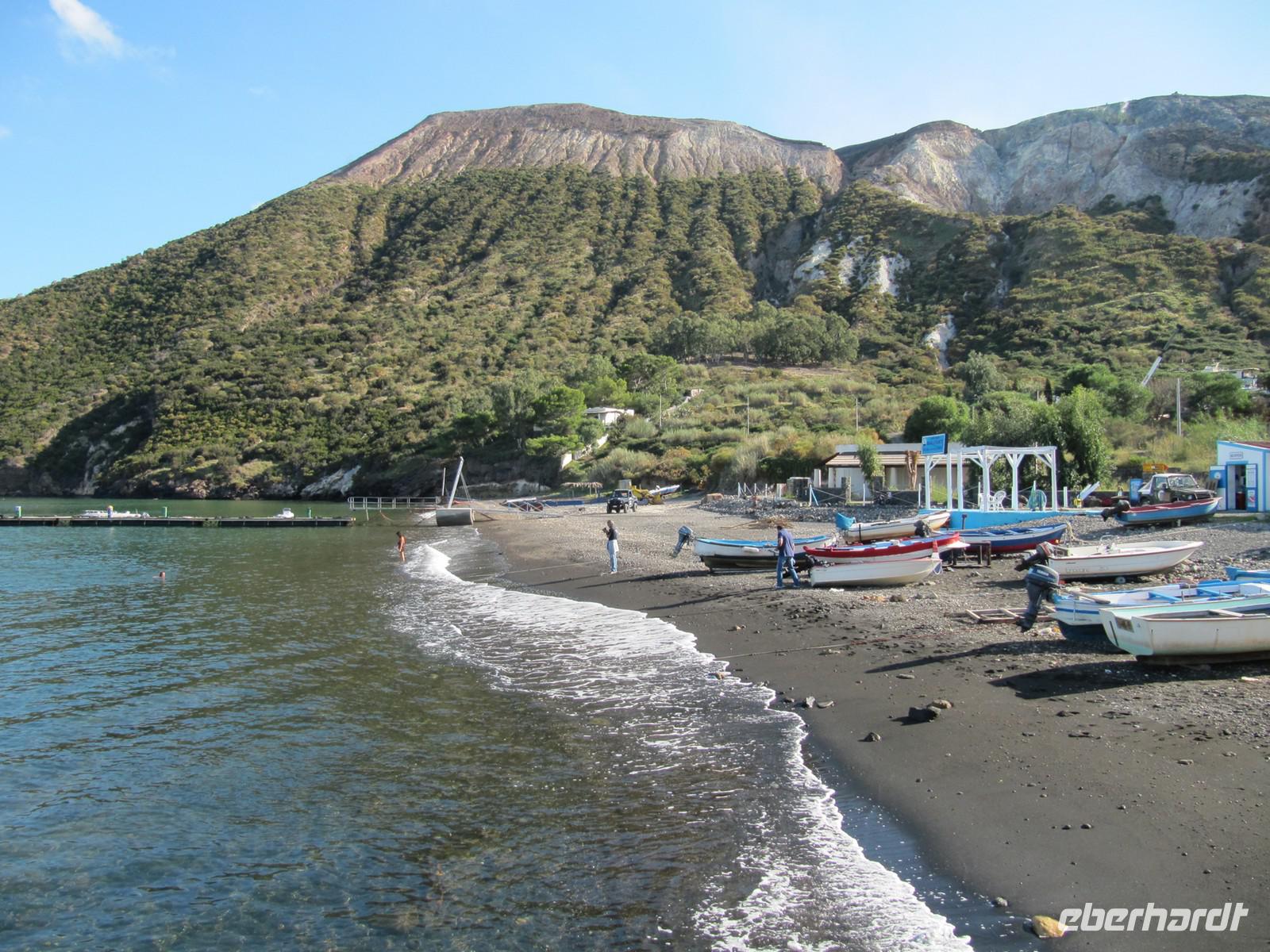 Heute könnten wir im Hotel relaxen, aber alle Gäste beteiligen sich am fakultativen Ausflug nach den Äolischen Inseln, in Deutschland besser als Liparische Inseln bekannt. Mit einem italienischen Bus und Hermann fahren wir nach Milazzo, genießen aber erst mal bei einem Fotostopp die Aussicht auf die Straße von Messina. Dann gehts mit einem kleinen Privatboot zur Insel Lipari. Hier treffen wir auf eine Wandergruppe von Eberhardt, die einige Tage auf den Inseln verbringt. Die Überfahrt ist traumhaft! Wir haben eine selten klare Sicht, erkennen alle Inseln und sehen sogar noch vom Meer den Ätna rauchen! Lipari lernen wir bei einer Inselrundfahrt kennen, natürlich dürfen einige Stopps nicht fehlen. Danach erkunden wir die Insel Vulcano und einige Gäste wandern sogar hinauf auf den Vulkan. Andere baden am schwarzen Strand im warmen klaren Meer oder wandern. Nur in das gesunde Schlammbad will keiner! Bei der Rückfahrt umrunden wir noch Vulcano und haben schöne Ausblicke und Wolkenbildungen. Sogar ein Regenbogen begleitet uns. Wie wir später hören, ging an dem Abend auf Lipari ein heftiges Gewitter nieder. Im Hotel müssen wir noch Koffer packen!