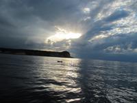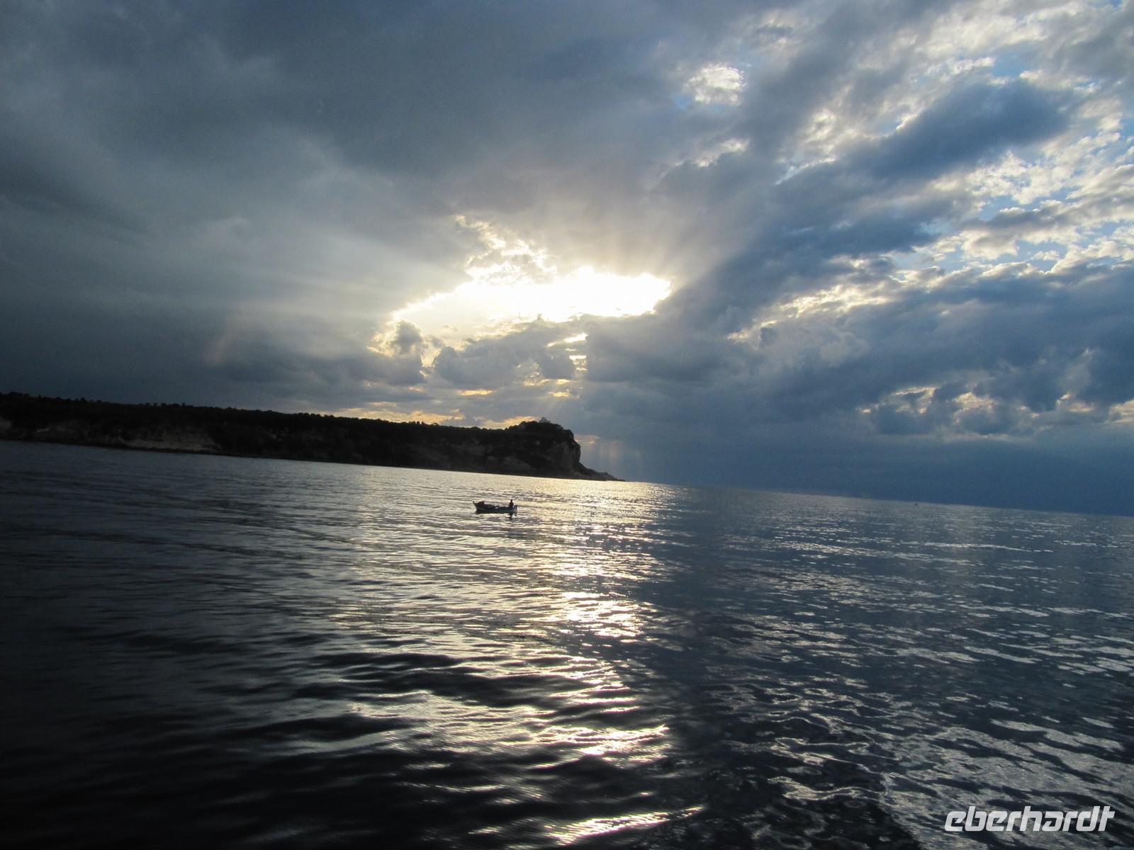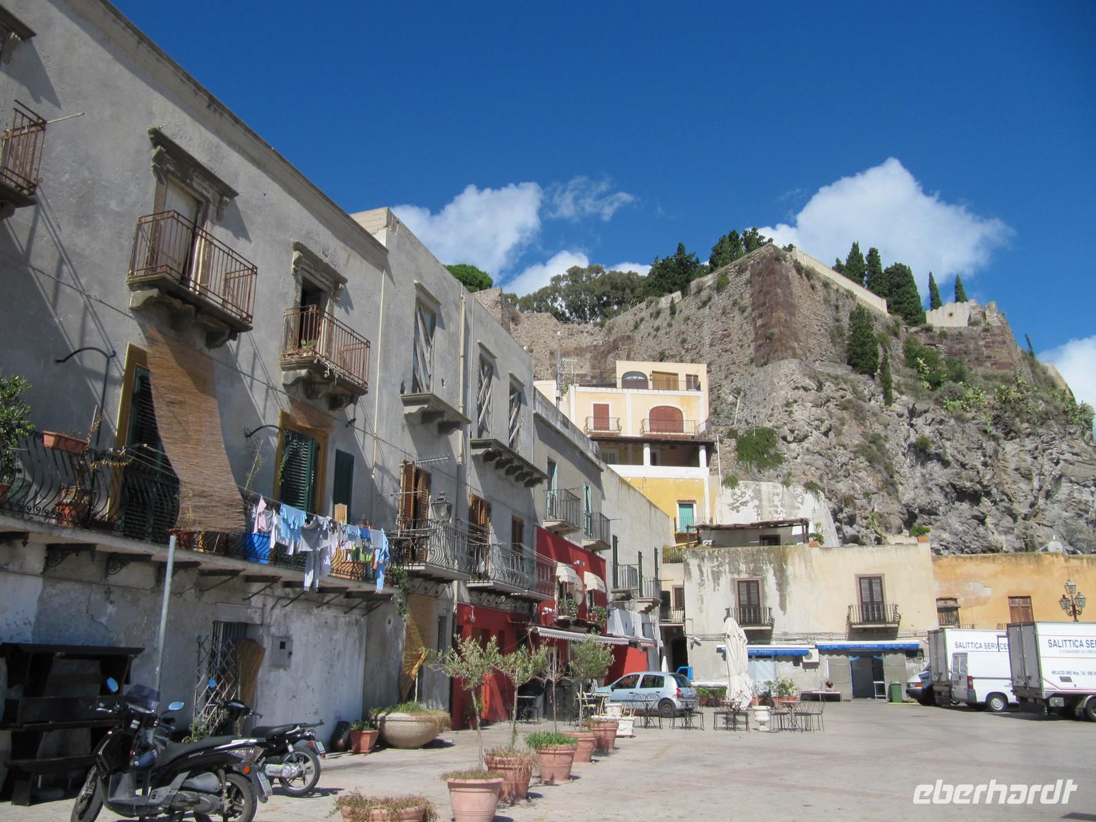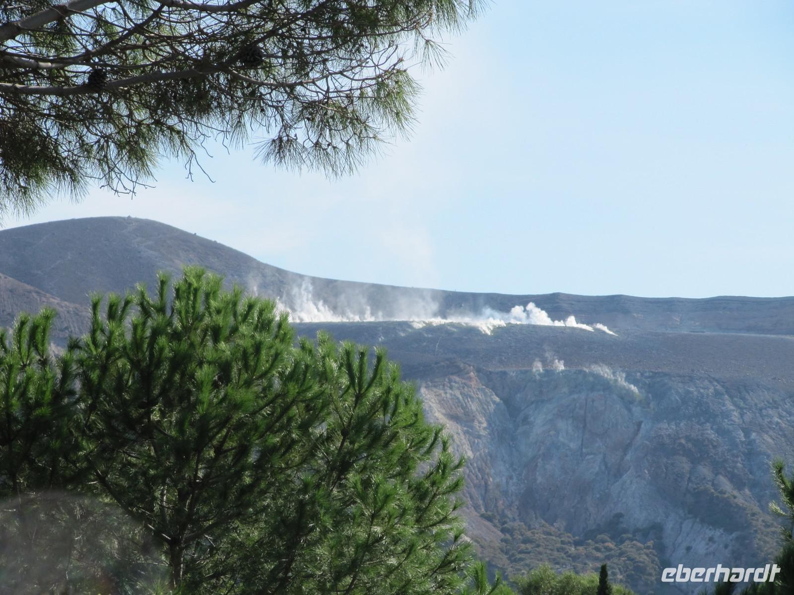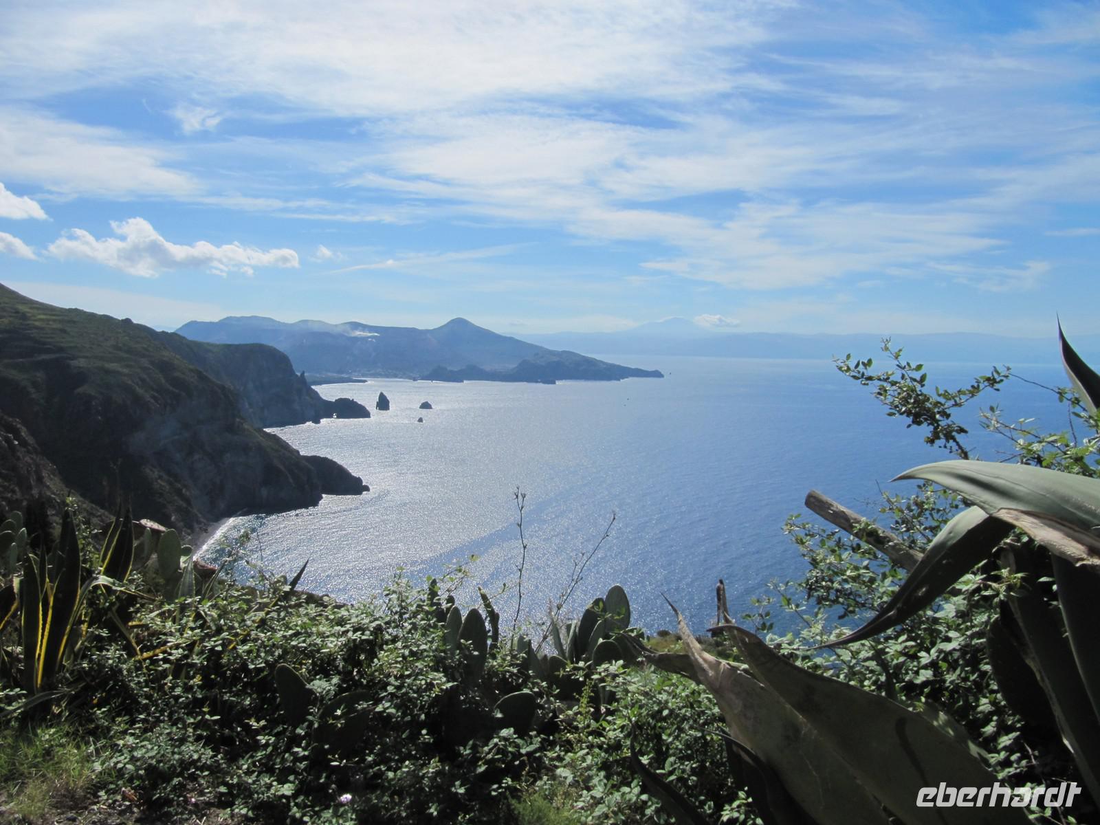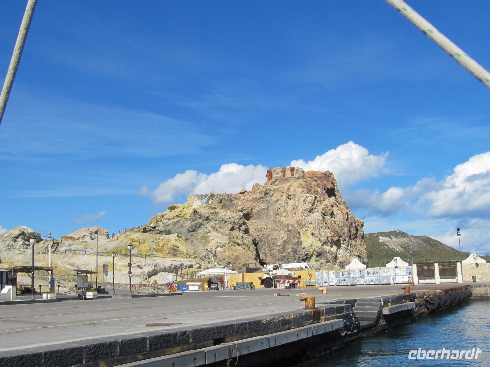 Heute könnten wir im Hotel relaxen, aber alle Gäste beteiligen sich am fakultativen Ausflug nach den Äolischen Inseln, in Deutschland besser als Liparische Inseln bekannt. Mit einem italienischen Bus und Hermann fahren wir nach Milazzo, genießen aber erst mal bei einem Fotostopp die Aussicht auf die Straße von Messina. Dann gehts mit einem kleinen Privatboot zur Insel Lipari. Hier treffen wir auf eine Wandergruppe von Eberhardt, die einige Tage auf den Inseln verbringt. Die Überfahrt ist traumhaft! Wir haben eine selten klare Sicht, erkennen alle Inseln und sehen sogar noch vom Meer den Ätna rauchen! Lipari lernen wir bei einer Inselrundfahrt kennen, natürlich dürfen einige Stopps nicht fehlen. Danach erkunden wir die Insel Vulcano und einige Gäste wandern sogar hinauf auf den Vulkan. Andere baden am schwarzen Strand im warmen klaren Meer oder wandern. Nur in das gesunde Schlammbad will keiner! Bei der Rückfahrt umrunden wir noch Vulcano und haben schöne Ausblicke und Wolkenbildungen. Sogar ein Regenbogen begleitet uns. Wie wir später hören, ging an dem Abend auf Lipari ein heftiges Gewitter nieder. Im Hotel müssen wir noch Koffer packen!
