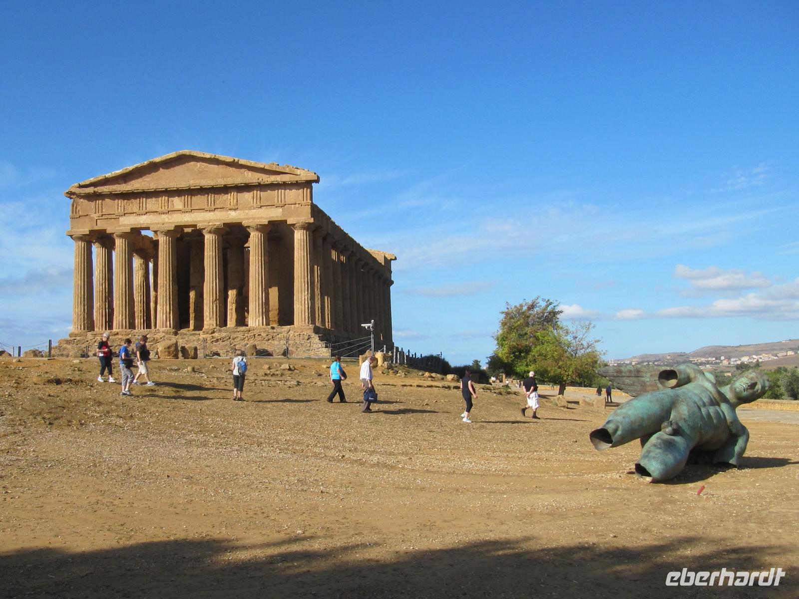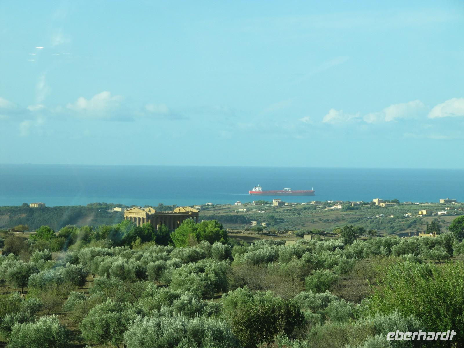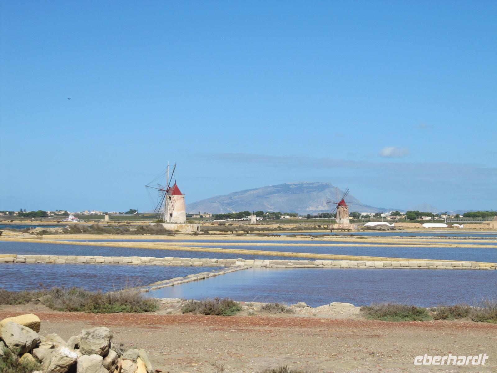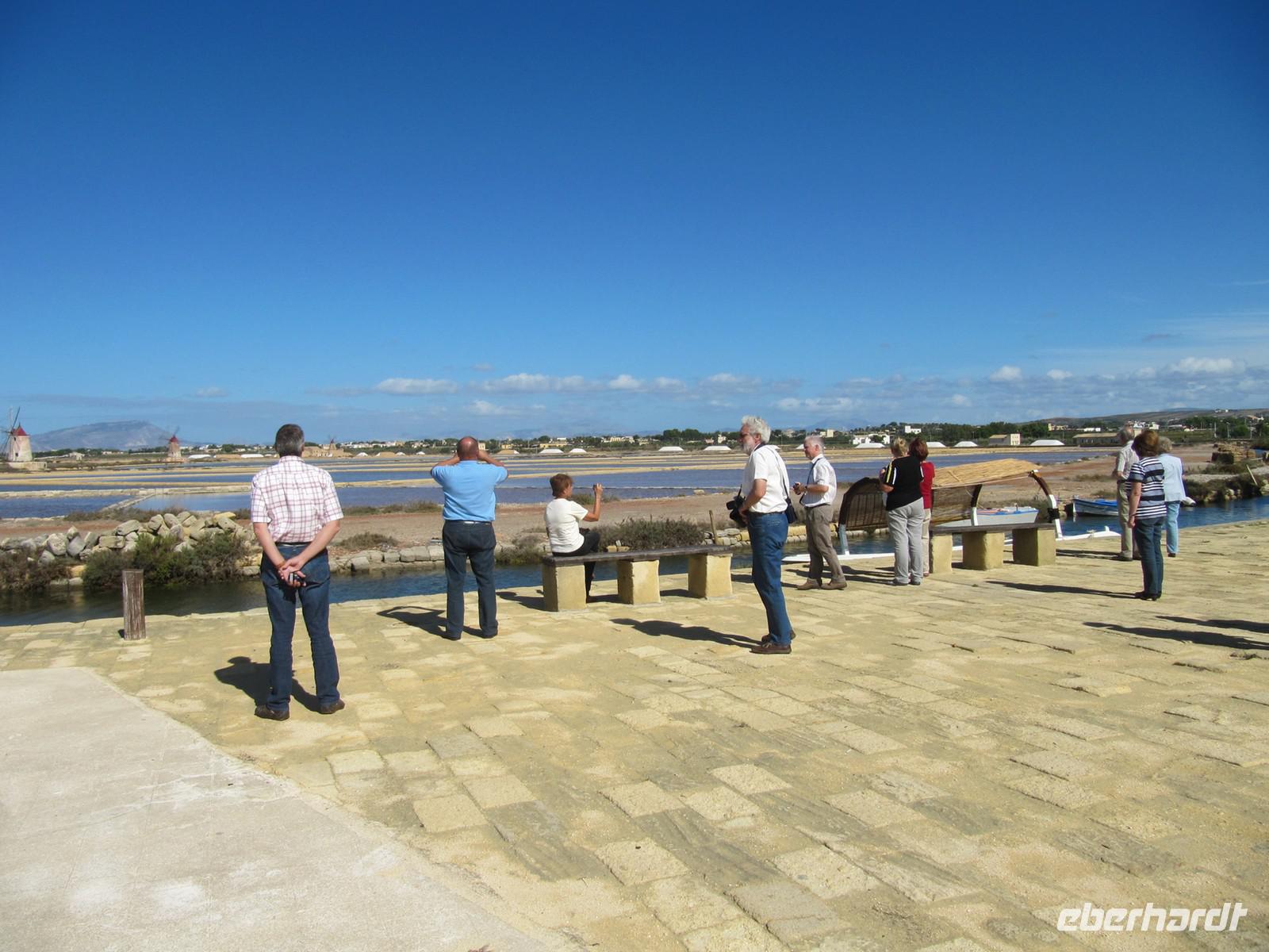 Schnell sind wir in Agrigent. Liliana führt uns durch das Tal der Tempel, in die Welt des antiken Akragas. Wir erfahren natürlich wieder viel über diese beeindruckenden Bauwerke. Dann liegt aber noch der gesamte Westen von Sizilien vor uns. Hinter Marsala machen wir einen Fotostopp an den Salinen von Trapani, wo noch Salz produziert wird. Dann geht es hinauf nach Erice, das 751 m hoch über dem Meer liegt. Wir können schon bei der Auffahrt herrliche Blicke über die Nordküste der Insel werfen. Wir bummelen durch die alten Gassen der Stadt zum Aussichtspunkt am Castello de Venere, legen noch einen Stopp bei Maria ein, um das bekannte Mandelgebäck zu probieren. Dann müssen wir noch über zwei Stunden zu unserem Hotel Fiesta Athenee nach Campofelice fahren, wo uns reichhaltige Abendbuffets erwarten.