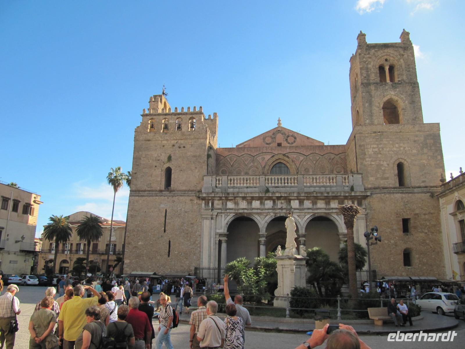 Heute treffen wir uns in Palermo mit Gino der uns zuerst nach Monreale bringt, wo wir den berühmten Normannendom besichtigen. Er ist über und über mit herrlichen Mosaiken verkleidet. Im beeindruckenden Kreuzgang des Benediktinerklosters bewundern wir die Doppelsäulen mit wertvollen Kapitellen. Gino erklärt uns alles sehr ausführlich! Unser Bus bringt uns wieder nach Palermo. Wir bestaunen im Normannenpalast die Cappella Palatina. Gino zeigt uns auch den Normannendom, und fast alle Gäste besuchen die Grablege mit den Sarkophag vom Stauferkaiser Friedrich II. Nach einer kleinen Stadtrundfahrt und Mittagspause im Zentrum der Stadt kommen wir heute etwas früher im Hotel an und können noch baden oder in der herrlichen Anlage spazieren. Aber es heißt auch wieder Koffer packen, denn ab morgen geht es langsam wieder gen Heimat.
