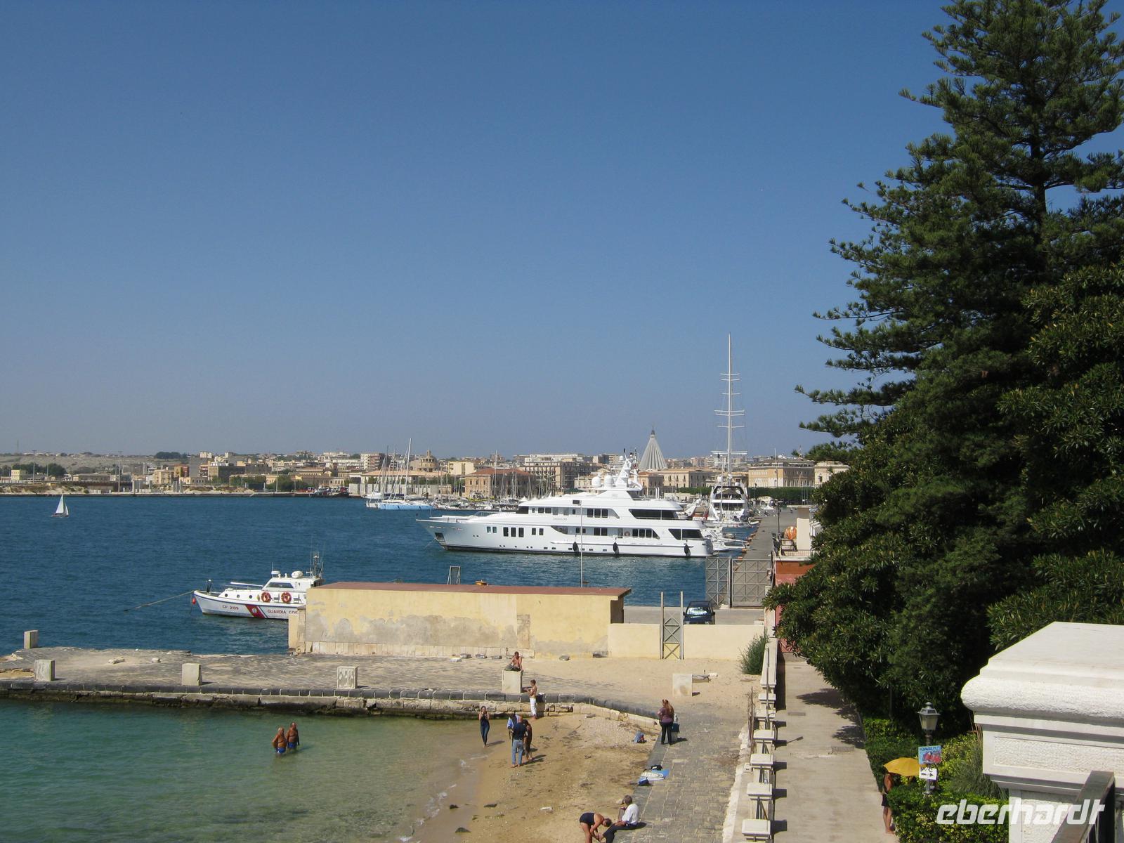 Das Hotel in Giardini Naxos war eine großzügige Anlage und bot günstige Voraussetzungen für das Programm der nächsten Tage. Syrakus war einst ein mächtiger Stadtstaat, davon künden die Ruinen noch heute. Wenn man an das traurige Schicksal der Athener denkt, bekommt man in jenem berüchtigten Steinbruch Gänsehaut. Die Quelle mit dem einzigen Papyrusvorkommen Europas bot in der Hitze einen erfrischenden Anblick. Angenehm war auch die Hafenrundfahrt mit der „Selene" und der Imbiss an Bord kam gerade recht.