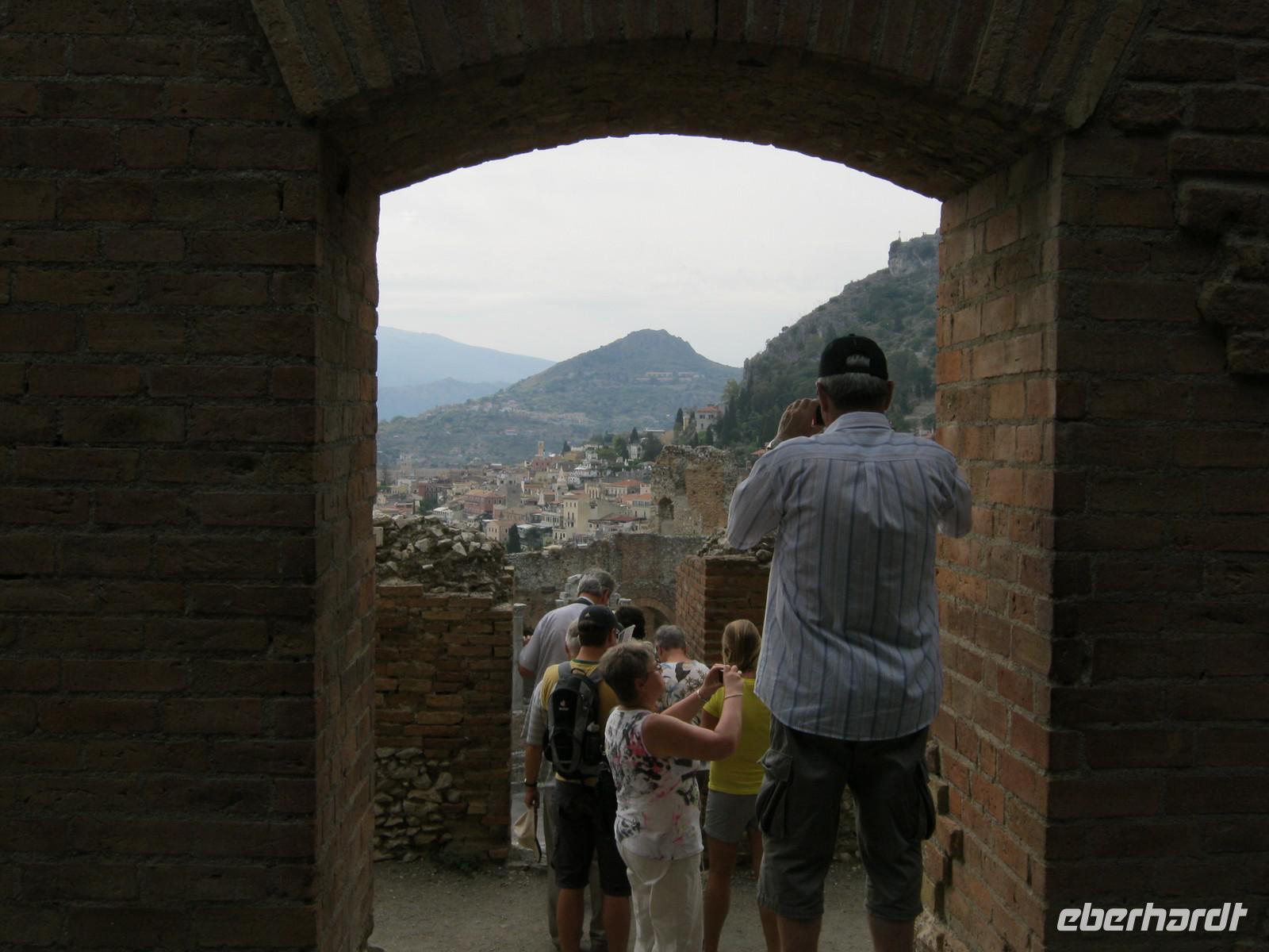 Catania atmet die Geschichte und hat ein unverwechselbares Flair, nicht zuletzt der Fischmarkt, der alle Sinne anspricht. Hoch oben auf einem Berg liegt Taormina - ein wahres Kleinod, das schon früh für den Tourismus entdeckt wurde. Das Römische Theater mit seiner einzigartigen Lage wird heute noch bespielt. Kann es einen besseren Platz für ein Gruppenfoto geben? Mit der üblichen Mühe gelang es dann auch, alle in Positur zu stellen.