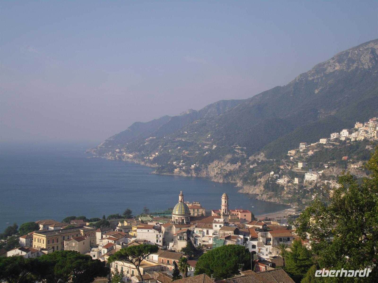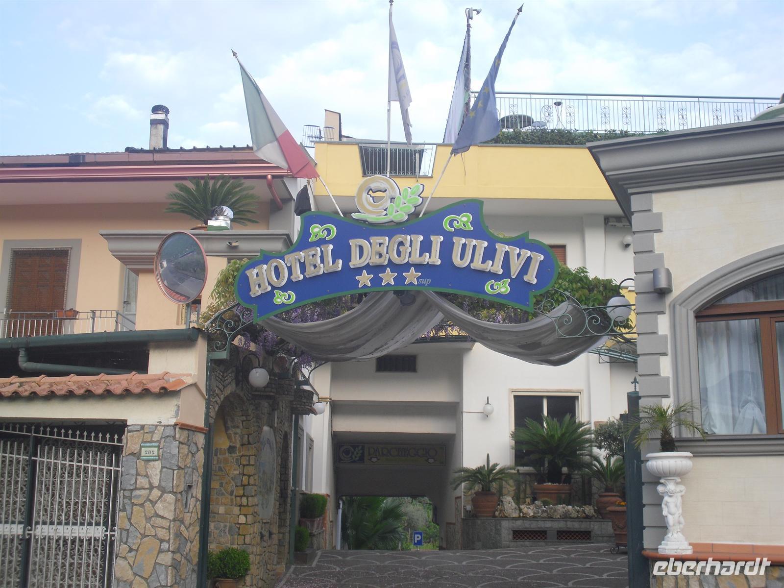 Allerdings erwartet uns kurze Zeit später bei der Weiterfahrt auf dem italienischen Festland Regen ohne Ende, aber was soll es - wir haben ja eigentlich gar keinen Grund uns zu beklagen, der Wettergott war bisher fast immer auf unserer Seite!Die Fahrtstrecke führt uns wiederum durch die Gebirgs- und Küstenlandschaften der Regionen Kalabrien und Basilicata. Am Nachmittag erreichen wir die Region Kampanien und wenig später auch unser heutiges Ziel, unser Zwischenübernachtungshotel "degli Ulivi" in Gragnano. Hier werden wir wiederum äußerst herzlich empfangen. Übrigens kann man bei schönem Wetter von der Dachterrasse des Hotels einen herrlichen Blick auf den Golf von Neapel mit dem Vesuv werfen.