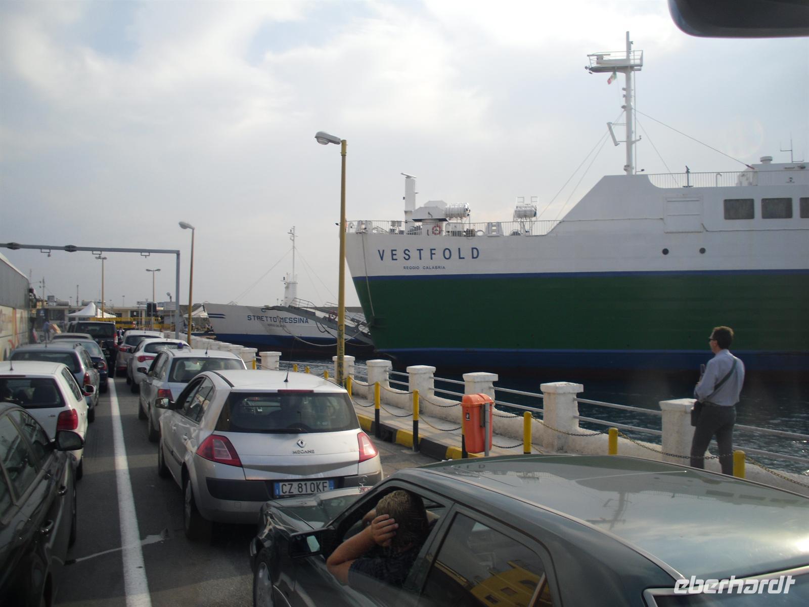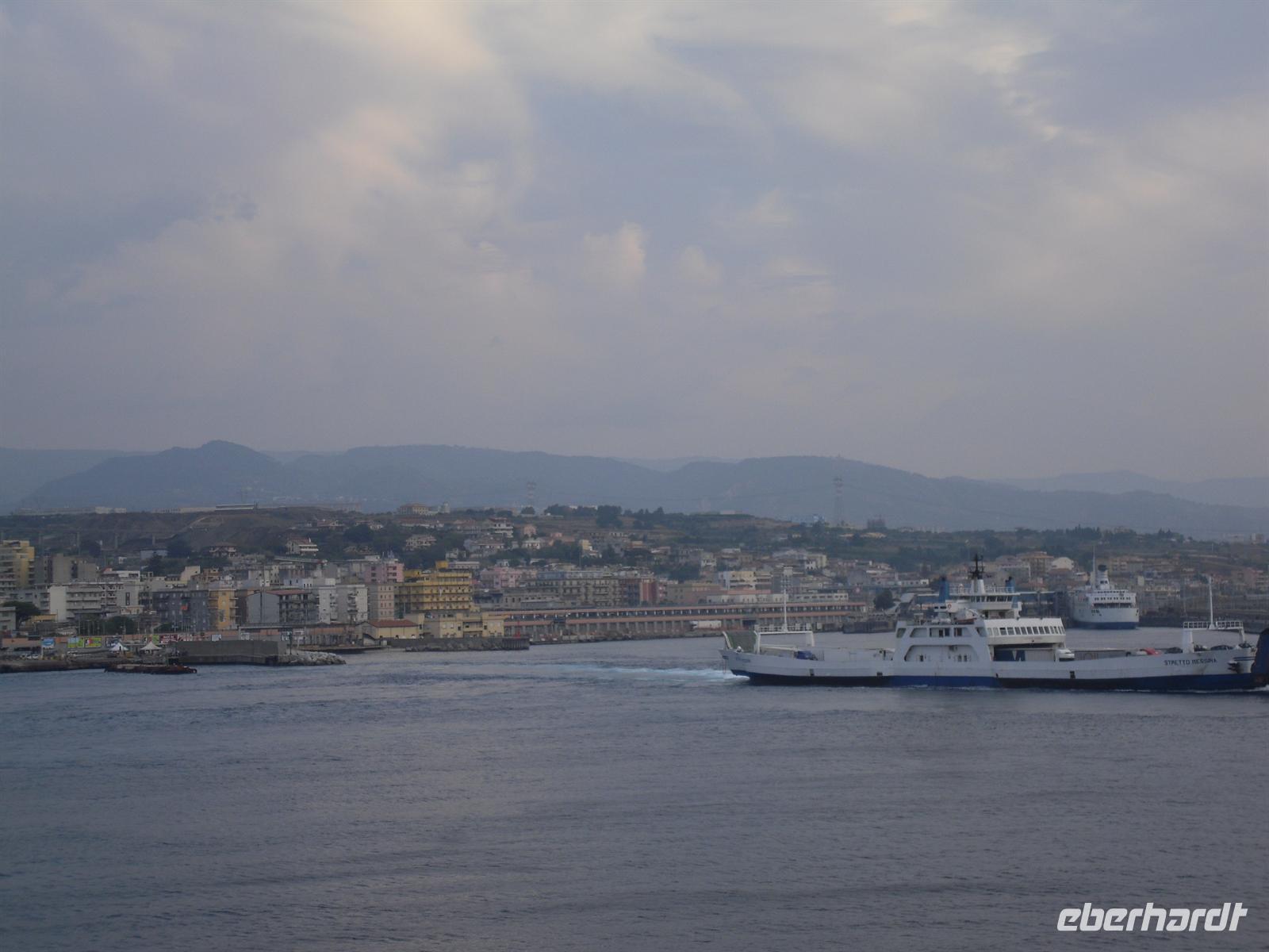 Wir müssen leider heute Abschied von der traumhaften Insel Sizilien nehmen, die erste Etappe der Rückreise liegt vor uns. Entlang der Nordküste fahren wir wiederum zum Hafen von Messina, wo uns das Fährschiff zum italienischen Festland, nach Villa San Giovanni, erwartet. Das Wetter ist heute herrlich - im Gegensatz zur Hinfahrt vor über einer Woche erleben wir heute die Überfahrt bei Sonnenschein, wir können noch so manch einen tollen Blick über die Straße von Messina hinüber zur Insel Sizilien genießen..