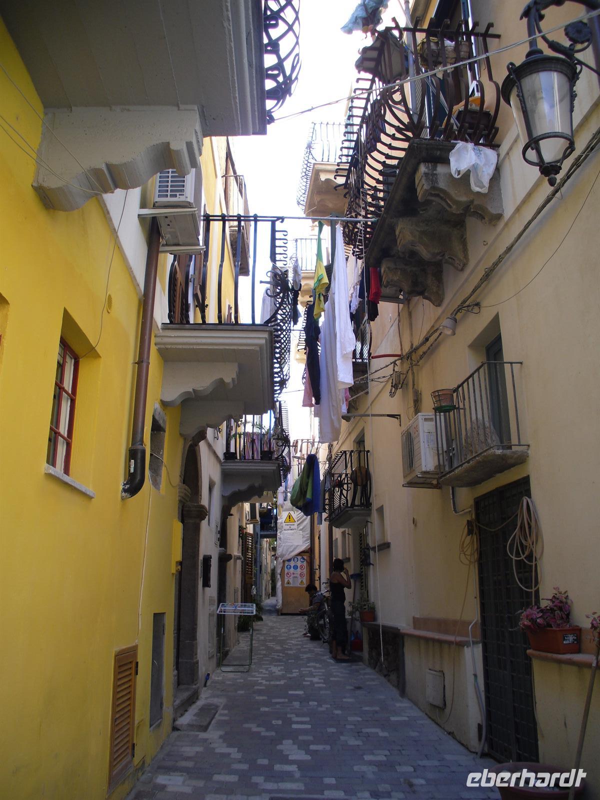 Die Stadt und der Hafen liegen am Beginn einer etwa 6 km langen und schmalen Halbinsel und sind Ausgangspunkt für die Fahrten zu den Liparischen Inseln. Der Archipel der Liparischen Inseln mit seinen sieben bewohnten und zehn unbewohnten Inseln ist der größte Siziliens und die Heimat des griechischen Gottes Äol. Der antike Beherrscher der Winde wurde auf Vulcano geboren und lebte auf Stromboli, der mythischen Insel Aiolia. Auf seinen Irrfahrten erreichte Odysseus das sagenhafte Eiland und wurde von Äol freundlich aufgenommen, der ihm zum Abschied einen Sack schenkte, in dem widrige Winde eingeschlossen waren. Kurz vor der Ankunft in der Heimat öffneten Odysseus´Gefährten heimlich den mysteriösen Ledersack, in dem sie Gold vermuteten. Dabei wurden gefährliche Sturmwinde entfesselt, die das Schiff zurück zur Insel des Windgottes trieben. Der zürnte dem undankbaren Gast und wies ihn ab, als Odysseus erneut um Hilfe bat. Sturmwinde beherrschen auch heute noch vor allem in den Wintermonaten die Liparischen Inseln, die zum Andenken an den antiken Herrscher auch die Äolischen Inseln genannt werden - dann hat Äol seine Heimat fest im Griff und jeder Versuch einer Annäherung wird zum Abenteuer! Nach einer herrlichen und relativ ruhigen Schifffahrt kommen wir vorerst auf der Insel Lipari an.