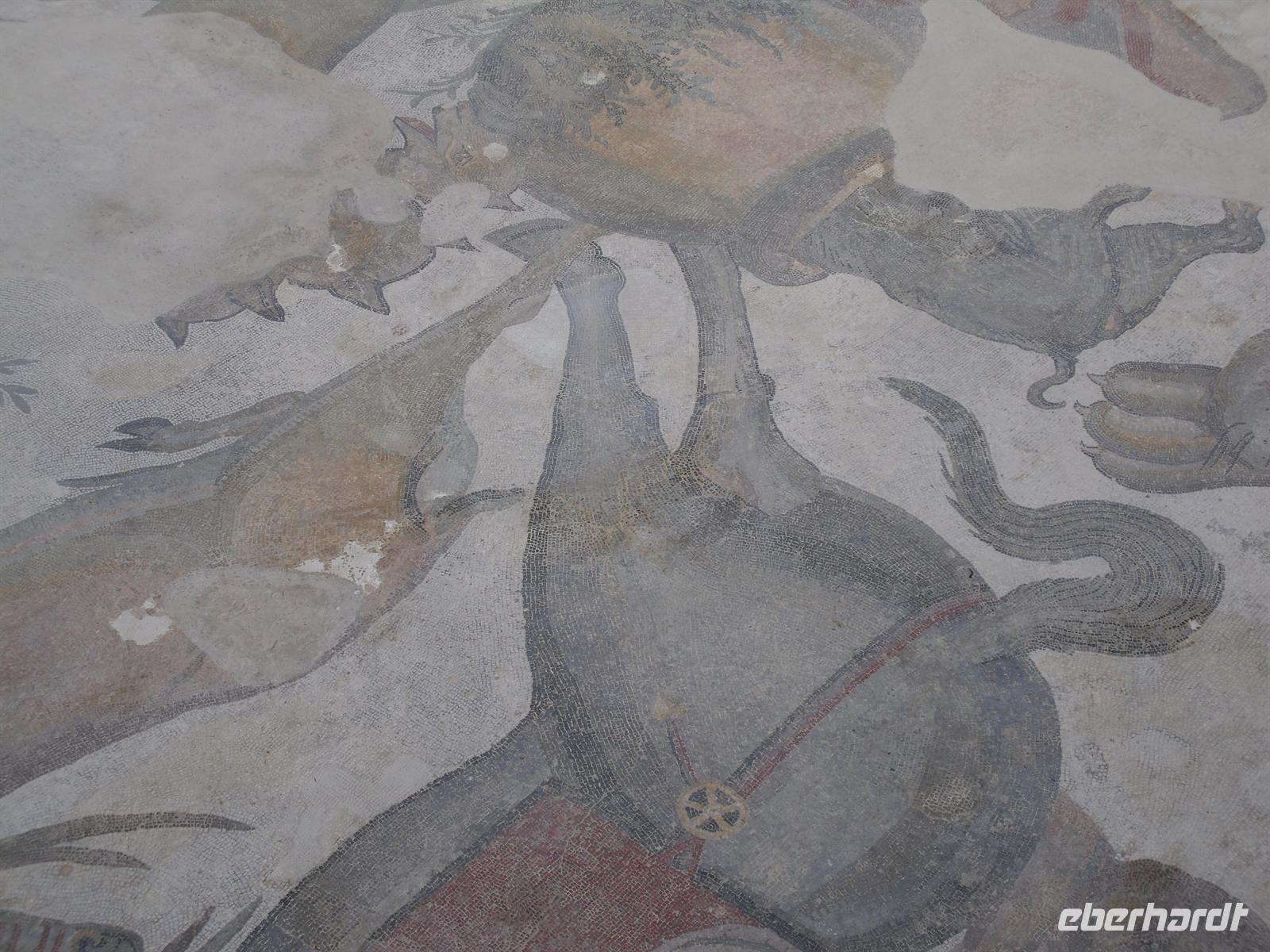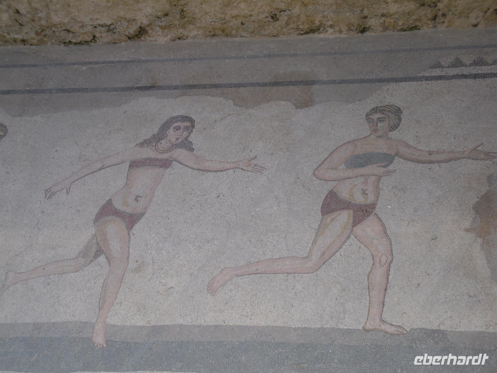 Mit dem Namen Piazza Armerina verbindet sich vor allem die römische Villa des Casale, einer der außergewöhnlichsten archäologischen Funde auf Sizilien. Sie wurde im 3. und 4. Jahrhundert n. Chr. für einen unbekannten Auftraggeber gebaut, den die Forscher mal in diesem mal in jenem Mitglied des altrömischen Adels oder gar der kaiserlichen Familie entdeckt zu haben glauben. Wer auch immer es gewesen sein mag, so muss es sich doch um eine sehr wohlhabende Person gehandelt haben, um einen Liebhaber des Luxus, des Komforts und der Kunst. Zur Innenausstattung seines stattlichen Landsitzes ließ er fähige Mosaizisten aus Afrika kommen, die fünf Jahre lang an der Verwirklichung jener prächtigen Mosaiken arbeiteten, die uns noch heute einen lebendigen Eindruck vom Leben und der Mythologie der Römer vermitteln. Auf einer Fläche von 3.500 Quadratmetern wechseln Jagdszenen und Tanzdarstellungen, Gestalten der Mythologie und Tiere, Fischer und alle Art Pflanzen und Früchte einander ab. Der Wohnkomplex besteht aus vier unterschiedlichen Gebäudegruppen, deren jede einem speziellen Aspekt des gesellschaftlichen Lebens diente, wie etwa der Gastfreundschaft,