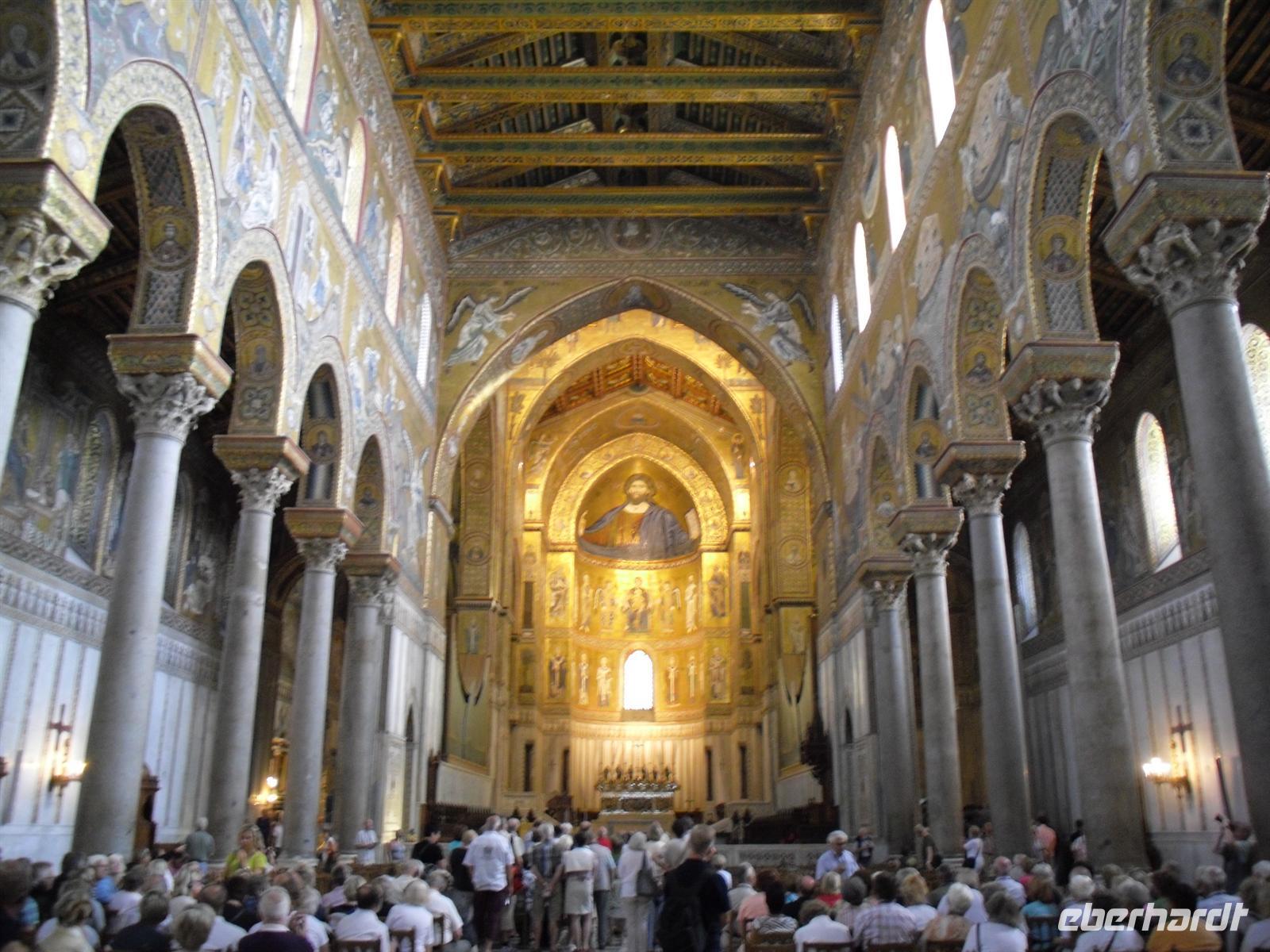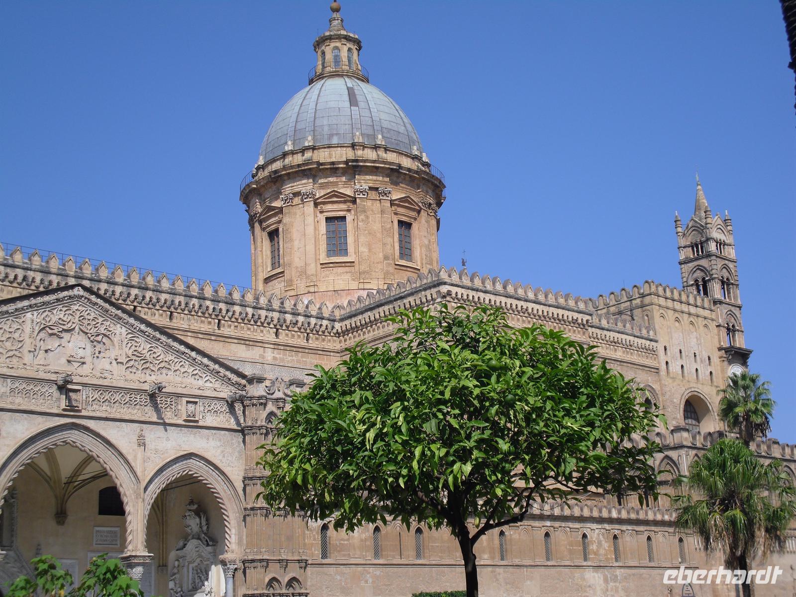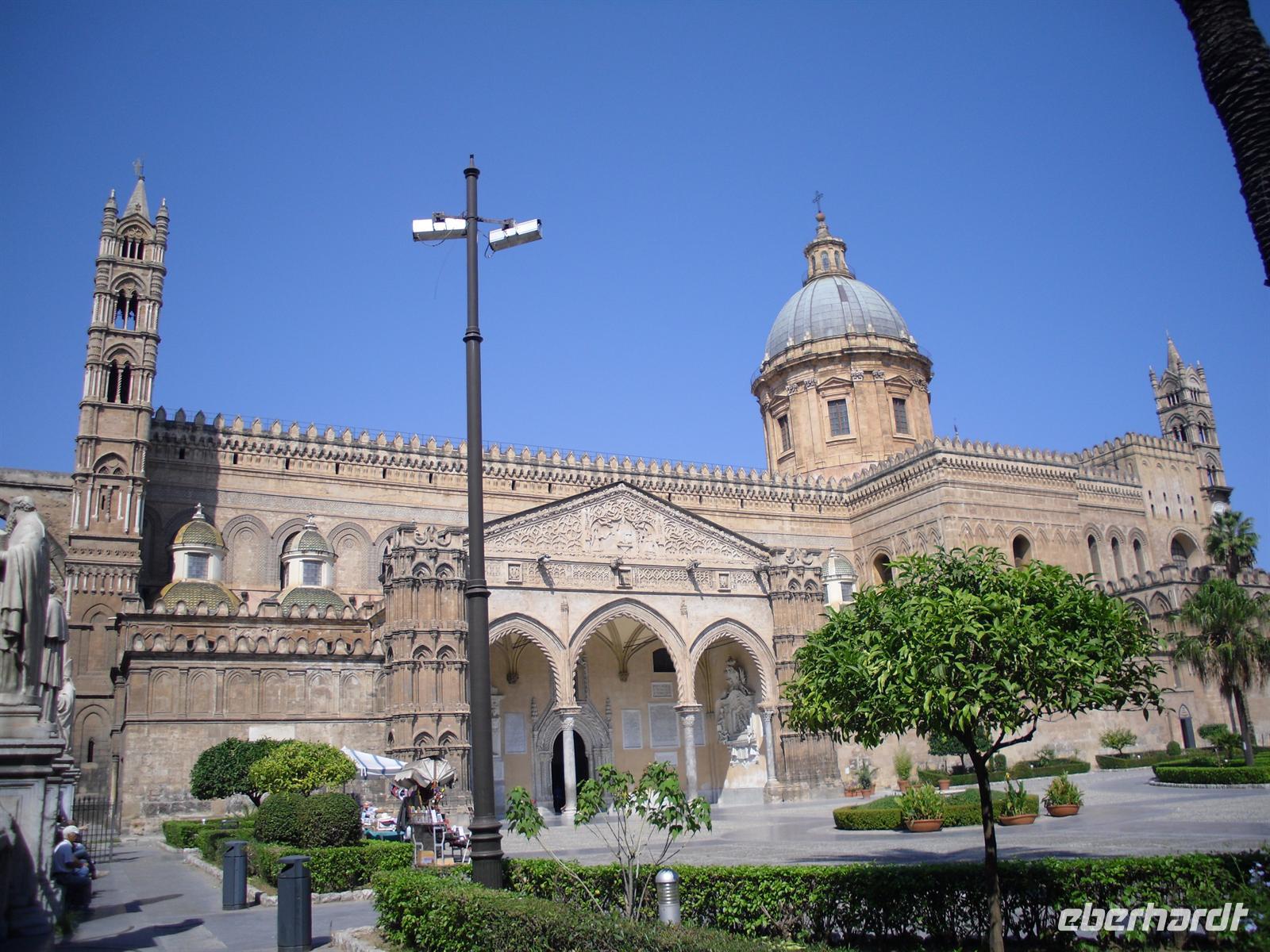 Seit der Gründung durch die Phönizier erlebte Palermo eine wechselhafte Geschichte mit zahlreichen Eroberern - Byzantiner, Araber, Normannen, Spanier usw. Wir besuchen den berühmten Normannenpalast, den ehemaligen Königspalast mit der Cappella Palatina. Die Cappella war die Hofkapelle und wurde von byzantinischen, normannischen und arabischen Künstlern gebaut. Das Innere ist vollständig mit Goldmosaiken und Steinintarsien bedeckt. Die Mosaiken sind Werke von Künstlern aus Konstantinopel. Das Mittelschiff wird durch eine von arabischen Meistern geschaffene Stalaktidendecke aus bemaltem Holz geschlossen. Nach einem kleinen Spaziergang durch die Porta Nuova gelangen wir innerhalb von wenigen Minuten zur Kathedrale. Aus den Jahren der Gründung des Doms im 12. Jahrhundert stammen nur die Ausmaße der Kirche und der im reinen Normannenstil gehaltene Chor. Die eindrucksvolle spätgotische Seitenfassade mit dem Hauptportal ist katalanisch beeinflusst, die Kuppel und leider auch das Innere sind die Arbeiten des ausgehenden 18. Jahrhunderts, sehr nüchtern und steif. Im Inneren stehen die schlichten Sarkophage der königlichen und kaiserlichen Familien aus poliertem Porphyr. Nun noch etwas Freizeit, bevor wir uns am Nachmittag alle wieder treffen und den Palazzo Conte Federico in der Innenstadt Palermos besuchen. Hier werden wir von einer echten Gräfin empfangen, die uns zeigt wie die Adelsfamilien in Palermo leben. Interessant für uns ist vor allem, dass wir auf dem Weg dorthin durch Gassen gehen müssen, die teils in Müll und Dreck ersticken und über dem ein nicht immer charmanter Duft hängt... Ganz unerwartet trifft man dann auf wunderbar restaurierte Palazzi aus dem 17. und. 18. Jahrhundert mit herrlichen Innenhöfen. Nur das Umfeld dieser Palazzi sind für uns nüchterne Mitteleuropäer sicher eher gewöhnungsbedürftig!