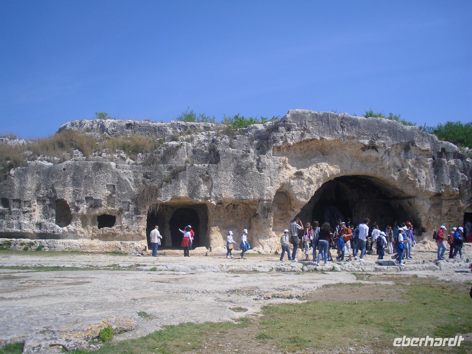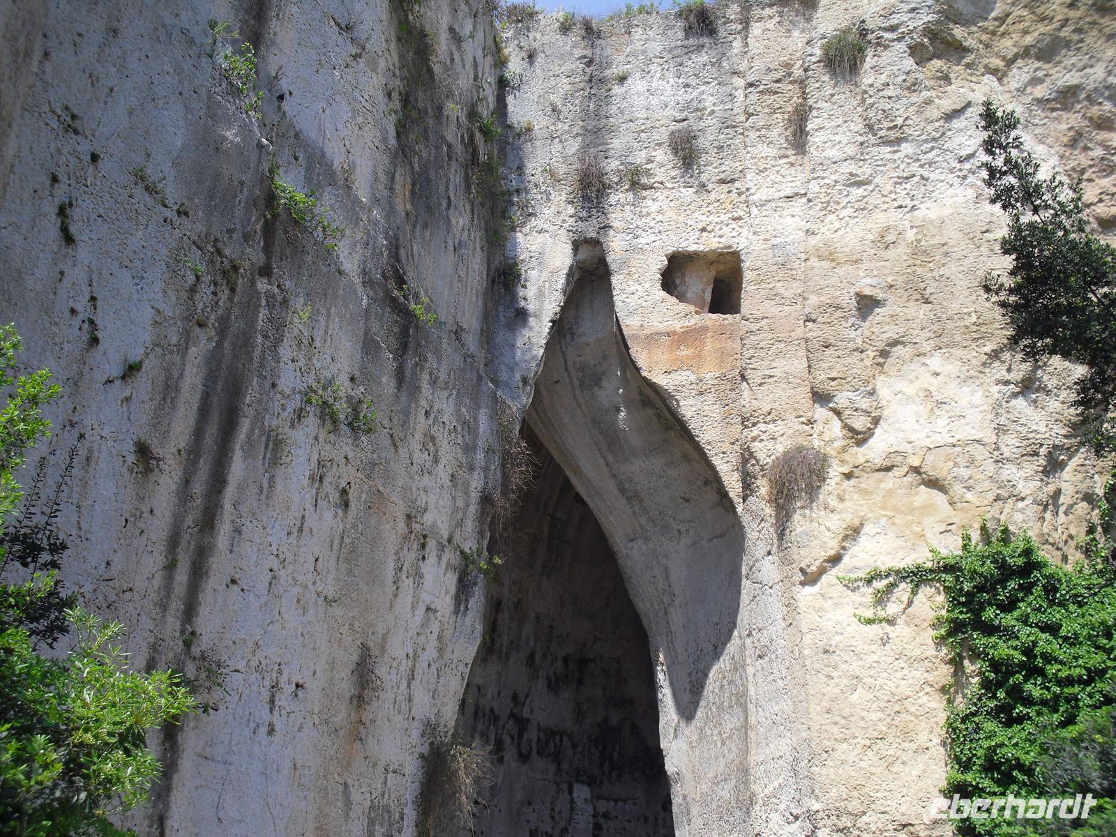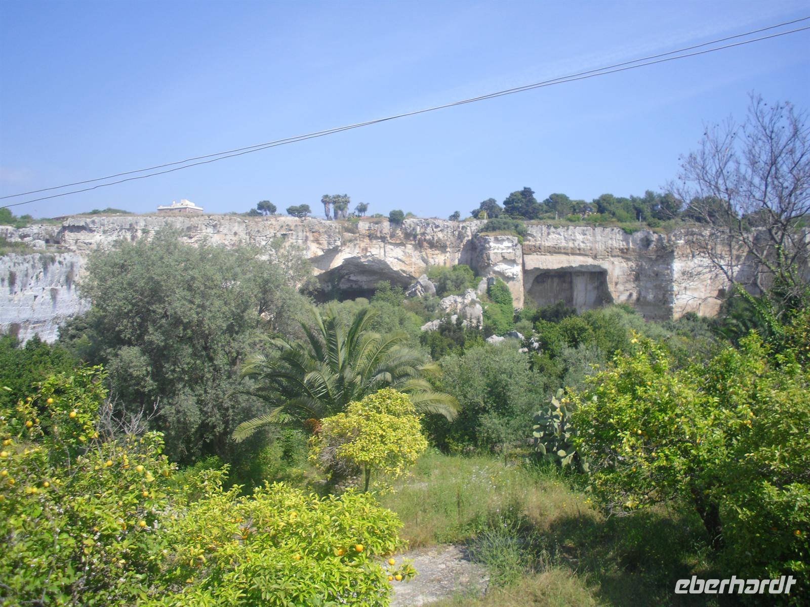 Von ihm wird seit dem 5. Jahrhundert v. Chr. berichtet, einer Zeit, in der sich Syrakus schon zu einer der wichtigsten Kulturzentren des Mittelmeerraums entwickelt hatte. Die Form, in der es sich uns heute präsentiert, ist jedoch jüngeren Datums und geht wahrscheinlich auf einen Umbau aus dem 2. Jahrhundert v. Chr. zurück. In diesem Theater, das direkt aus dem Felsgestein des Hügels herausgearbeitet wurde, fanden die Uraufführungen der Komödien und Tragödien berühmter Autoren wie Aischylos und Epicharm statt, und noch heute wird seine Bühne von Schauspielern betreten. Wir sehen auch die Latomien - dies sind die Steinbrüche, die das Material für die Stadterweiterung von Syrakus lieferten. Der eindrucksvollste ist die „Latomia del Paradiso“, die sich in einem üppig wuchernden Garten befindet. In ihr öffnet sich das sogenannte „Ohr des Dionysos“, eine große künstliche Grotte, in der ein überraschender Effekt akustischer Verstärkung auftritt.