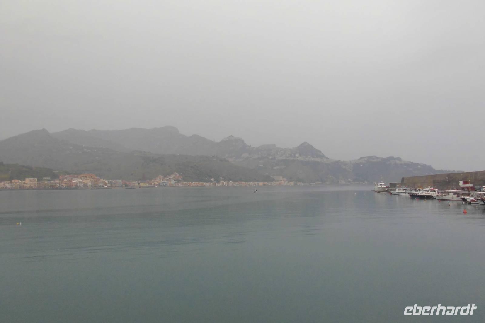 Nach etwas mehr als 2 Stunden Flugzeit können wir beim Anflug auf Catania schon ein Highlight aus der Luft sehen - den rauchenden Ätna. Leider meint es das Wetter nicht ganz so gut mit uns, sodass wir, nachdem uns Reiseleiter Hermann am Ausgang begrüßt hat, erstmal eine verregnete Fahrt zum Hotel durchstehen müssen. Bei der Freizeit am Nachmittag lässt sich die Schönheit der Insel dann auch nur erahnen...