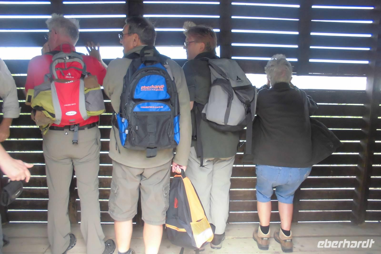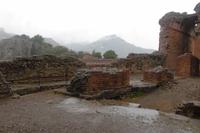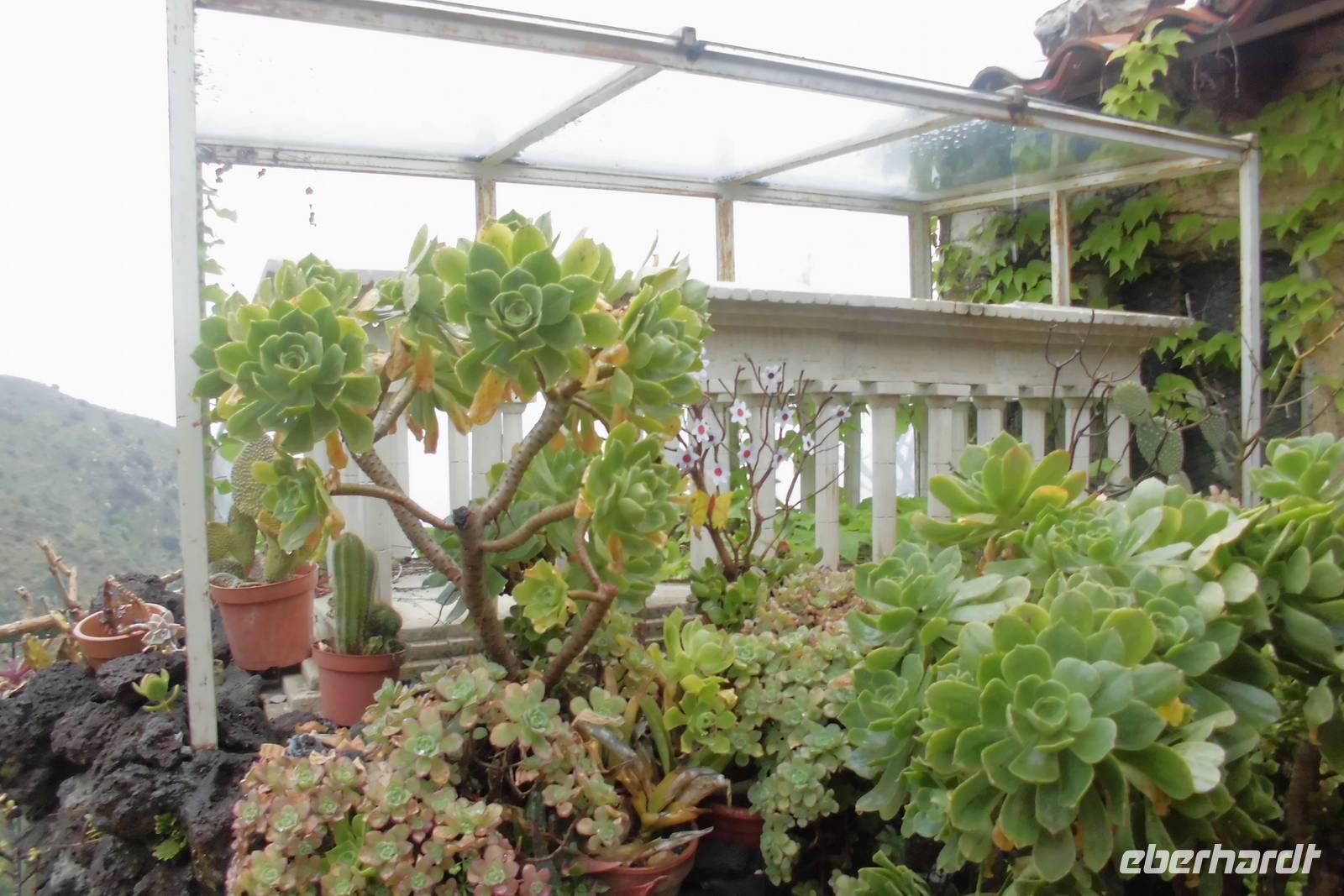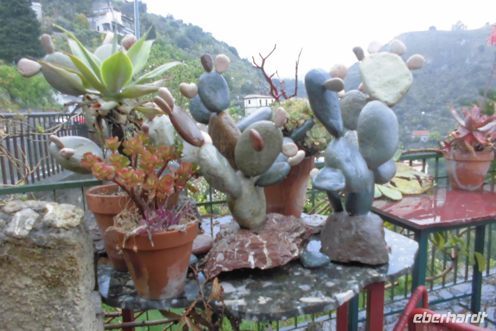 Nachdem wir uns bei einem ausgiebigen Frühstück gestärkt haben, steht die erste Wanderung auf dem Tagesplan. Etwas skeptisch stehen wir am Rand des offenen Innenhofes unseres Hotels und beobachten den anhaltenden Regen. Nach kurzer Überlegung beschließen wir jedoch einstimmig, die Wanderung anzugehen. Gemeinsam fahren wir in unserem Bus entlang der sogenannten Zyklopenküste, Hermann erzählt erst einmal viel aus der Sagenwelt des Odysseus und wir lassen unsere Gedanken schweifen. Knapp eine Stunde Fahrzeit benötigen wir, ehe sich das hochgelegene Taormina uns dann endlich präsentiert. Wir halten etwas unterhalb der Stadt uns beginnen die Wanderung am Stadtpark, welcher durch reichhaltige und uns teilweise unbekannte Flora beeindruckt. Hermann führt uns durch die kleinen Gassen hin zum Griechischen Theater, dem bekannten Wahrzeichen der Stadt. Auch während der kurzen Führung reißt das Regenband nicht ab. Die weltbekannte Kulisse mit dem Ätna im Hintergrund können wir nur erahnen. Nachdem jeder noch die Möglichkeit für eigene Erkundungen hat, starten wir hinauf nach Castelmola. Ein schier endloser Treppenweg liegt vor uns, doch weder davon noch vom Regen lassen wir uns abhalten. Nach 2 Stunden Aufstieg erreichen wir das kleine Bergdorf und flüchten in ein Café, jedoch nicht in ein Gewöhnliches ;-). Hermann zeigt uns ein Kleinod, welches durch seine extravagante Ausstattung auffällt - überall Phallussymbole, an den Wänden und auf den Tischen, sogar als Lampenschirmhalter. Spätestens hier hat jeder wieder gute Laune und das schlechte Wetter ist vergessen. Aufgrund des anhaltenden Regens entschließen wir uns hier jedoch, den Aufstieg auf den Veneretta ausfallen zu lassen und lieber noch etwas von dem sehr guten und typischen Mandellikör zu trinken. Das wärmt und die ersten von uns haben schon ein Souvenir. Auf dem Rückweg lassen wir uns auf halber Strecke vom Bus abholen und sind nachmittags froh, eine warme Dusche genießen zu können.