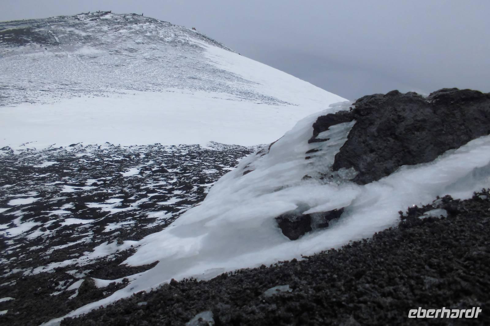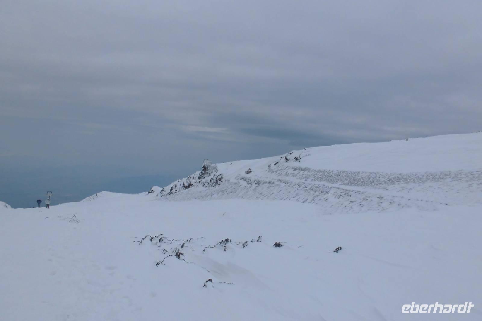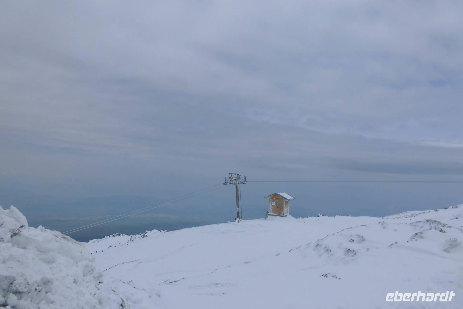 Das Highlight unserer Reise wartet heute auf uns und auch der Wettergott scheint es gut mit uns zu meinen. Es ist bewölkt, aber trocken. Wir starten zeitig, fahren mit dem Bus über Zaffarena hinauf zur Talstation. Zu unserem Entsetzen steht die Seilbahn still...und nun??? Plan B! Wir fahren mit Unimogs, riesigen Geländewagen hinauf, bis der Schnee jeglichen Weg versperrt. Die Wanderung beginnt an der Bergstation, wir stapfen durch Tiefschnee in 2600m Höhe. Der Wind pfeift und gibt einem das Gefühl von minus 20 Grad Lufttemperatur. Doch das Laufen macht warm und so machen wir Meter um Meter. Da eine Kraterbesteigung wetterbedingt nicht möglich ist, laufen wir quer zum Hang, bis wir irgendwann, begleitet von der Sonne einen atemberaubenden Blick auf Catania und die Insel genießen können. Zurück an der Bergstation begrüßt uns Hermann mit Ätnafeuer und uns wird sowohl von innen als auch von außen wieder warm. Wir stärken uns an der Hütte, wärmen uns auf, ehe wir mit der nun mittlerweile in Betrieb genommenen Seilbahn wieder zur Talstation fahren. Hermann schlägt eine Alternativwanderung zum Ochsental vor und wir folgen im bereitwillig. Der Weg ist hügelig, links und rechts zeigt sich die einzigartige Vegetation an den Flanken des Vulkans. Nach gut anderthalb Stunden Laufweg erreichen wir unser Ziel, einen riesigen Geländeabbruch, welcher mit Lavamassen von diversen Ausbrüchen gefüllt ist. Lange genießen wir den Ausblick und die Ruhe. Auf dem Rückweg zeigt sich die Sonne dann auch länger, sodass wir das erste Mal „südländisches" Wetter genießen dürfen.