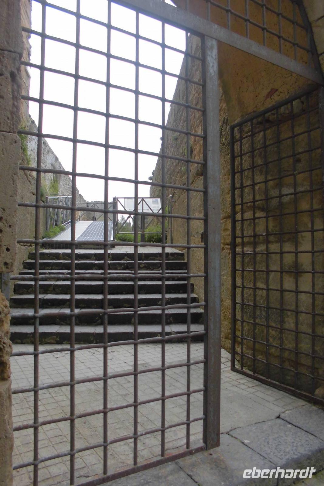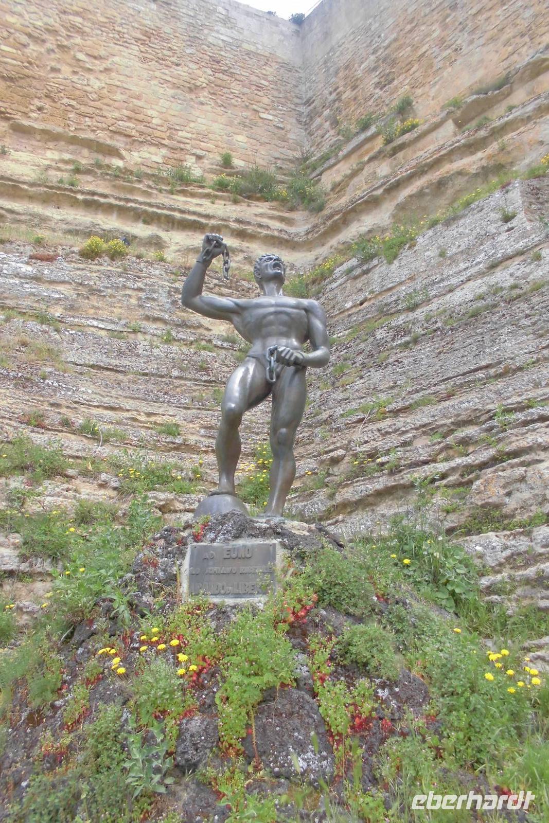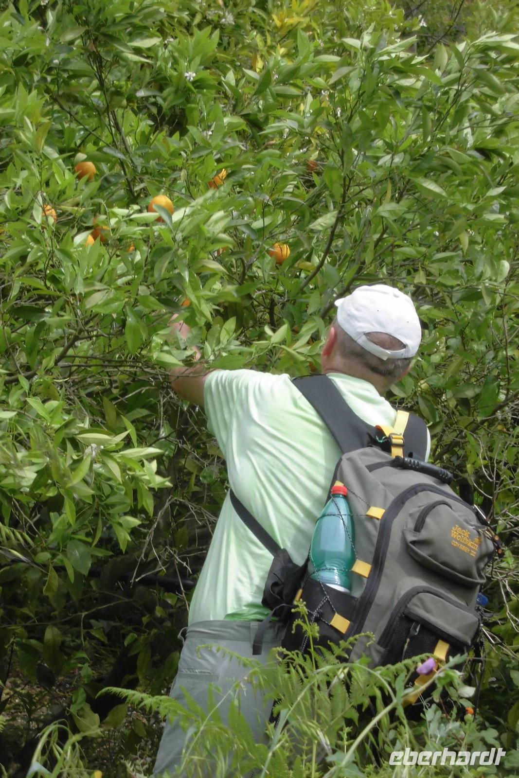 Der heutige Tag beginnt mit einer langen Busfahrt in das sizilianische Hinterland. Es zeigt sich, dass die kleine Gruppe und somit auch der kleine Bus hier ein großer Vorteil ist. Der Zugang zum Nationalpark ist nur über eine enge und staubige Straße, eher ein Feldweg, zu erreichen. Am Eingang zeigt Hermann uns kurz an einer Schautafel, welcher Weg vor uns liegt. Wir laufen oberhalb eines Canyon, ehe wir auf schmalen Wegen immer tiefer hinabsteigen. Um uns herum scheint die Vegetation zu explodieren. Trotz des eher trockenen Bodens, wachsen überall üppige Sträucher und Gräser, hier und da schimmert eine farbige Blumenblüte. In den Felsen sind hunderte Behausungen und alte Gräber zu erkennen. Wir folgen dem Flusslauf des Anapo, welcher sich durch das Tal schlängelt. Am Wegesrand können wir unseren Proviant sogar mit saftigen Orangen auffüllen. Der Rückweg nach Anaktoron verläuft dann anders als erwartet. An einer Flussquerung rutscht eine Wanderfreundin aus und verletzt sich. Nachdem Hermann erste Hilfe gerufen hat, bleibt nur noch der schwere Weg ins Krankenhaus - Beinbruch. Auf diesem Weg natürlich nochmals gute Besserung. Reiseleiter Hermann und Reisebegleitung Anne wechseln sich nun in den nächsten Tagen ab, sodass immer jemand im Krankenhaus von Syrakus ist, um sprachlich zu helfen.