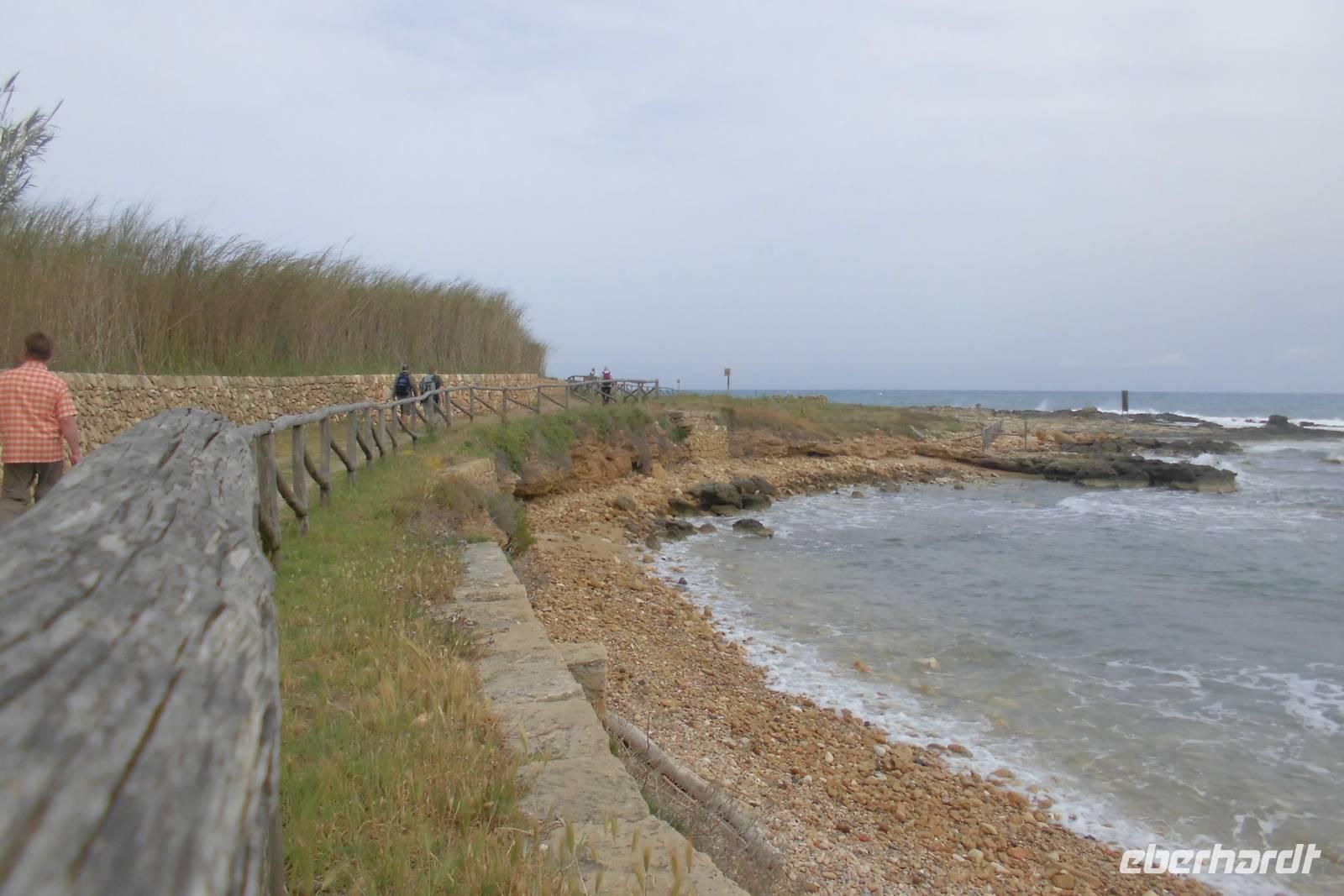 Die nachmittägliche Wanderung führt uns durch das Naturschutzgebiet Vendicari und damit in eine ganz andere Welt. Lange Sandstrände werden von hohem Schilf gesäumt, die Nist- und Ruheplätze tausender Zugvögel lassen sich nicht nur erahnen. Wir schlendern eher durch dieses Gebiet, immer das Rauschen des Meeres im Ohr. Wendepunkt ist eine kleine Sandbucht, die Calamosche, welche wir lange auf uns wirken lassen und eher widerstrebend kehrt machen. Auf dem Rückweg treffen wir viele Einheimische, viele kommen hier mit der ganzen Familie her, machen ein Picknick und entspannen weitab vom Trubel der sizilianischen Städte. Wer noch Lust hat, kann dann auf der Heimfahrt noch einen Stadtbummel in Noto machen, hier und da noch Sehenswürdigkeiten bestaunen.