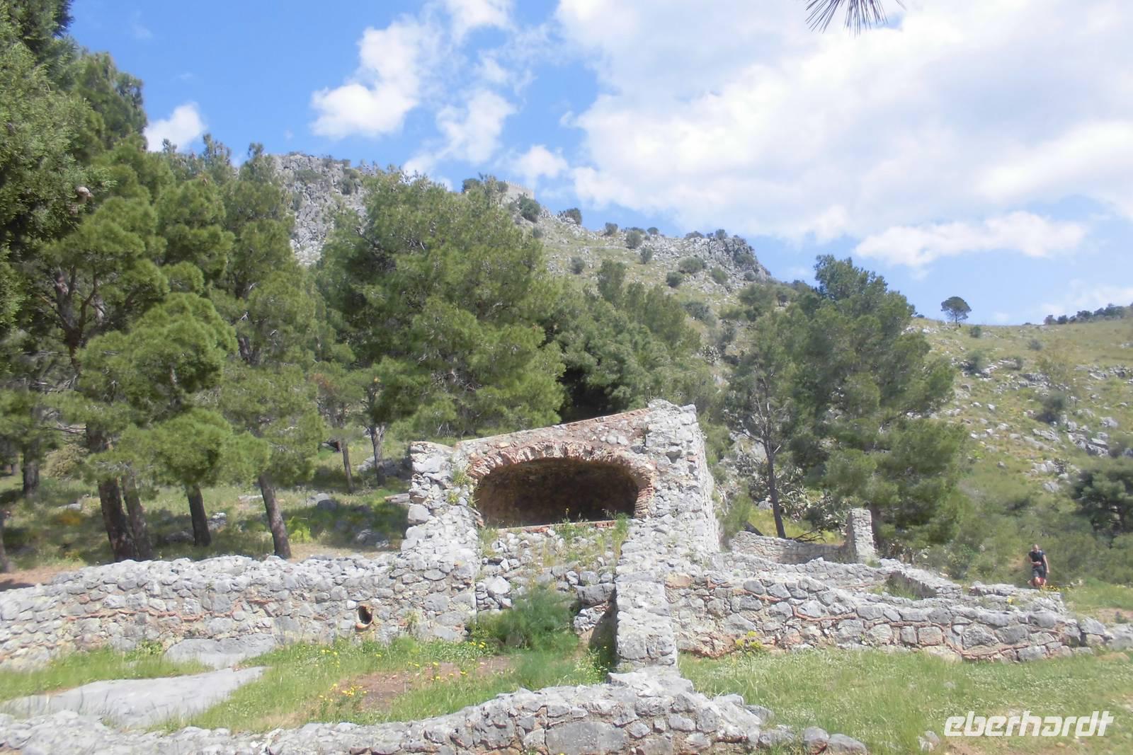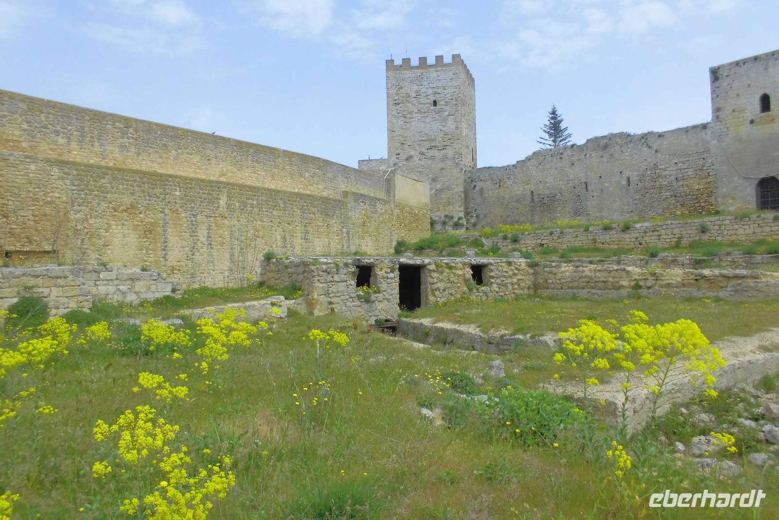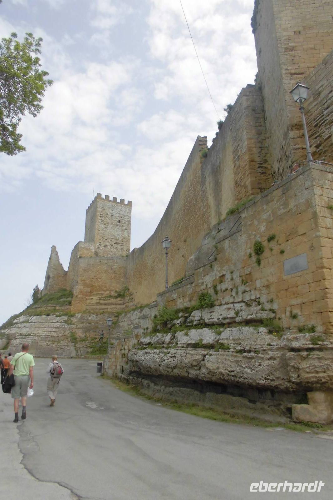 Auch heute beginnt unser Tag wieder mit einer Busfahrt. Unser Ziel ist Erice, ein kleines Städtchen, welches hoch üer der Insel gelegen ist. Wir starten mit einem Stadtbummel durch die engen Gassen und beobachten, wie das sizilianische Leben so langsam erwacht. Hermann führt uns zur Burganlage, von welcher wir erneut einen traumhaften Blick auf das blau glitzernde Meer und die Ebene haben. Weit unten erblicken wir Trapani, die Provinzhauptstadt und Ziel unser ersten Wanderung heute. Wir nutzen die Morgenstunden, um noch etwas durch die Gassen zu bummeln und ein paar Souvenirs einzukaufen, schließlich gibt es hier eine Unzahl an kleinen Lädchen, die soviel Typisches verkaufen. Wir treffen uns an der Porta Trapani und beginnen unsere Wanderung hinab vom Monte Erice. Der doch sehr staubige Weg ist stetig abfallend, es gibt kaum Schatten. Weit entfernt entdecken wir einen riesigen Brand und trotz der Entfernung ziehen die Rauchschwaden bis zu uns herüber. Nach gut anderthalb Stunden gelangen wir wieder in die Zivilisation, hinter den riesigen Mauern bellen die Wachhunde. Wir lassen uns jedoch nicht abschrecken und gehen unbeirrt unseren Weg. Die Straßen werden wieder breiter und Hermann führt uns zu allererst in ein kleines Café. Hier können wir uns von der "hitzigen" Wanderung kurz erholen. Es folgt eine kleine Stadtrundfahrt durch Trapani ehe wir zum letzten Highlight unserer Reise aufbrechen. In Segesta bestaunen wir einen der besterhaltenen griechischen Tempel der Insel, den Hera- Tempel. Das Bauwerk scheint nahezu allen Wetterkapriolen standgehalten zu haben und ist kaum beschädigt. Wir betrachten das imposante Bauwerk und lauschen Hermanns interessanten Ausführungen zur ruhmreiche Geschichte dieser antiken Stadt. Da wir uns jedoch auf einer Wanderreise befinden, beschließen wir den Weg hinauf zum Theater zu Fuß zu gehen, auch wenn die Hitze sehr drückend ist. Der Weg am Hang des Monte Barbaro schneidet immer wieder die Hauptstraße, in jedem Abschnitt ist eine Ruine der alten Stadt zu bestaunen. Oben angelangt, bekommen wir im Theater ein Schauspiel der besonderen Sorte geboten. Zwei Kinder zeigen ihr können im Mimenschauspiel und begeistern so die vielen Besucher. Wir genießen noch etwas den Rundblick bis hin nach Castellamare del Golfo, ehe wir uns auf den Rückweg begeben.
