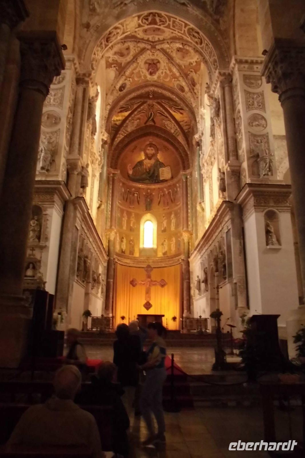 Unsere Reise führt uns in den Norden der Insel, zu einer der wahrscheinlich schönsten Städte der Insel. In Cefalu beginnen wir zuerst mit der Besichtigung des riesigen Normannendoms, dem Wahrzeichen der Stadt. Auf dem Vorplatz zeigt sich dann auch das typisch italienische Leben. Überall sitzen die Menschen in Cafés, trinken Cappuccino und genießen gutes Essen. Nachdem jeder etwas Freizeit hatte, treffen wir uns wieder vor dem Dom und beginnen den Aufstieg auf den Rocca, den Hausberg von Cefalu. Leider läuft es nicht wie erwartet, stehen wir doch auf einmal vor verschlossenen Türen und der Zugang zum Berg bleibt uns verwehrt. Hermann setzt alle Hebel in Bewegung, telefoniert sogar mit dem Bürgermeister der Stadt. Es hilft nichts, wir müssen warten. Wir entschließen uns, wieder hinunter in die Stadt zu gehen, um unser eigentliches „Bergpicknick" am Strand zu genießen. Dem Geschmack tut dies keinen Abbruch, nur der anschließende Mittagschlaf fehlt J. Schließlich versuchen wir das zweite Mal unser Glück und beginnen den Aufstieg. Diesmal sind alle Tore offen und wir können auf das parkähnliche Gelände. Von hier oben hat man einen einmaligen Blick über die Dächer der Stadt hinaus auf's blaue Meer. Wir umrunden den Berg, kämpfen uns durch's Gestrüpp und genießen an jeder Ecke diesen wunderbaren Ausblick. Nach fast 2 Stunden Auf- und Abstieg gönnen wir uns nochmals etwas Freizeit und - natürlich - italienisches Eis! Etwas wehmütig verlassen wir dann diese kleine wunderbare Stadt gen Westküste. In unserem neuen Hotel können wir nun auch endlich den Pool benutzen - schließlich haben wir es uns mittlerweile einfach verdient!