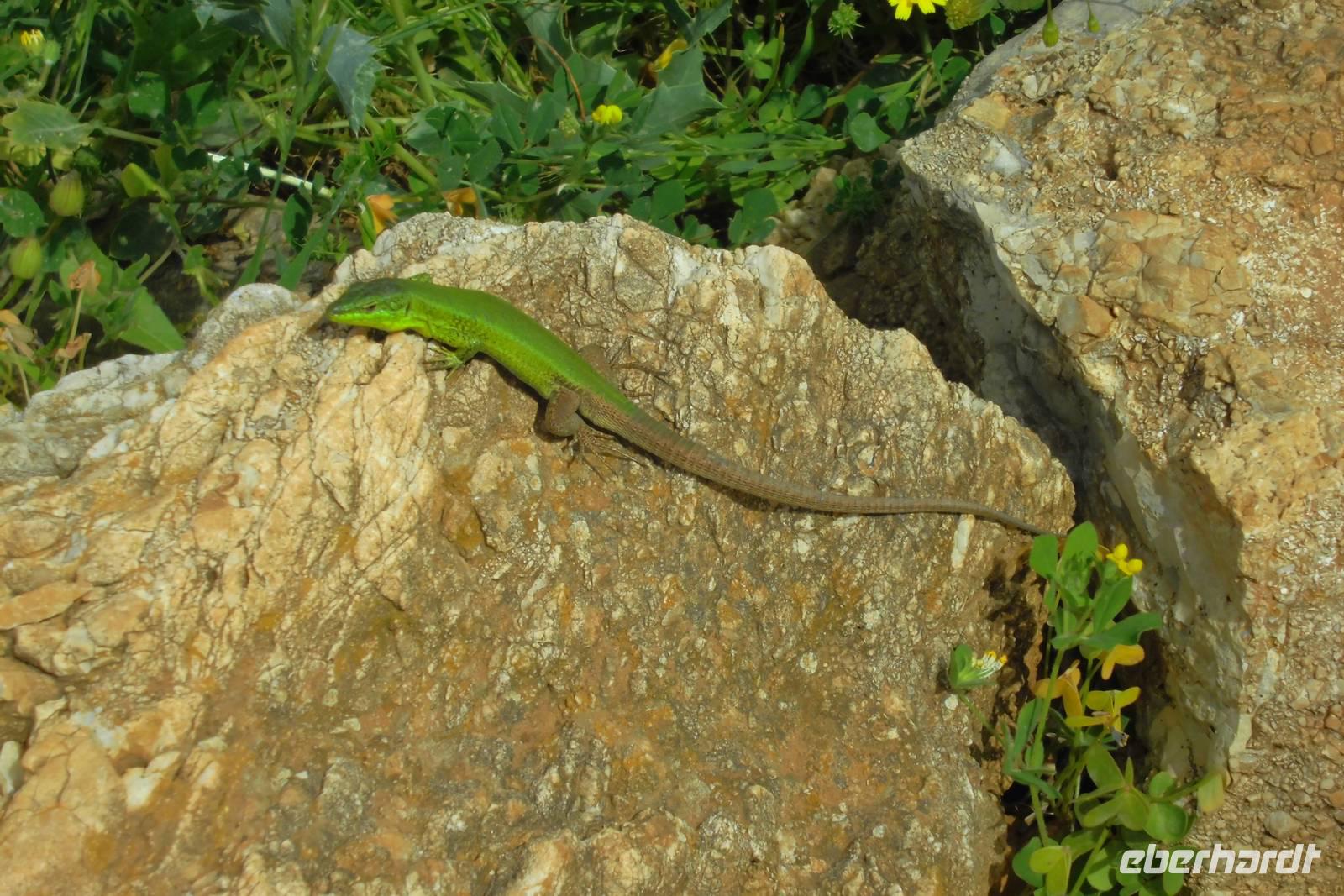 Neuer Tag - neue Eindrücke - und wieder zeigt uns die Insel ein völlig anderes Gesicht. Wir tauchen ein in das Naturreservat Zingaro, einer nahezu unberührten Landzunge und finden uns in einer grünen Oase wieder. Bei strahlendem Sonnenschein folgenden wir den scmalen Wegen durch hohe Sträucher und Schilfgräser. Der stetig steigende Weg und die drückende Luft machen uns zu schaffen. Die Sonne brennt heut regelrecht herunter. An einem kleinen Refugio machen wir halt, eine Pumpe sorgt für frisches Wasser aus der Tiefe des Berges. Lange laufen wir quer zu Pizzo Passo, ehe der Weg, vorbei an Olivenhainen, bergab führt. Die Grotta Mastro Peppe Siino beschreibt unseren Wendepunkt. Ab hier laufen wir parallel zum Meer langsam zum Ausgangspunkt unserer Wanderung zurück. Nun begegnen wir oft Einheimischen, welche in einer der vielen Buchten baden waren und sich nun auf dem Heimweg machen. Wir gönnen uns eine letzte Pause und suchen uns ein schattiges Plätzchen inmitten eines Olivenhaines. Hier und da huschen kleine Salamander an uns vorbei. Als wir an dem Holzhäuschen, welches schon den Eingang markiert hat, angelangen, erfrischen wir uns noch mal kurz an einem Wassertrog, ehe es mit dem Bus wieder zurück ins Hotel und dann direkt in den Pool geht.