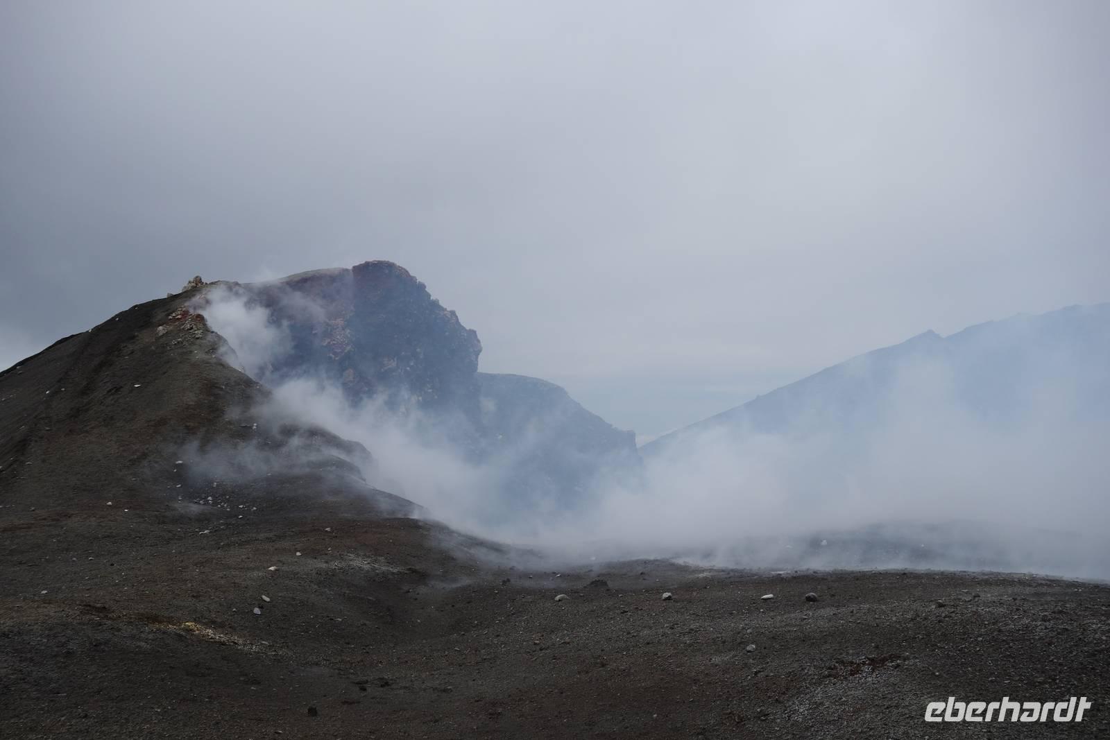 Am Ätna angekommen stiegen wir erst in eine Gondel, dann in den Jeep, der uns auf 2900 Meter brachte. Dann blieben uns ja eigentlich nur noch 500 Meter bis zum Krater! Die Luft hier oben war etwas dünner, aber die gesamte Gruppe, fand sich etwa 3 Stunden später am höchsten heute zu erreichenden Punkt wieder. Wir konnten bis in den Vulkan schauen, der immer mal wieder schweflige Wolken abstoß. Die Aussicht von hier oben war natürlich unglaublich. Die gesamte Südküste lag uns zu Füßen! Städte, erloschene Krater, Seen, Flüsse und ganz viel dunkles Vulkangestein zeichneten die Landschaft. Der perfekte Platz also, für ein Gruppenbild!